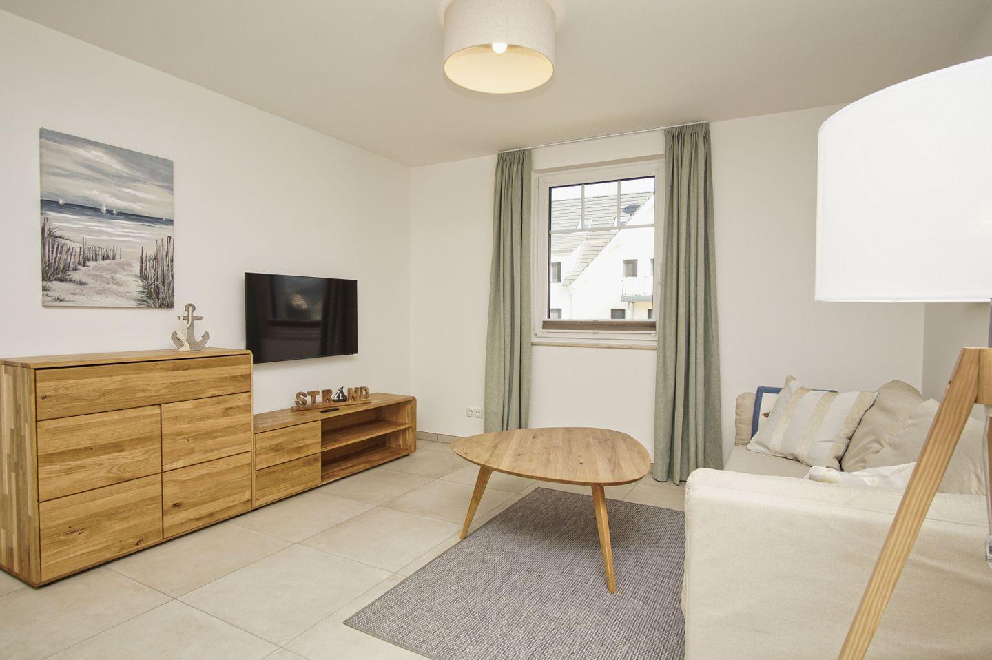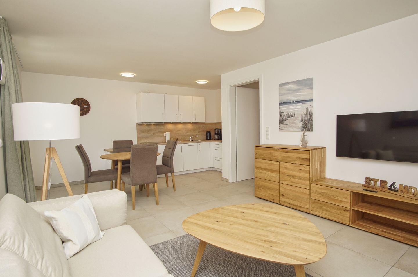 WOHNEN // Wohnraum mit Essbereich, Sitzgarnitur mit bequemer Couch, Flachbild-TV (Smart-TV), Internet (W-LAN) ++