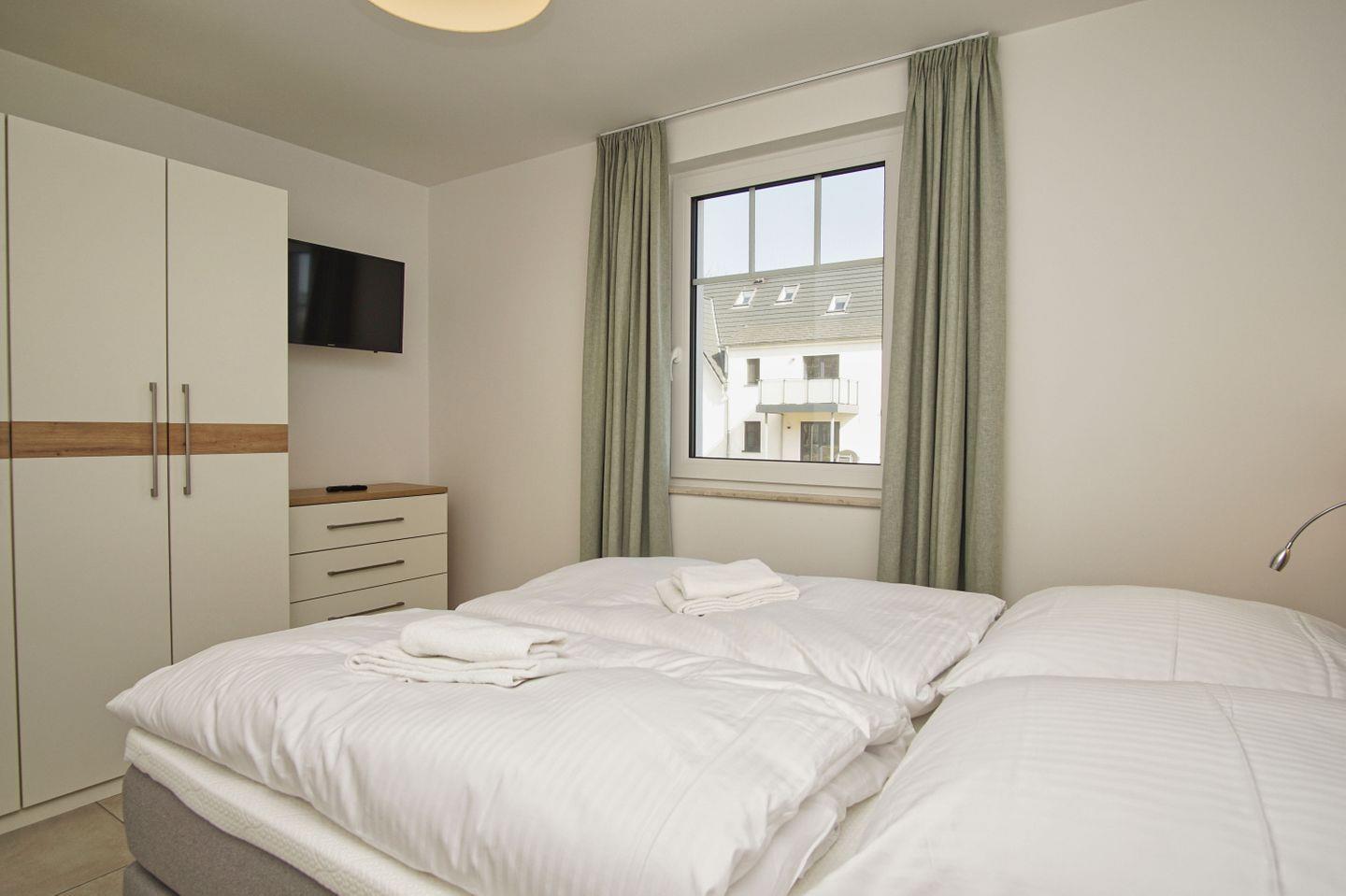 SCHLAFEN // ein Schlafzimmer mit bequemem Doppelbett und Flachbild-TV (Smart-TV) ++