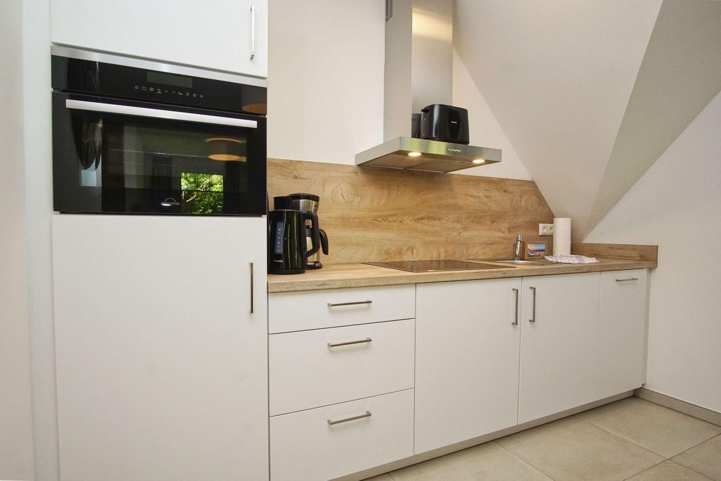 KÜCHE // Küchenzeile, 4-Platten Ceranfeld, Spülmaschine, Kühlschrank mit Gefrierfach, Backofen, Toaster, Wasserkocher, Kaffeemaschine, reichlich Besteck, Geschirr und Küchenutensilien ++