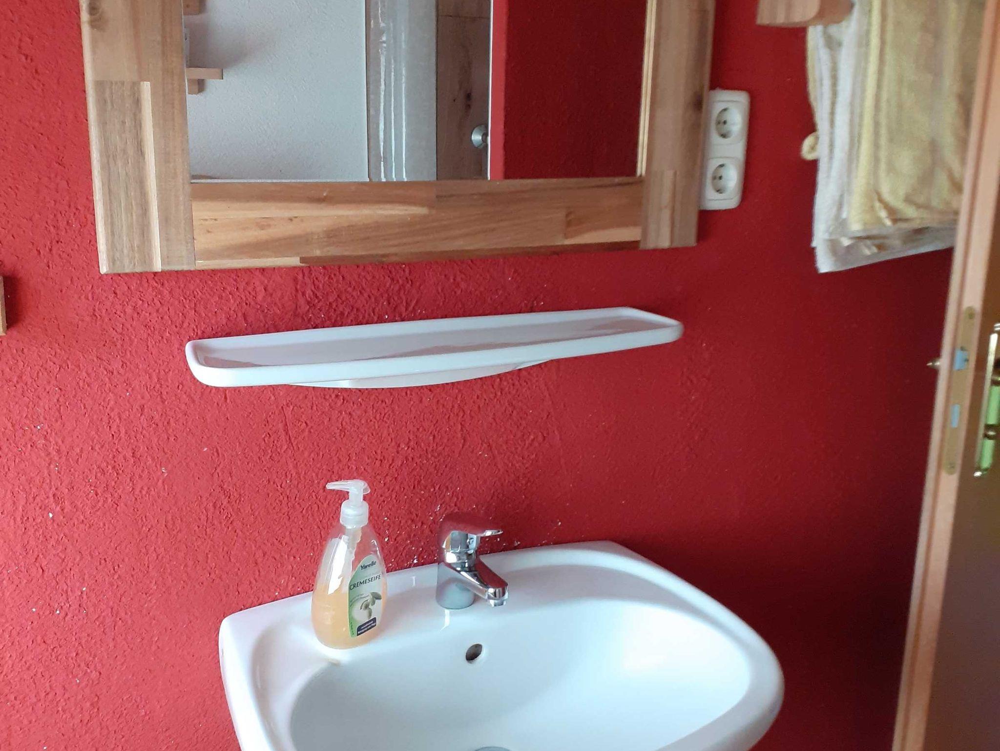Das Bad ist mit Dusche, WC, Fön und Waschtisch ausgestattet.
