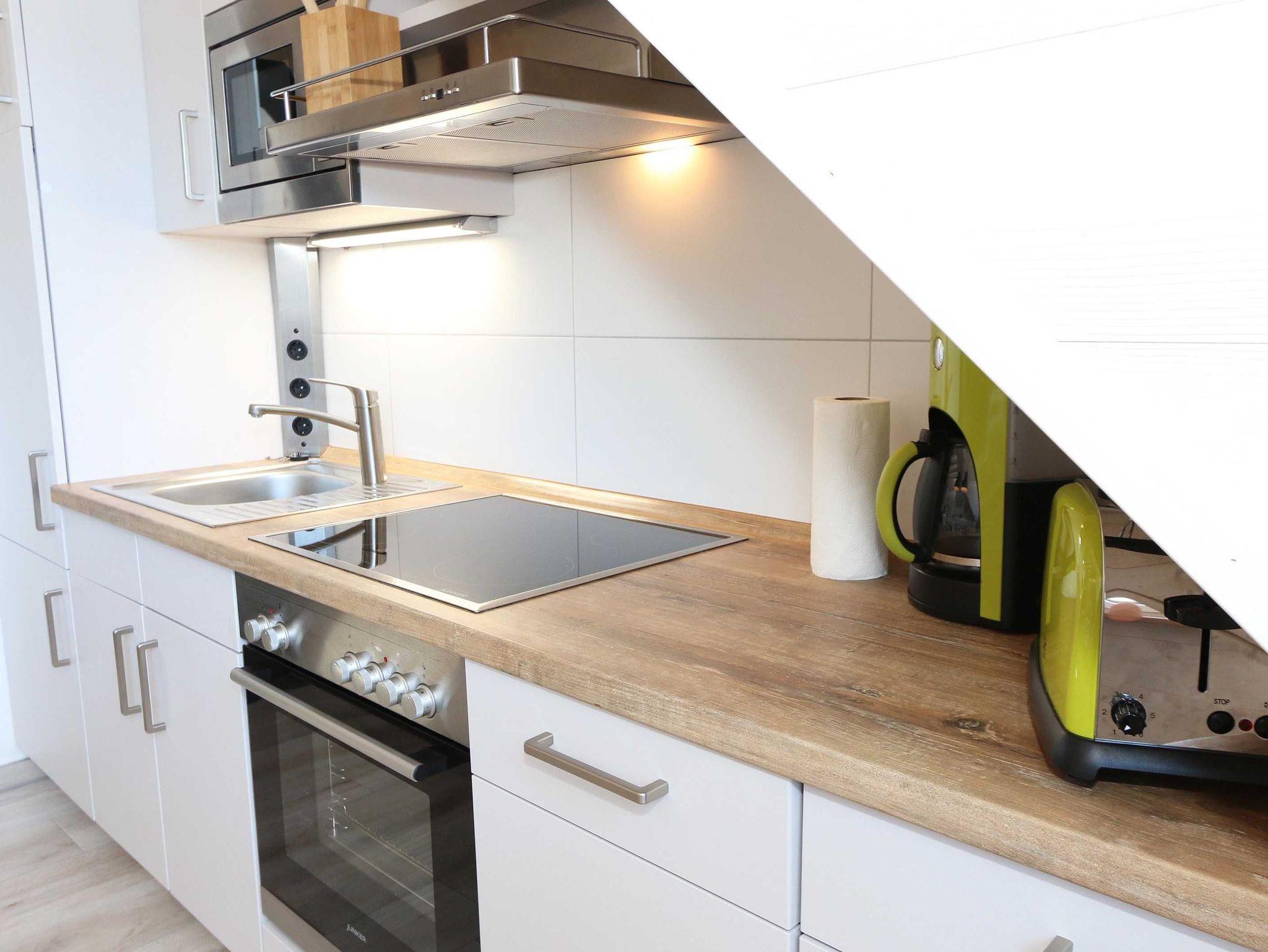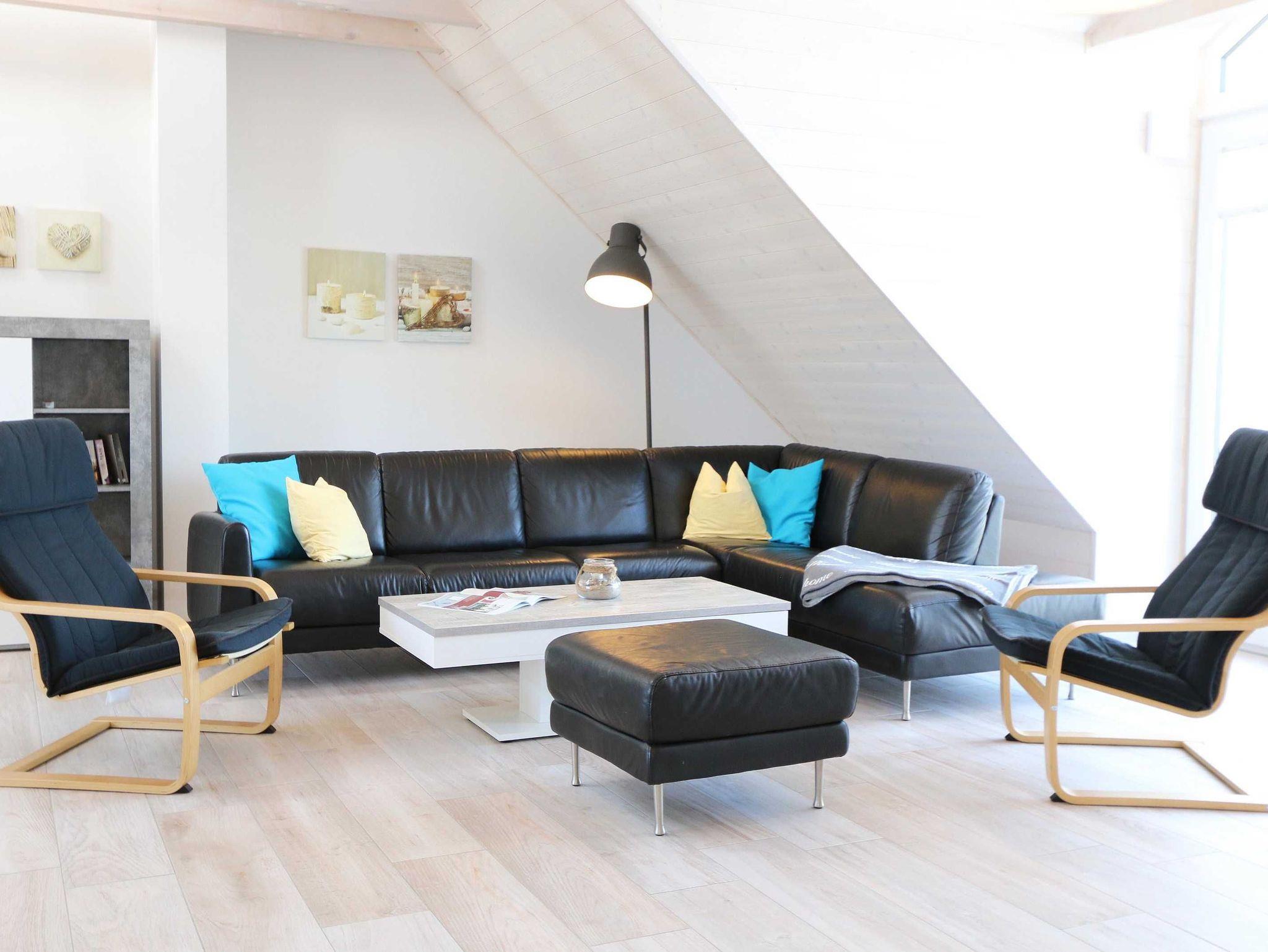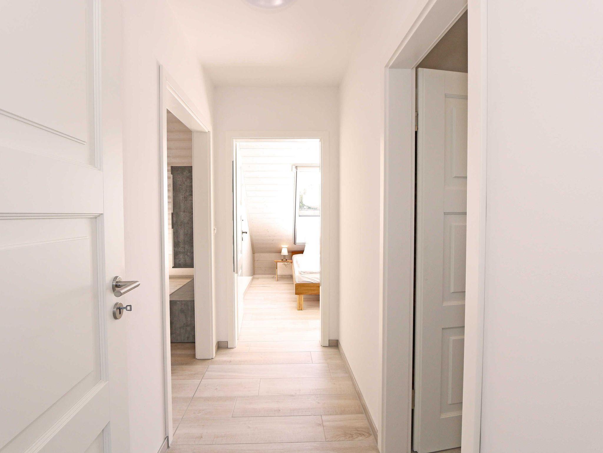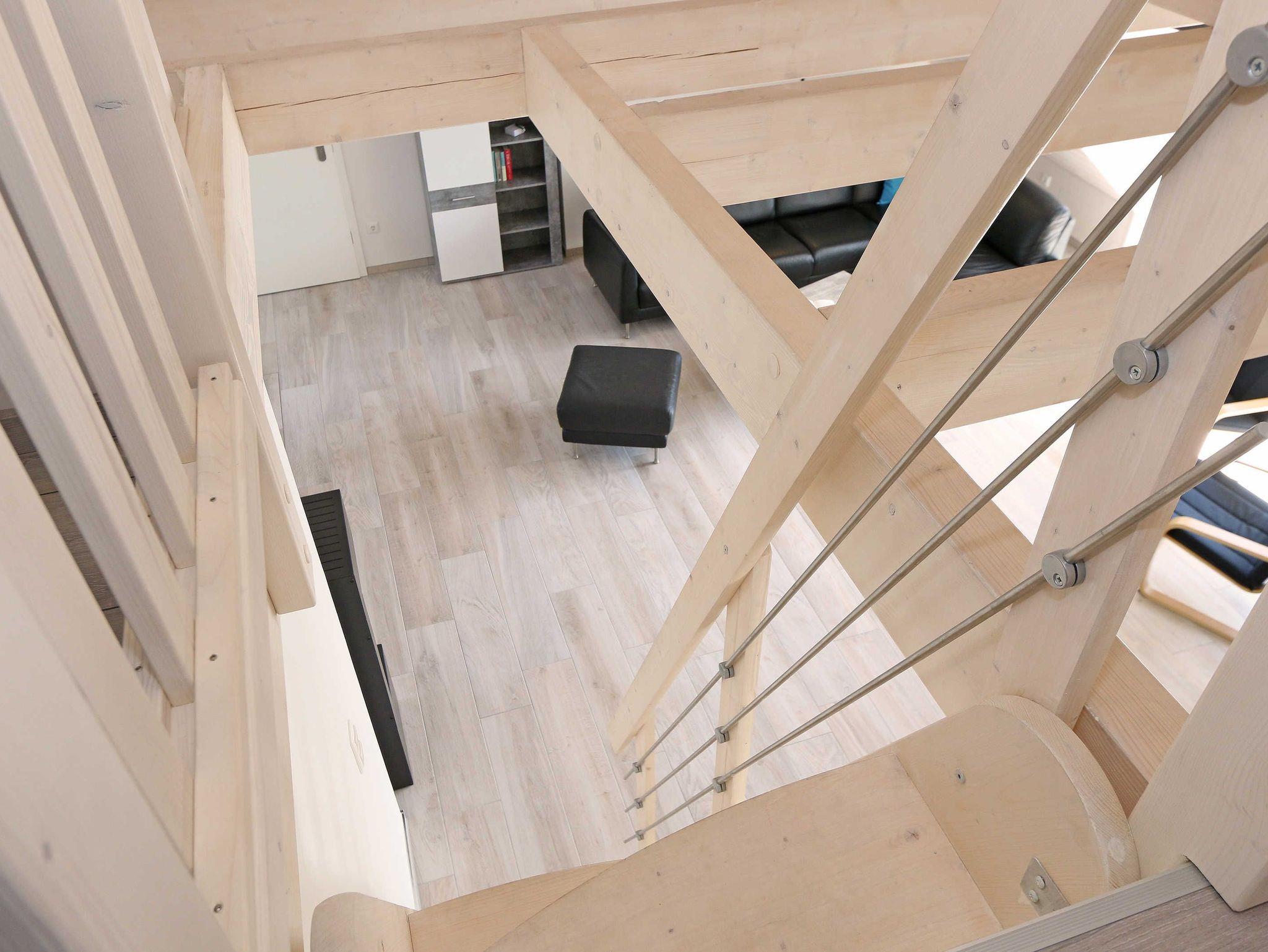 Die im nordischen Stil eingerichtete Nichtraucherwohnung mit 89 m² findet sich in der 2. Etage. Sie ist lichtdurchflutet und geprägt durch Holzschrägen, dicke naturbelassene Holzbalken, die einen Blick in den First zulassen. Die Ferienwohnung ?Seestern? ist für max. 6 Erwachsene und 1 Kleinkind bis 3 Jahre im Kinderreisebett bestens geeignet. Sie ist modern eingerichtet mit einem großen Ledersofa, Leselampe, 2 Relax-Sessel und einem Lowboard mit Smart-TV, Soundanlage, Blue Ray-Player und Radio mit CD-Player. Auch im Urlaub brauchen Sie auf einen Internetanschluss (WLAN) nicht verzichten. Dieser ist für Sie inklusive. An kühleren Tagen sorgt ein Gaskamin für angenehme Wärme. Vom Wohnbereich gelangen Sie auf den großen und bestuhlten Balkon (Süd) mit Sonnenschirm, auf dem Sie bei einem gemütlichen Frühstück Ihren Urlaubstag in Ruhe beginnen können. Bei der offenen Einbauküche müssen Sie auf nichts verzichten. Vom Geschirrspüler, Backofen, 4-Zonen-Cerankochfeld, Kühlschrank mit Gefrierkombination, Mikrowelle, Kaffeemaschine, Toaster, Wasserkocher bis hin zu vielen Küchenhelfern. Vom großen Esstisch, an dem 6 Personen Platz finden, genießen Sie einen Blick in ein Wäldchen, hinter welchem sich die Ostsee befindet. 2 Schlafzimmer verfügen über eingebaute Kleiderschränke sowie je ein Doppelbett (1,80 m x 2,00 m) mit Nachttischablagen, welche für Entspannung sorgen und erholt in den nächsten Urlaubstag schlafen lassen. An ein Schlafzimmer schließt sich ein En Suite Tageslichtbad mit WC, Waschplatz, Kosmetikspiegel, Fön und Dusche an. Das größere Tageslichtbad mit Infrarotsauna verfügt unter anderem auch über einen Wasch- und Trockenautomat, WC, Waschtisch, Fön sowie eine Dusche. Ein weiteres Highlight ist ein offener, durch ein Geländer abgegrenzter Schlafboden im Gebälk (Höhe 1,52 m), der über eine Raumspartreppe aus dem Wohnbereich erreicht wird. Dort befinden sich zwei große Einzelbetten (0,90 m x 2,00 m). Insektenschutzgitter sind vorhanden. In der Zeit vom 01. Juni - 31. August sind der Kamin und die Sauna nicht zu nutzen! Für unsere kleinen Gäste stehen 1x Kinderreisebett (ohne Zusatzmatratze, ohne Bettinlett) sowie 1x Hochstuhl (ohne Gurt) inklusive zur Verfügung. Im abschließbaren Nebengebäude können Sie Ihre Fahrräder sicher unterstellen. Ihren PKW können Sie auf dem zur Wohnung gehörenden Stellplatz (Nr. 9) direkt am Haus abstellen. Ein Grillplatz für alle Hausgäste ist vorhanden. Haustiere sind leider nicht erlaubt. Die Erstausstattung eines Wäschepaketes (komplette Bettwäsche, 1 Duschhandtuch, 2 kleine Handtücher) können Sie bis 14 Tage vor Anreise gegen einen Aufpreis dazu buchen oder durch eigene ergänzen. Ab 2 gebuchten Paketen erhalten Sie einmalig 1 Geschirrhandtuch und 1 Duschvorleger hinzu.