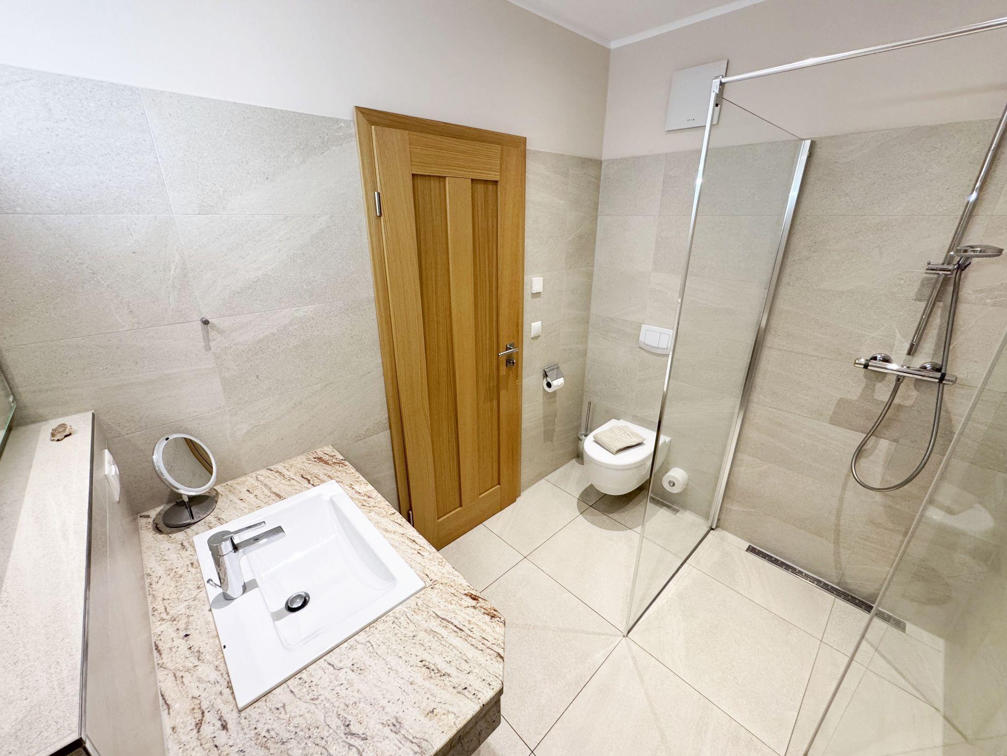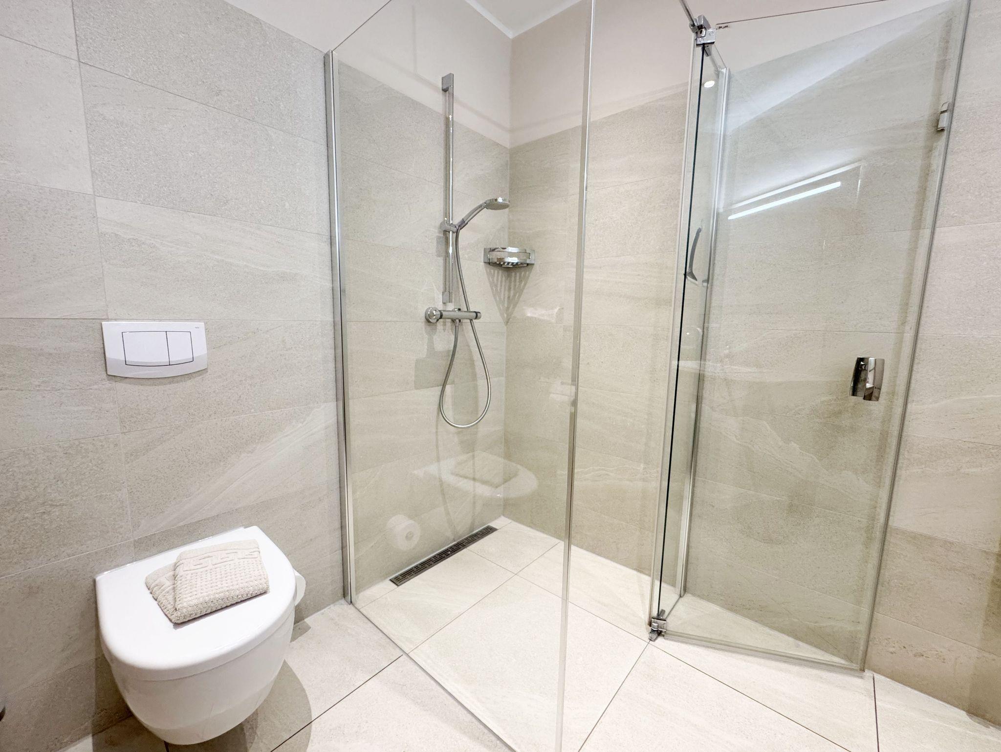 Die Ferienwohnung (Nichtraucher) Nr. 2, ca. 35 m², für bis zu 2 Personen, befindet sich im Erdgeschoss eines 6 Familienhauses auf dem 4.500 m² großen Grundstück in Einzellage ohne Publikums- und PKW-Verkehr. Die Wohnung ist nach Süden ausgerichtet und verfügt über ein Badezimmer und über einen kombinierten, verdunkelbaren Wohn-/Schlafbereich sowie über eine nicht einsehbare ca. 12 m² große Südterrasse. Von hier eröffnet sich ein grandioser Panoramablick über die unmittelbar vor dem Haus liegende Ostsee. Die einzigen Geräusche sind der Wind und das Rauschen des Meeres. Direkt vor den ebenerdigen großen Fenstern befindet sich der gemütliche, sonnige Essbereich. Das komfortable Doppelbett (Größe 1,80 m x 2,00 m) aus geölter, massiver Kernbuche ist ausgestattet mit Druckentlastenden, atmungsaktiven und körperunterstützenden Geltex Kaltschaummatratzen. Die Matratze des Doppelbettes hat die Härtegrade 2 und 3. Von hieraus genießen Sie sogar schon beim Aufwachen den faszinierenden Meerblick- das ist Urlaub pur. Die Wohnung erfüllt ihrer Ausstattung höchste Ansprüche. Erlesene Baumaterialien und Einrichtungsgegenstände vermitteln ein Gefühl des Genießens von Luxus. Nur beispielhaft sei erwähnt, dass das Badezimmer mit Granitwaschtisch, Fön, Fußbodenheizung und Handtuchheizkörper eingerichtet ist. In dem Flur und dem Wohn/Schlafraum sind hochwertige italienische Lake-Stone-Fliesen verlegt worden. Die moderne Küche beinhaltet ein Ceran-Kochfeld, Kühlschrank mit Gefrierfach, Geschirrspülmaschine und Mikrowelle. Die Küchenausstattung enthält an Kleinelektrogeräten Toaster, Kaffeemaschine, Wasser- und Eierkocher sowie Handmixer. Der Essbereich ist möbliert mit einem massiven Tisch aus geölter Wildeiche und Lederschwingstühlen in der Farbe mocca. Flachbildfernseher, Internetanschluss WLAN sowie Mini-Stereo Anlage mit USB sind vorhanden. Eine original finnische Sauna mit moderner Dusche und Ruheliegen steht allen Gästen gegen Gebühr zur Verfügung. Die Terrasse ist mit komfortablen Möbeln für ein Genießen von Sonne, der nahen See und einem gemütlichen Beisammensein ausgerichtet. Die Parkplätze und ein überdachter Fahrradunterstand stehen kostenlos zur Verfügung. Ein ca. 3.000 m² großes Rasengrundstück, am Haus und an der Ostseeküste gelegen, steht zur Freizeitgestaltung mit Grillplatz zur Verfügung. 1 Haustier ist gegen eine Gebühr ein gern gesehener Gast. Die Erstausstattung eines Wäschepaketes (komplette Bettwäsche, 1 Duschhandtuch, 2 kleine Handtücher, 2 Geschirrhandtücher) können Sie bis 14 Tage vor Anreise gegen einen Aufpreis dazu buchen oder durch eigene ergänzen.