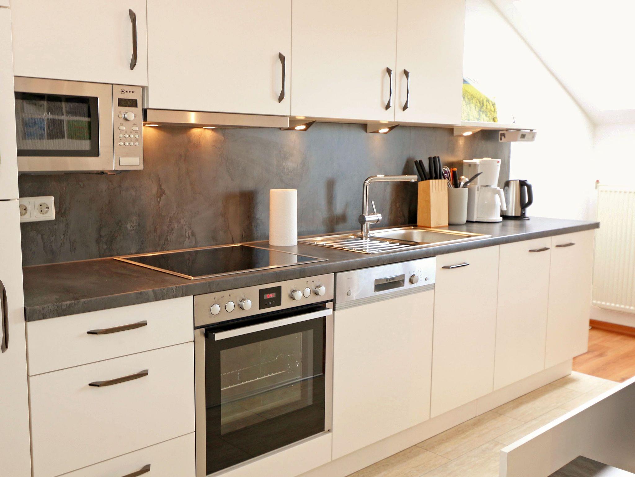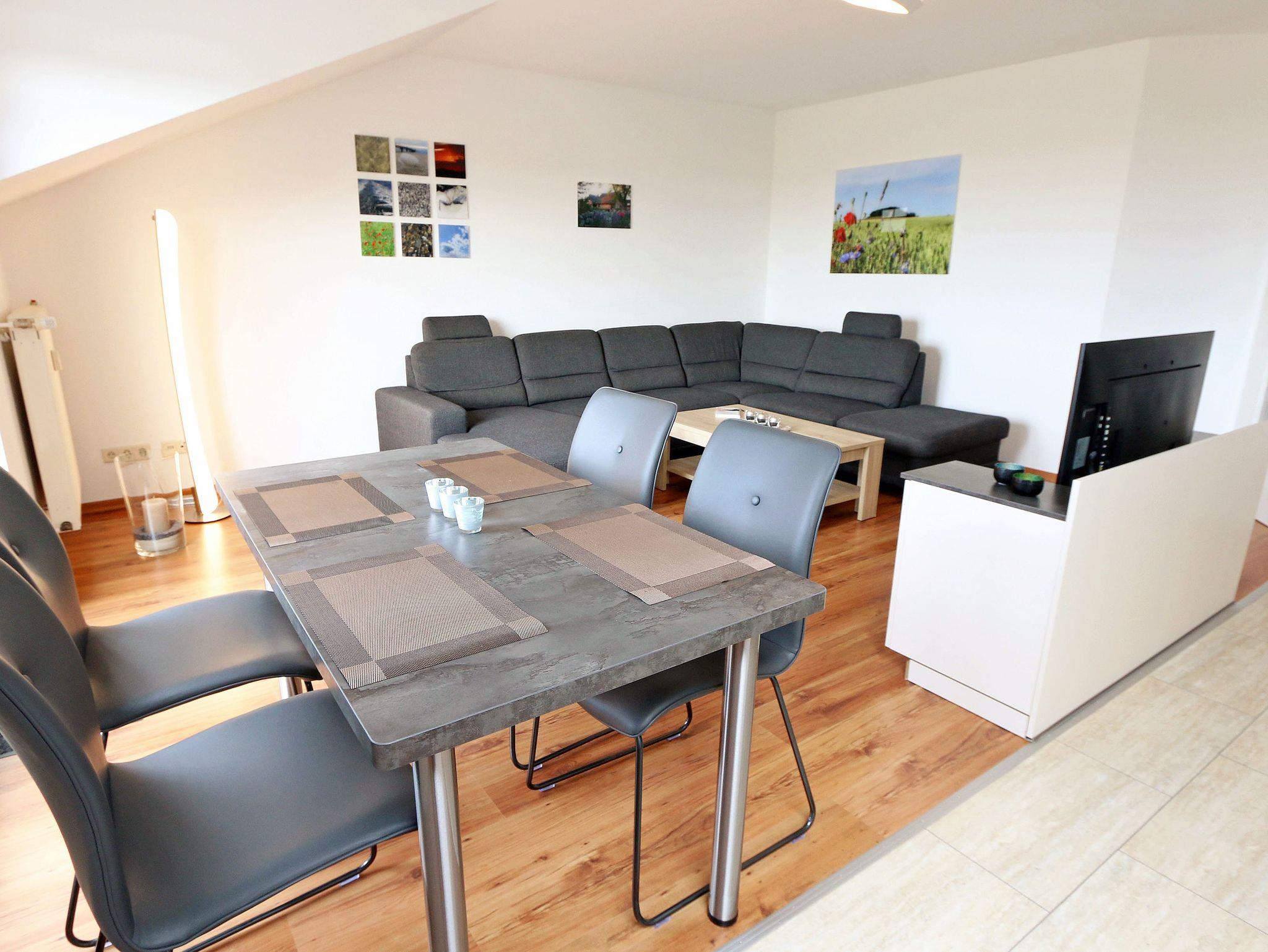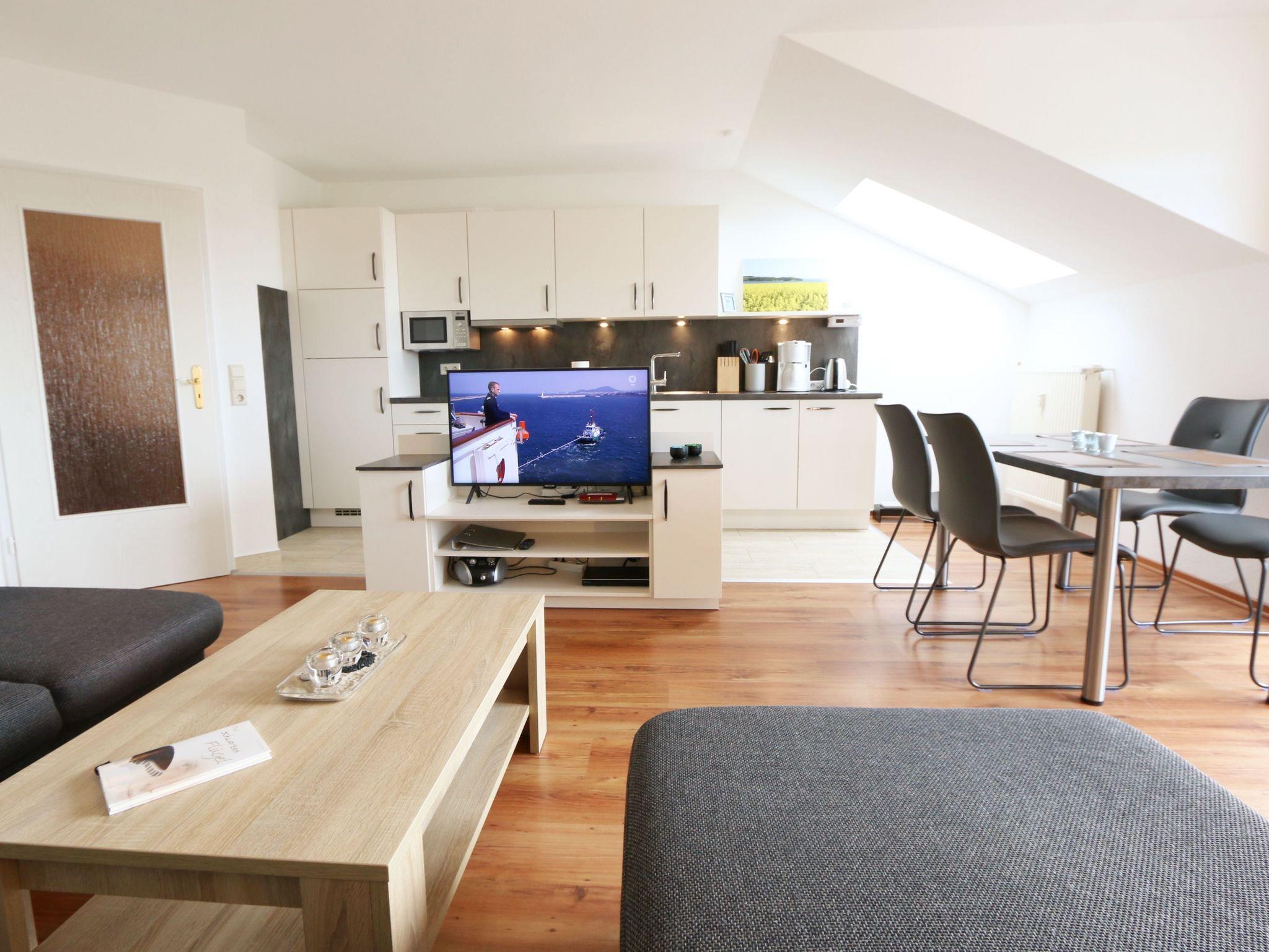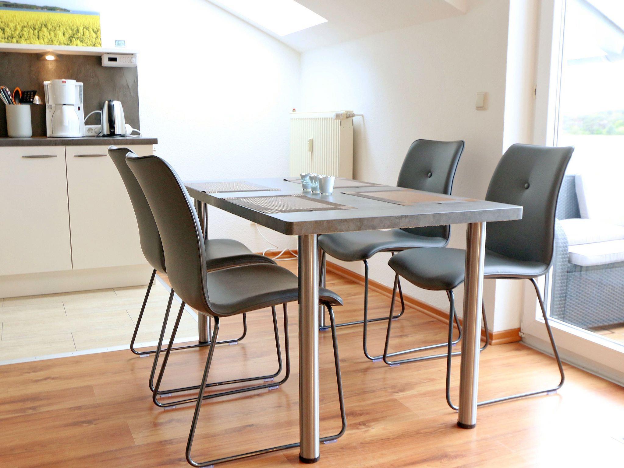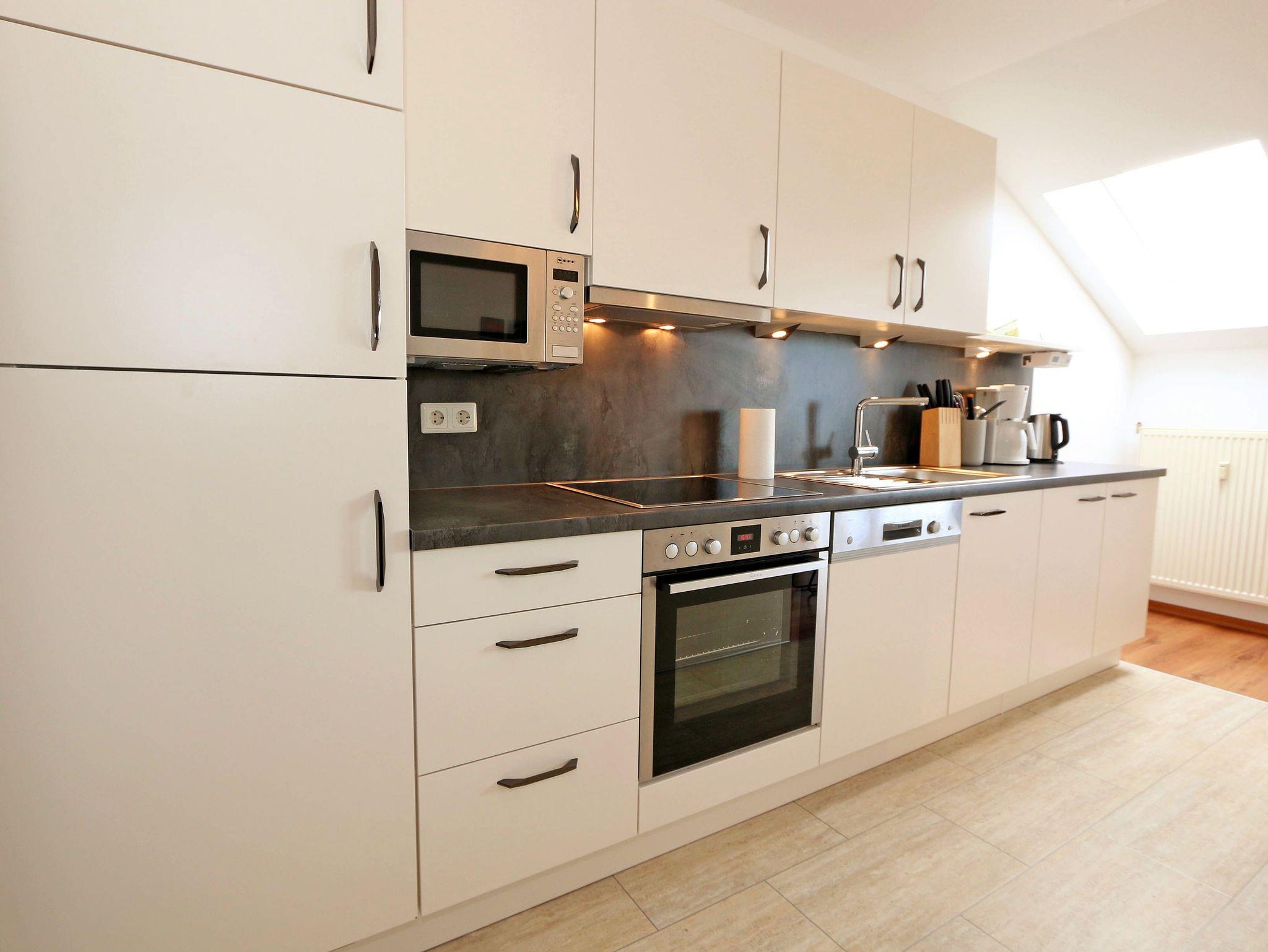 Ihr Urlaub hat begonnen! Sobald Sie das komfortabel eingerichtete Appartement betreten, werden Sie mit einem tollen Panoramablick über den Bodden belohnt, der Sie bei jedem Wetter fesseln wird. Dieses Nichtraucherappartement im 2. Obergeschoß ist mit 60m² für den Besuch von 2 ? 4 Personen liebevoll eingerichtet. Vom hellen Flur mit Garderobe und großem Spiegel aus betreten Sie den großzügigen Wohnbereich. Dort finden Sie eine neue und komplett ausgestattete Küchenzeile mit NEFF und BOSCH-Markengeräten wie ein Geschirrspüler, Kühlschrank mit Gefrierfach, Ceranfeld und Dunstabzugshaube, Backofen, Mikrowelle, Kaffeemaschine, Toaster, Wasserkocher, diverse Küchenhelfer mit einer großen Arbeitsfläche und viel Stauraum. Am stilvollen Esszimmertisch mit bequemen Stühlen genießen Sie bei jeder Jahreszeit einen tollen Blick über den Zicker See. Moderne Leuchten tauchen den Wohnbereich in ein stimmungsvolles Licht. Ein Couchtisch und die großzügige Wohnlandschaft mit Ausziehfunktion und breiter Liegefläche (1,60m x 2,00m) schafft Platz für die 3.oder 4. Person. Ein Smart-TV auf dem Low Board mit DVD-Player, DAB-Radio und eine Büchersammlung für die ruhigen Minuten sorgen für eine Auszeit. Dabei steht Ihnen schnelles WLAN ebenso zur Verfügung wie ein modernes Internet-Radio. Bei dem einen oder anderen Glas Wein tanken Sie Energie auf dem möblierten Süd/West-Balkon mit Sonnenschirm und können Ihre Seele über die Salzwiesen tanzen lassen. Im geräumigen Schlafzimmer mit breitem Doppelbett (1,80m x 2,00m), verstellbare Lattenroste, großzügigem Kleiderschrank, Nachttischablagen mit Leseleuchten und Wand Safe. Ihr erholsamer Schlaf wird durch Verdunklungs-Rollos und -Plissees im gesamten Appartement unterstützt. Das geräumige Badezimmer mit Dusche verfügt über ein Wandtiefspül-WC, Haartrockner, ausreichend Ablagefläche für Ihre Kosmetikartikel und einen großen Spiegel. Für unsere kleinen Gäste stehen ein Kinderreisebett und Hochstuhl bereit. In der kleinen Anlage kann ein Grillplatz genauso genutzt werden, wie eine Tischtennisplatte. Gerne können Sie die vorhandene Waschmaschine und Trockner im Keller des Gebäudes gegen Gebühr nutzen. Ein Haustier ist gegen eine Gebühr ein gern gesehener Gast. Ein Wäscheständer sowie diverse Reinigungsutensilien sind vorhanden. Während Ihre Fahrräder am Objekt oder im Keller untergestellt werden können, parkt Ihr PKW auf Ihren eigenen Stellplatz (Nr. 14) am Haus. Die Erstausstattung eines Wäschepaketes (komplette Bettwäsche, 1 Duschhandtuch, 2 kleine Handtücher) können Sie bis 14 Tage vor Anreise gegen einen Aufpreis dazu buchen oder durch eigene ergänzen. Ab 2 gebuchten Paketen erhalten Sie einmalig 1 Geschirrhandtuch und 1 Duschvorleger hinzu.