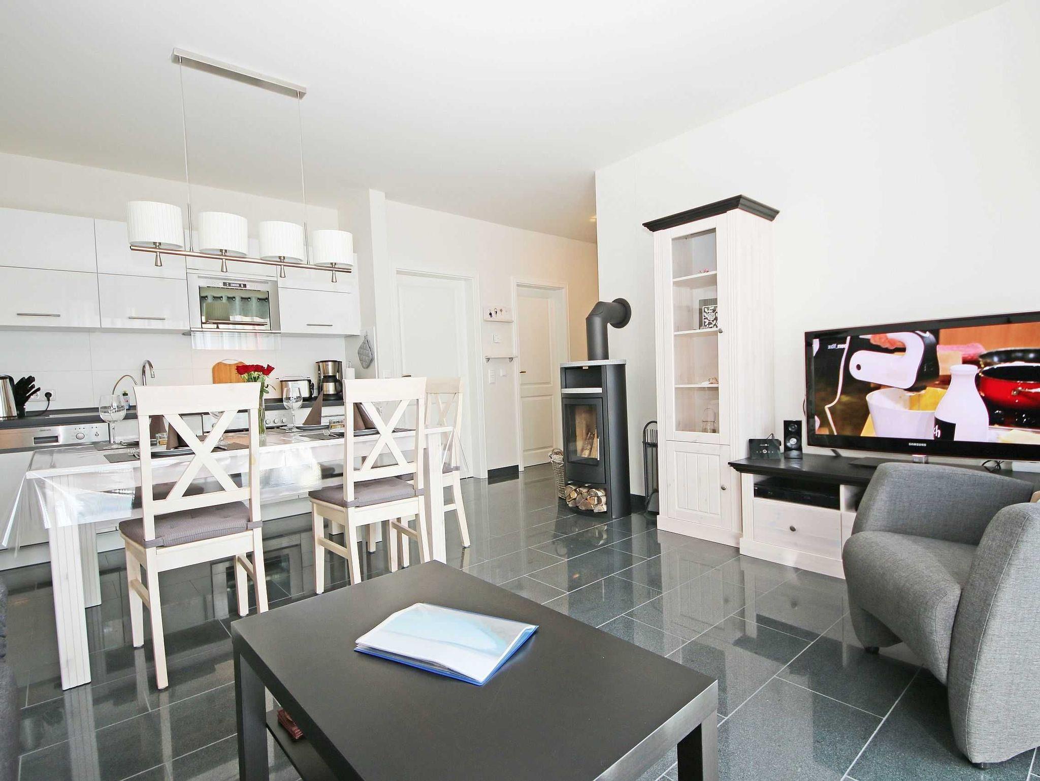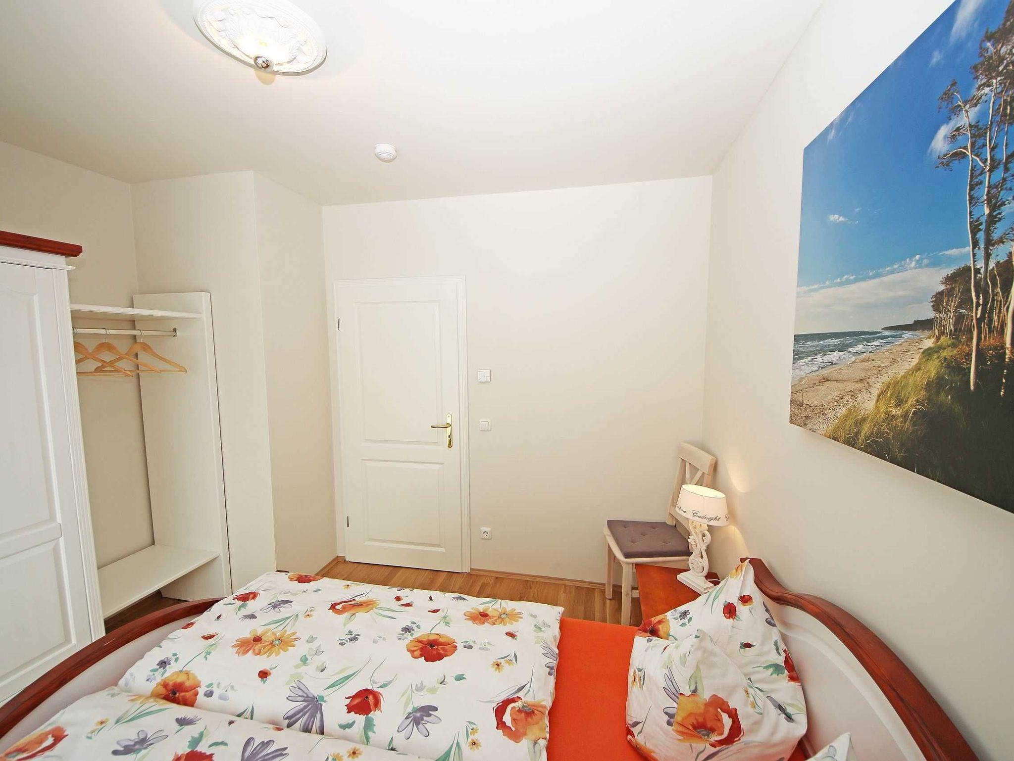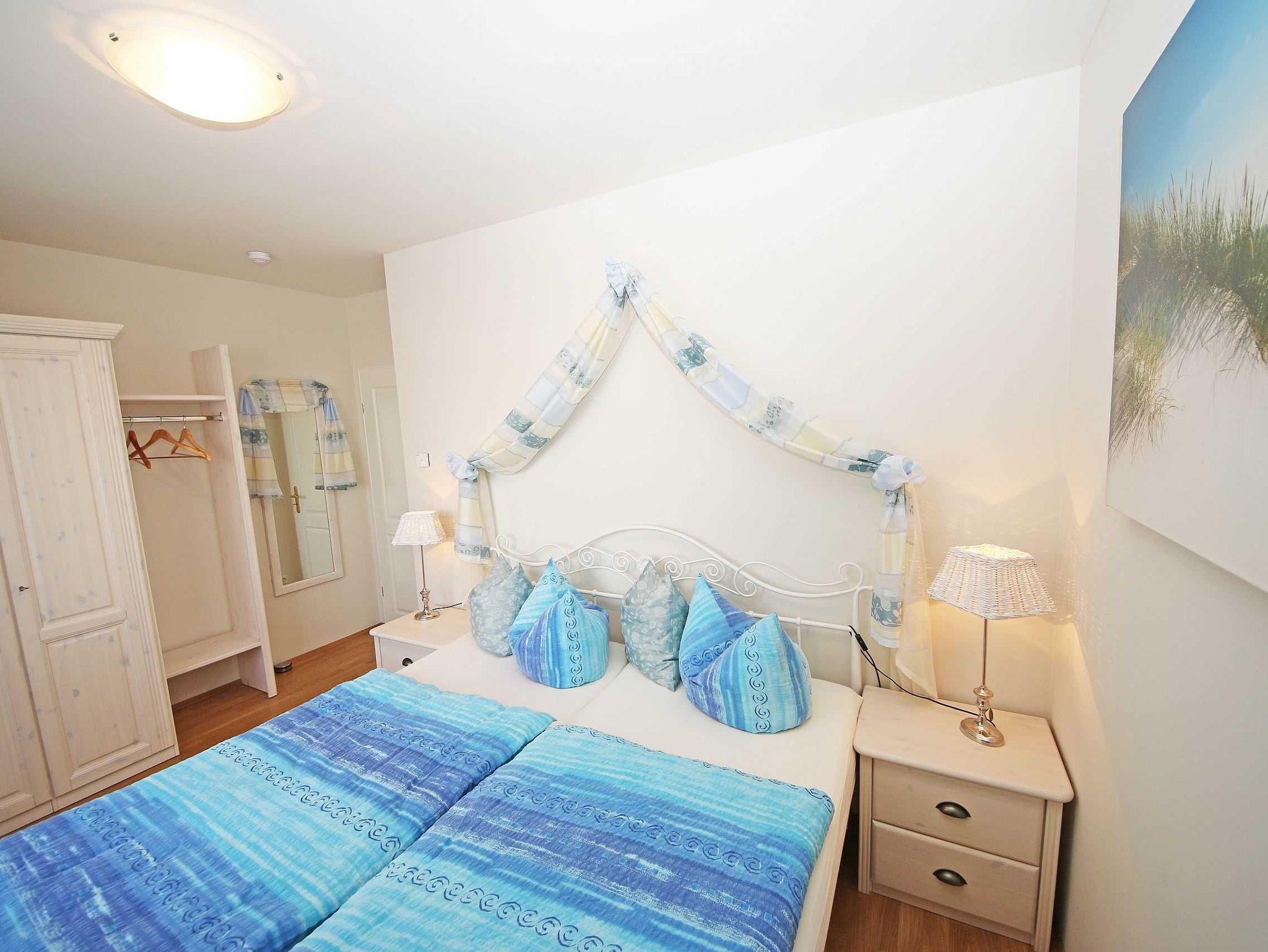 Das 3-Raumappartement (Nichtraucher) befindet sich in Parterre und bietet mit ca. 61 qm ausreichend Platz für bis zu 4 Personen. Die Wohnung ist im gehobenen Standard eingerichtet. An kälteren Abenden sorgt ein Kaminofen für eine wohlige Wärme und gemütliche Atmosphäre. Das Brennholz (solange der Vorrat reicht) steht Ihnen inklusive zur Verfügung. In der Ferienwohnung wurde ein hochwertiger Granitfußboden verarbeitet sowie in den beiden Schlafzimmern ein hochwertiger Parkettboden verlegt. An jedem Fenster wurde Insektenschutz angebracht sowie elektrische Rollläden. Der Wohnraum ist mit einer gemütlichen Couch, Leselampe, Smart-TV, Blu-Ray-Player, WLAN (inklusive) und einer Stereoanlage mit DAB-Radio ausgestattet. Von dem Wohnzimmer sowie vom 2. Schlafzimmer aus gelangen Sie auf die bestuhlte Terrasse mit Sonnenschirm, Strandkorb, Sonnenliege sowie Grill. Von hier aus Blicken Sie in Richtung Süden. Die offene und exklusive Küche ist im Wohnbereich integriert und komplett ausgestattet. Küchengeräte wie Ceranfeld, Backofen, Geschirrspüler, Kühlschrank mit Gefriermöglichkeit, Mikrowelle sowie Kaffeemaschine, Wasserkocher, Toaster und eine gemütliche Essecke wie auch weitere diverse Küchenutensilien runden den Koch- und Küchenbereich ab. In den Schlafzimmern befinden sich je ein Doppelbett (Bettenmaße: Schlafzimmer 1 - 1,80 m x 2,00 m / Schlafzimmer 2 - 1,40 m x 2,00 m), Nachttischkonsolen und ein Kleiderschrank. Das Tageslichtbad rundet mit einer Dusche, Waschtisch, Kosmetikspiegel, Fön und einem WC den Sanitärbereich ab. Für unsere kleinen Gäste steht 1x Kinderreisebett (ohne Matratze und Bett-Inlett) inklusive zur Verfügung. Zusätzlich steht Ihnen eine Waschmaschine zur Verfügung, die zur Nutzung inklusive ist. Ihre mitgebrachten bzw. gemieteten Fahrräder können Sie in einem für die Wohnung vorgesehen Abstellraum verwahren. Ein für Sie reservierter PKW-Stellplatz Nr. 03 ist ebenso vorhanden. Haustiere sind nicht erlaubt. Die Erstausstattung eines Wäschepaketes (komplette Bettwäsche, 1 Duschhandtuch, 2 kleine Handtücher, 2 Geschirrhandtücher) können Sie bis 14 Tage vor Anreise gegen einen Aufpreis dazu buchen oder durch eigene ergänzen.