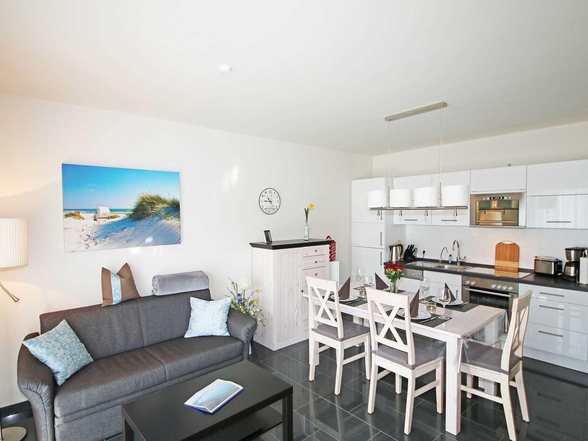 Das Appartementhaus Haus Sanddorn liegt nur 130 m vom schönen breiten Sandstrand entfernt. Die ca. 61 qm große Wohnung verfügt über einen gehobenen Standard und ist perfekt für bis zu 4 Personen geeignet. Ein Kaminofen für die kälteren Tage ist nur ein Teil des gehobenen Standards. Auf der großzügigen wohnungseigenen Terrasse scheint den ganzen Tag die Sonne. Ein Supermarkt (ca. 700 m) und gastronomische Einrichtungen mit frischen Fischgerichten auf der Speisekarte gibt es in der Nähe. Unweit laden Boddenstrände (ideale Surf- und Kite-Reviere), die Klein-Zickeralpen, Boddendeiche und ein kleiner Fischer- und Seglerhafen zu einem Rundgang ein. Mit dem Rad erschließt sich auf gut ausgebauten Radwegen das ganze herrliche Mönchgut mit dem kilometerlangen, feinsandigen Strand, den glazialen Hügeln der Zicker-Alpen und idyllischen Dörfern und Landstraßen. Als weitere Höhepunkte bieten sich Tagesausflüge in die traditionsreichen Ostseebäder (z. B. Binz, Sellin) und weitere berühmte Naturschönheiten Rügens (z. B. Kreidefelsen des Jasmund, Kap Arkona, Insel Hiddensee) mit dem Rad, dem PKW, dem Bus oder auch der Kleinbahn Rasender Roland (ab Göhren) an.