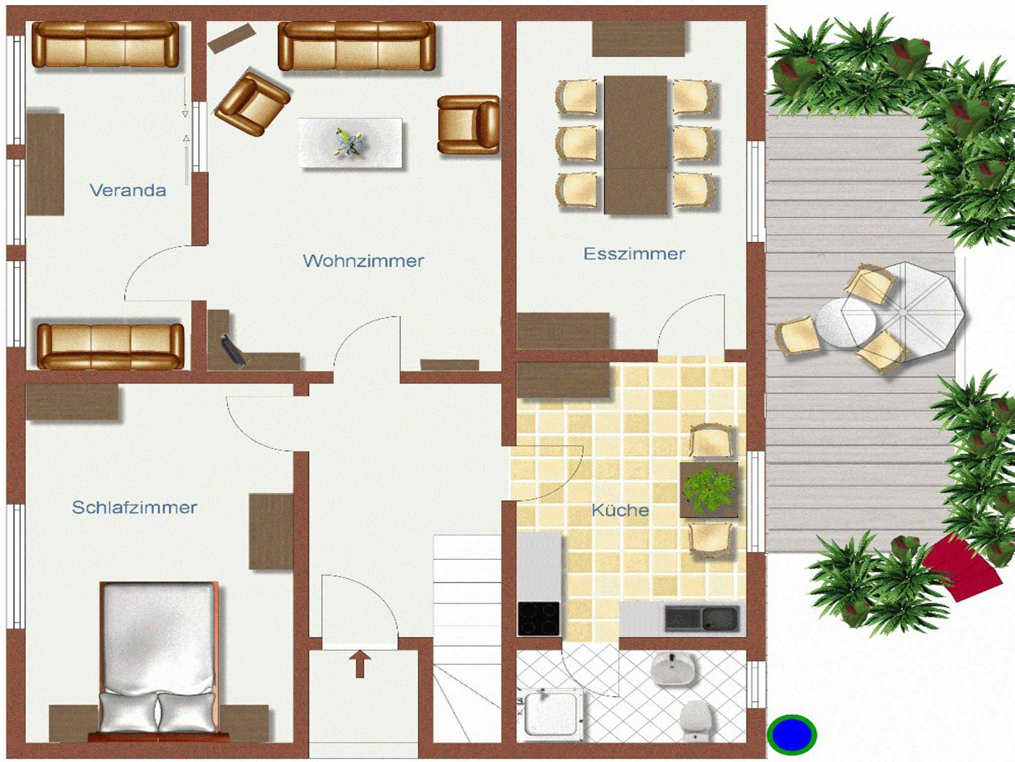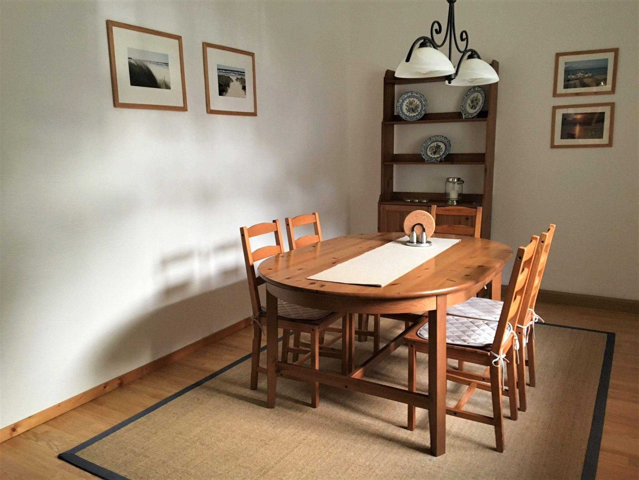 Bei der Wohnung 6 handelt es sich um eine im Mai 2007 komplett renovierte Doppelhaushälfte. Im Erdgeschoss befinden sich ein Flur, das Wohnzimmer mit Couch, Flachbild-TV und Zugang zur Veranda, ein Esszimmer mit großem Esstisch, ein Schlafzimmer mit Doppelbett (zwei Matratzen), eine Küche mit Backofen, Herd mit Ceranfeld, Geschirrspüler und Gefrierkombination sowie einmal Dusche/WC.