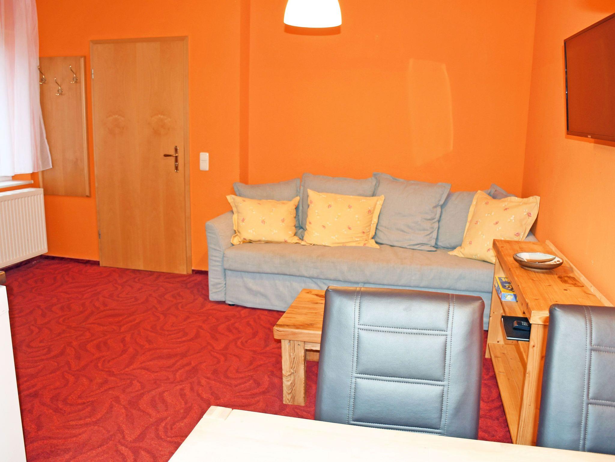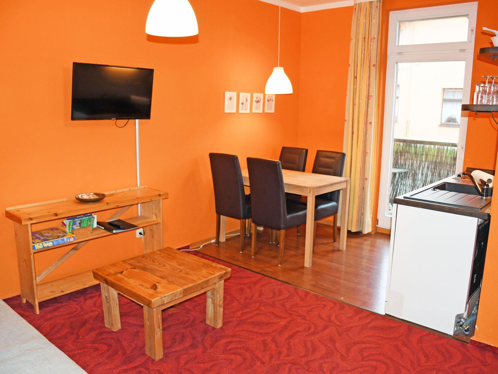 Dieses Ferienappartement erreichen Sie über den Hintereingang und liegt im Erdgeschoss. Sie ist ca. 35 qm groß, bietet Platz für maximal 4 Erwachsene und wurde modern eingerichtet. Es handelt sich um ein 2-Raum-Appartement.