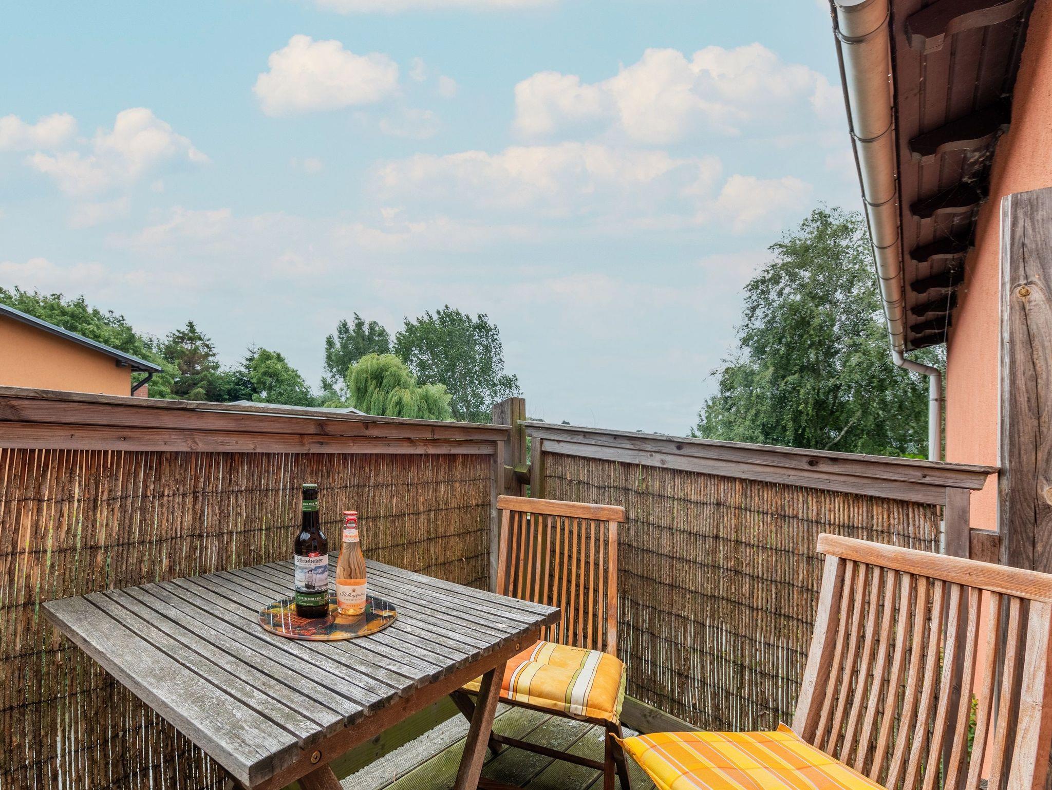 2-4 Pers.: 2-Zimmer-Wohnung mit 37 qm Wohnfläche, Parterre. Wohn-/Essraum mit Couchgarnitur (Ausziehcouch 2 Pers.), Esstisch, Küchenzeile (2 P. E-Herd, Spülmaschine, Minibackofen, Kaffeemaschine, Wasserkocher, 6-Set-Ess-Geschirr und Besteck, kleine Auswahl an Gläsern, kleine Topfsammlung, ein paar kleine Küchenhelfer --- Grundausstattung!!!)). Doppelbett, Couchgarnitur (Ausziehcouch 2 Personen), Bad/WC. Balkon mit Sitzmöbeln.
