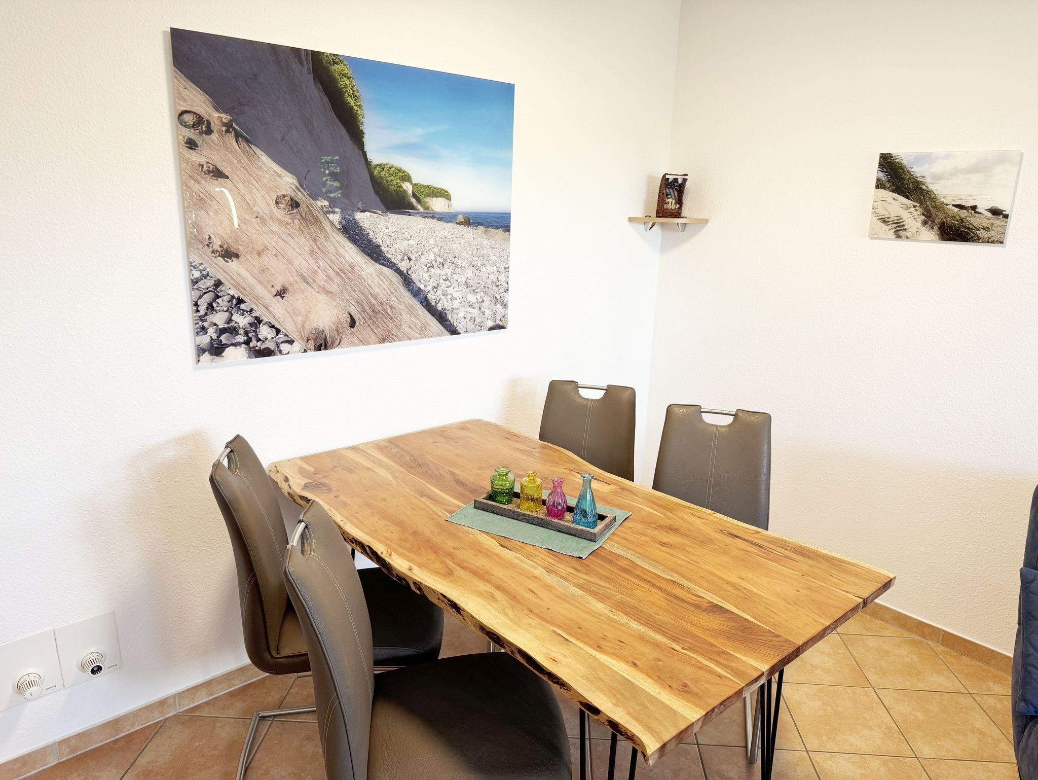 Die Halbinsel Mönchgut im Südosten Rügens bildet mit Ihrer sanften Hügellandschaft und dem häufigen Wechsel zwischen Wald und Meer den landschaftlich schönsten Teil der Insel Rügen. Eingebettet in diese Landschaft und von drei Seiten vom Meer umgeben, liegt hier das kleine Ostseebad Thiessow. Das Ostseebad bietet optimale Bedingungen für einen erholsamen Urlaub für Groß und Klein. Zu jeder Jahreszeit können Sie hier einen gesunden Urlaub verbringen. Die Nichtraucherwohnung bietet Platz für 2-3 Personen und ein Kind (bis 12 Jahre). Das Appartement, welches nur ca. 150 m vom weißen Sandstrand entfernt ist, befindet sich im Erdgeschoss mit Terrasse. Es ist der richtige Ort für all jene, die Sonnenstrand und Meer ebenso suchen, wie Frieden und Entspannung. Für Aktivurlauber bietet die benachbarte Surfoase beste Bedingungen. Lokale Köstlichkeiten und fangfrischer Fisch werden Ihnen in den Restaurants des Ortes serviert.