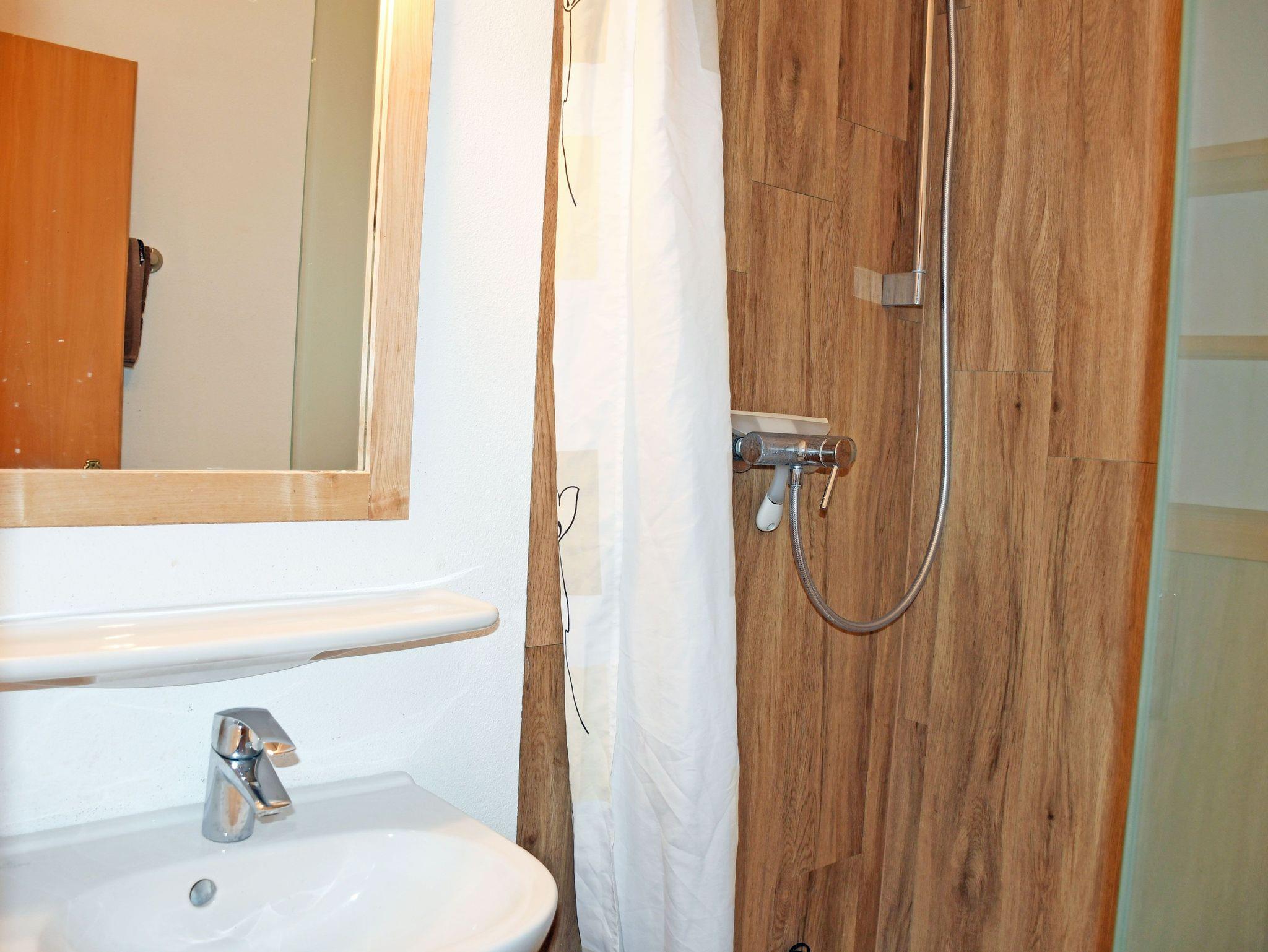 Das Bad ist mit Dusche, WC, Fön und Waschtisch ausgestattet.