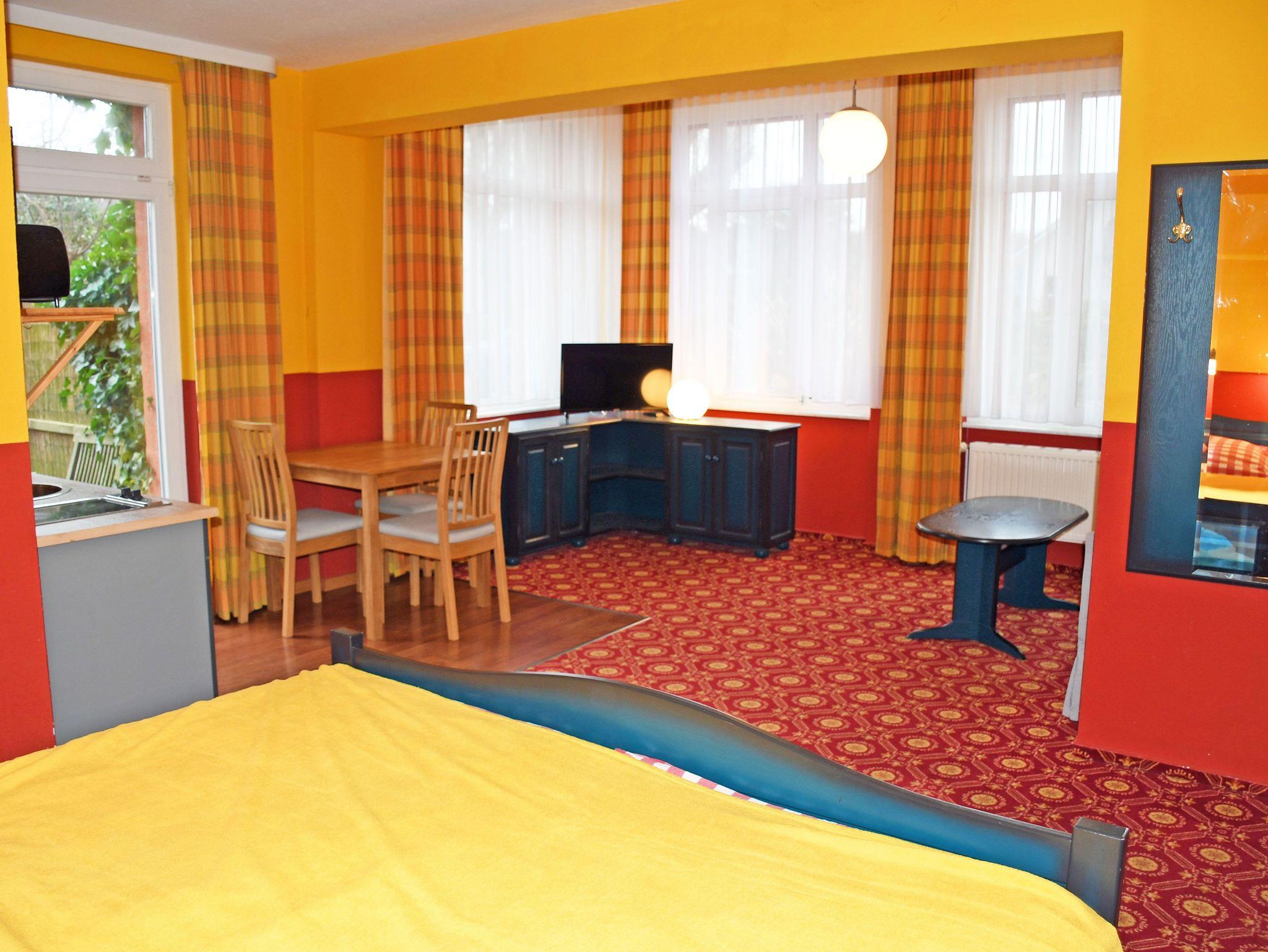 Dieses Ferienappartement verfügt über einen separaten Eingang und liegt im Erdgeschoss. Sie ist ca. 35 qm groß, bietet Platz für maximal 3 Erwachsene und wurde modern eingerichtet. Das 1-Raum-Appartement ist unterteilt in Schlaf,- Wohn- und Küchenbereich.