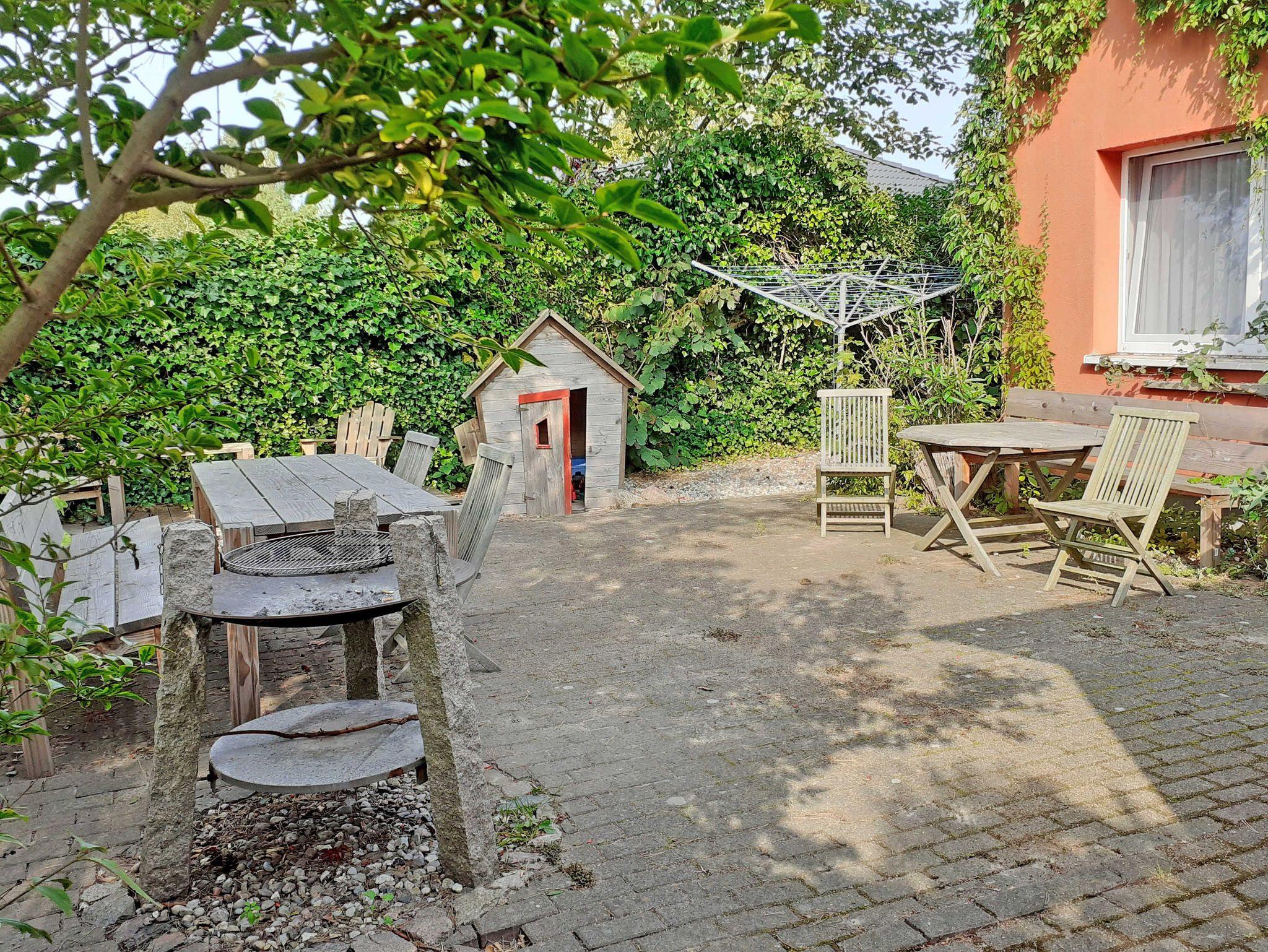 Am Haus befindet sich im Innenhof ein Garten mit Gemeinschaftsterrasse und Grill, Wäscheplatz, Spielhaus sowie ein Parkplatz.