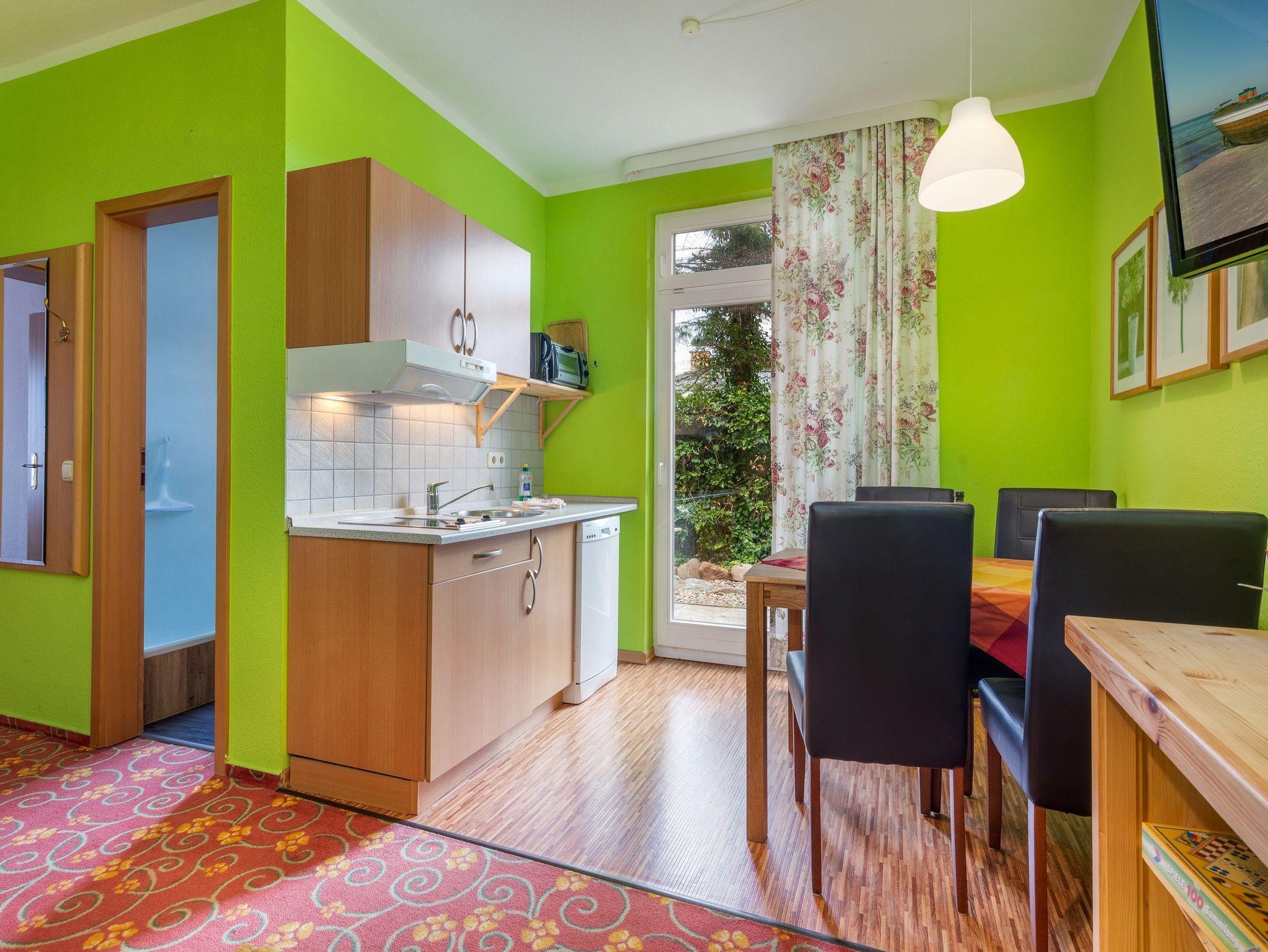 Dieses Ferienappartement erreichen Sie über den Hintereingang und liegt im Erdgeschoss. Sie ist ca. 35 qm groß, bietet Platz für maximal 4 Erwachsene und wurde modern eingerichtet. Es handelt sich um ein 2-Raum-Appartement.