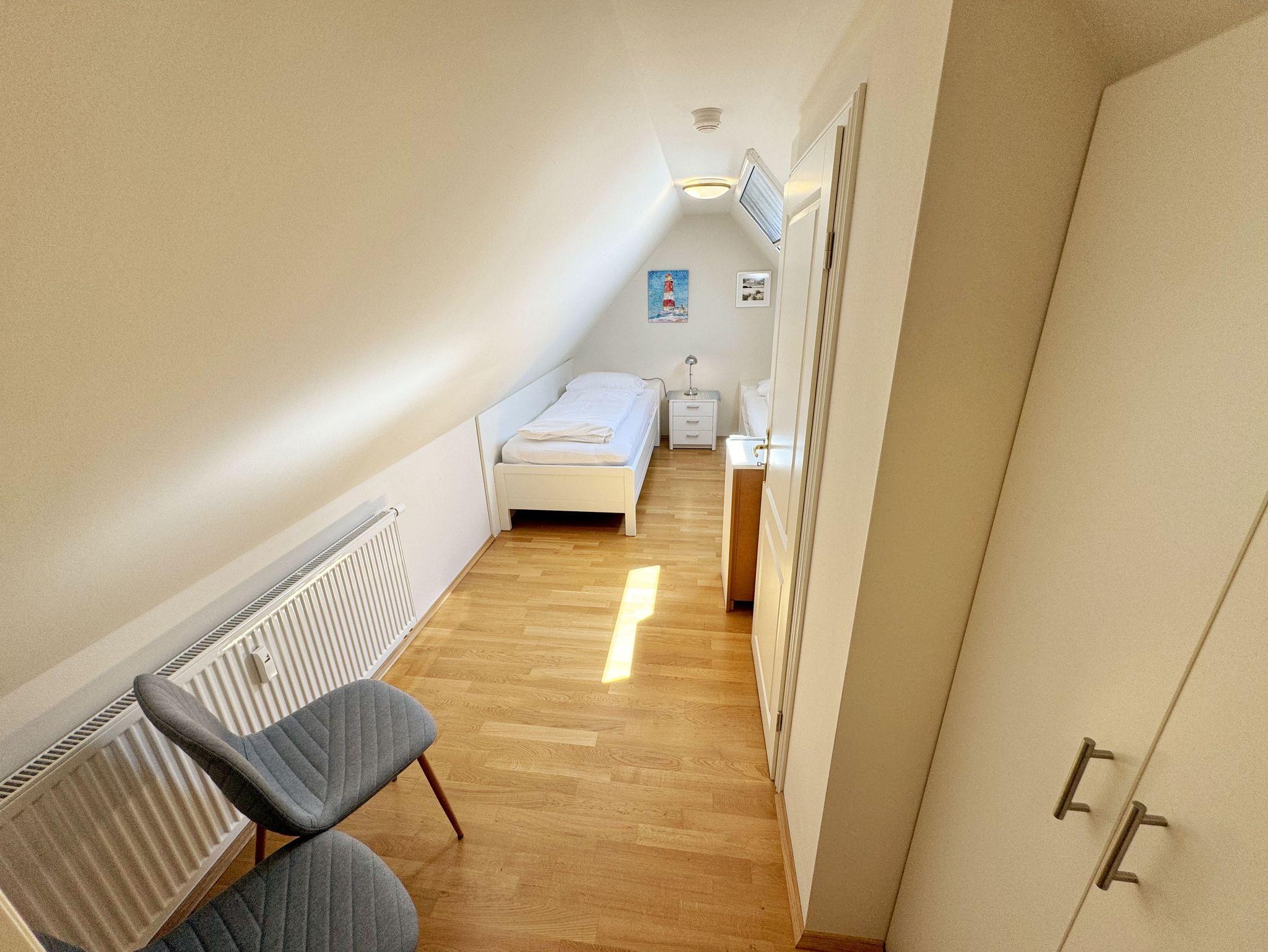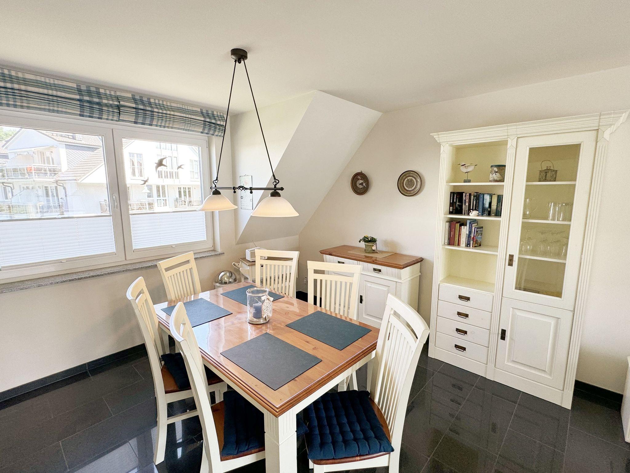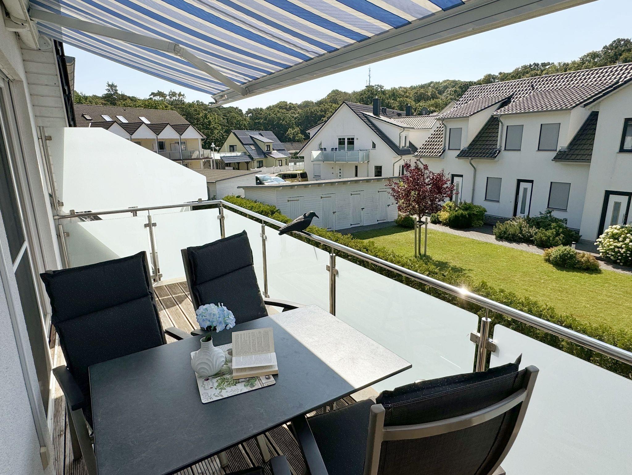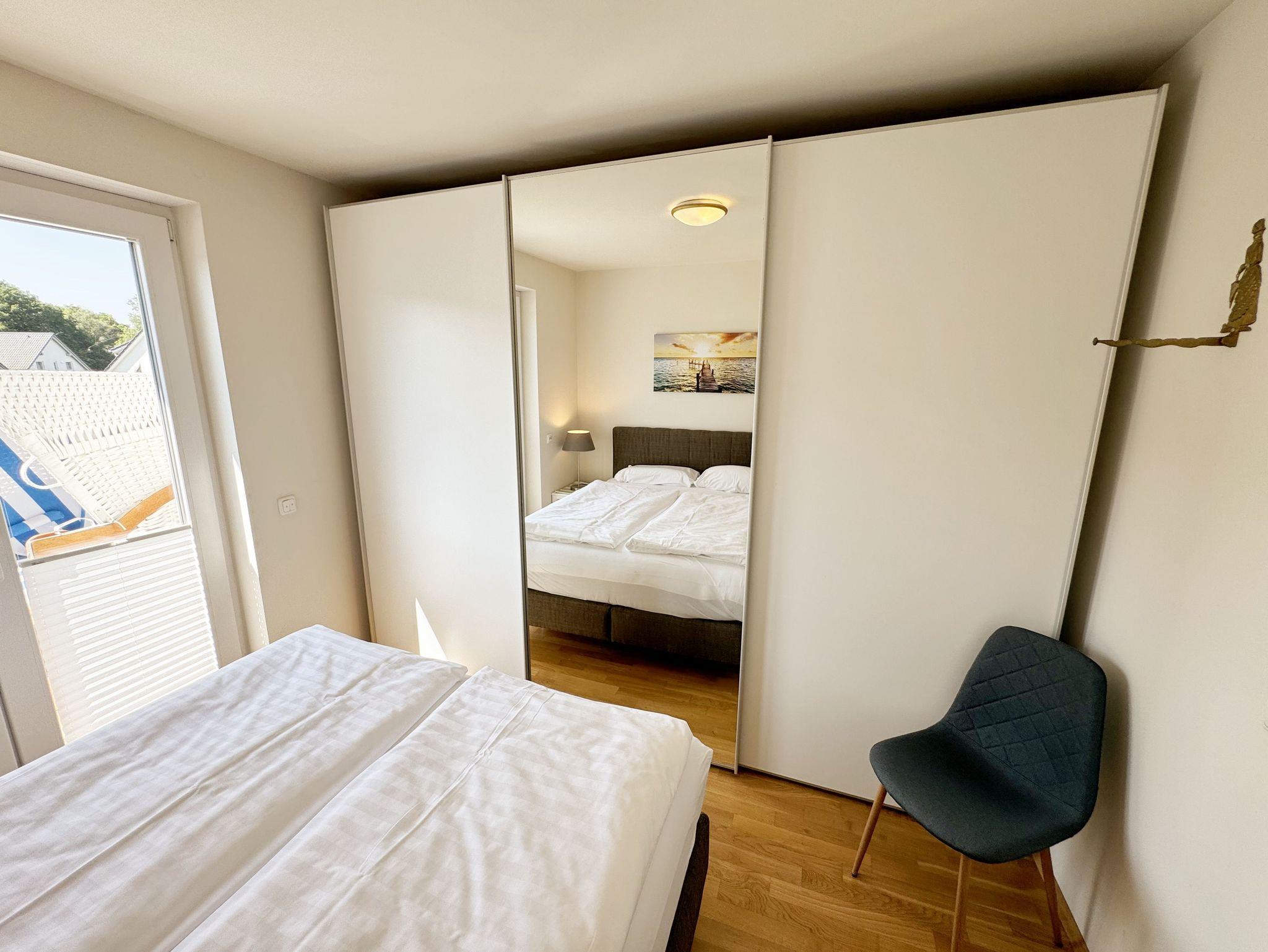 Die Nichtraucherferienwohnung Nr. 06 befindet sich im Obergeschoss im Haus Sanddorn. Sie bietet Ihnen mit Ihren ca. 70qm ausreichend Platz für 2 ? 4 Personen und ist der ideale Rückzugsort für Ihren Urlaub auf der Halbinsel Mönchgut. Treten Sie ein und lassen sich von der abgestimmten Einrichtung verzaubern. Der kleine Flurbereich ist mit einer Garderobe, einem Ganzkörperspiegel und einem Wandschrank versehen. Von hier aus gelangen Sie in den offenen Wohnbereich mit angrenzendem Essbereich sowie der offenen Küchenzeile. Der helle Wohnbereich wurde mit Vollholzmöbeln, einer Ledercouch, zwei bequeme Sessel, einem Couchtisch, zwei Leselampen, einem Smart-TV, einem DAB-Radio, einer kleinen Auswahl an Urlaubslektüre und WLAN ausgestattet. An kühlen Tagen sorgt ein Kaminofen für eine zusätzliche Gemütlichkeit. Von hier gelangen Sie auch auf den bestuhlten Südbalkon mit elektrischer Markise und Windsensor, welche Ihnen an sonnigen Tagen Schatten spendet. Angrenzend zum Wohnbereich befindet sich die vollausgestattet Küchenzeile. Die hochwertige Ausstattung umfasst ein 4 Zonen Cerankochfeld, einen Kühlschrank mit Eisfach, eine Spülmaschine, einen Backofen, eine Mikrowelle, eine Kaffeemaschine mit Thermoskanne, eine Nespresso Maschine, einen Toaster, einen Wasserkocher sowie diverse Küchenutensilien, die Sie zum Kochen benötigen. Ein Essplatz rundet den Bereich ab. Das Schlafzimmer, welches sich auf der gleichen Ebene befindet, wurde mit einem Boxspringbett (1,60m x 2,00m) mit durchgehenden Topper, Nachttischablagen und einem großen Kleiderschrank ausgestattet. Auch von hier gelangen Sie auf den Südbalkon. Das Tageslicht-Bad sorgt mit seinem beheizbaren Handtuchheizkörper, einem WC, einer ebenerdigen Dusche, einem Waschplatz, einem Fön, einem Kosmetikspiegel, einer Waschmaschine und einem Wäschetrockner für Komfort und Bequemlichkeit. Das zweite Schlafzimmer erreichen Sie durch eine Links-/Rechts Treppe vom Wohnbereich. Hier können Sie mit 2 Einzelbetten (á 0,90m x 2,00m), verstellbare Lattenroste, einer Kommode, einen Kleiderschrank und einen Smart-TV zufrieden in den Schlaf kommen. Abgerundet wird der Schlafkomfort in diesem Raum mit einem elektrisch gesteuerten Dachfenster mit Insektenschutzgitter und Verdunklungsrollo. Von hier aus gelangen Sie in das zusätzliche Gäste-WC mit Waschplatz und Einbauschrank. Alle Räumlichkeiten sind zusätzlich mit Insektenschutzgitter, elektrischen Außenrollo´s und einer Fußbodenheizung ausgestattet. Haustiere sind nicht erlaubt. Ein PKW-Stellplatz (Nr.06) befindet sich direkt am Haus. Im Schuppen (Nr.06) können Sie Ihre mitgebrachten oder geliehenen Fahrräder unterstellen. Die Erstausstattung eines Wäschepaketes (komplette Bettwäsche, 1 Duschhandtuch, 2 kleine Handtücher) können Sie bis 14 Tage vor Anreise gegen einen Aufpreis dazu buchen oder durch eigenes Ergänzen. Ab 2 gebuchten Paketen erhalten Sie einmalig 1 Geschirrhandtuch und 1 Duschvorleger hinzu.