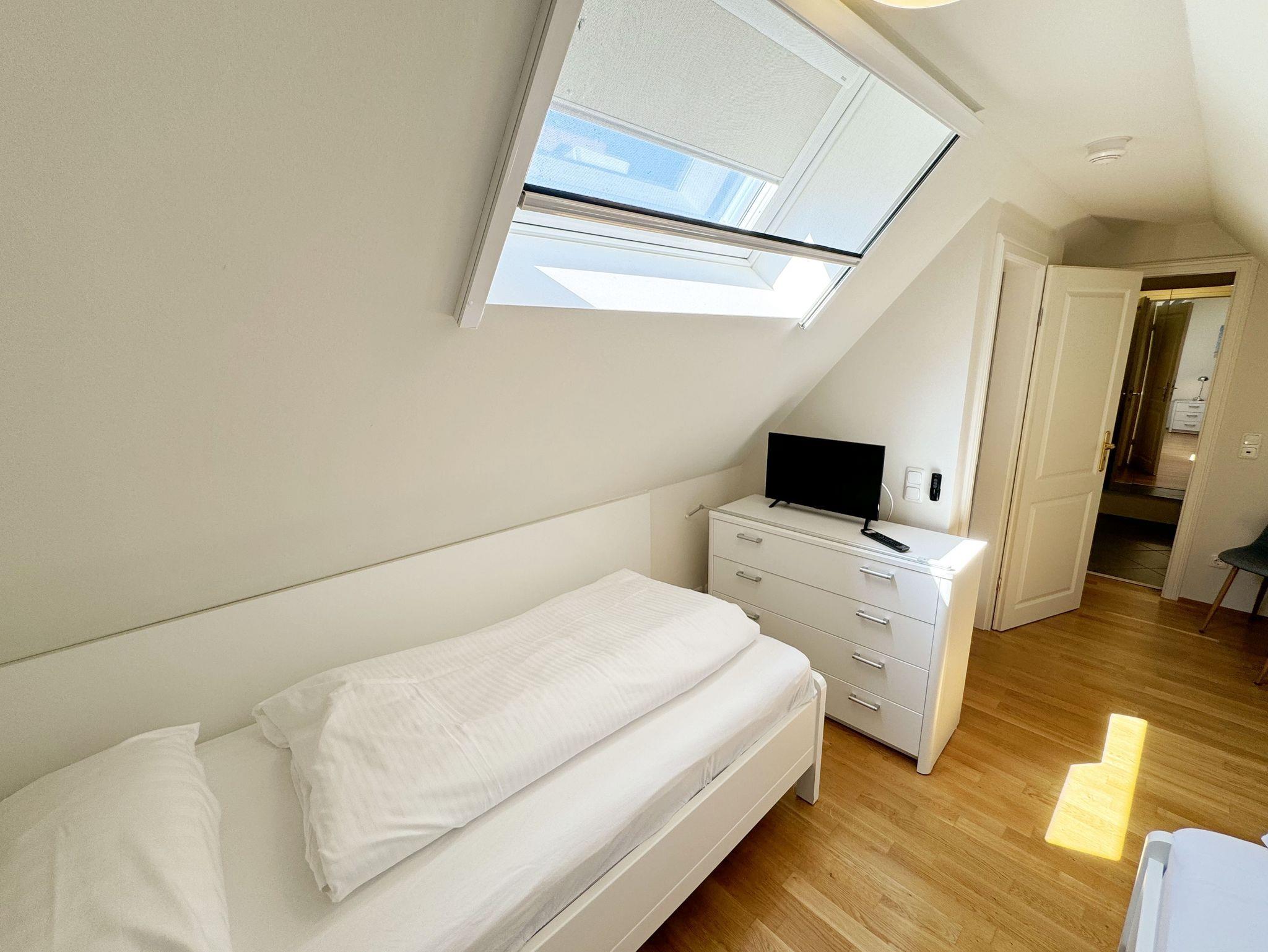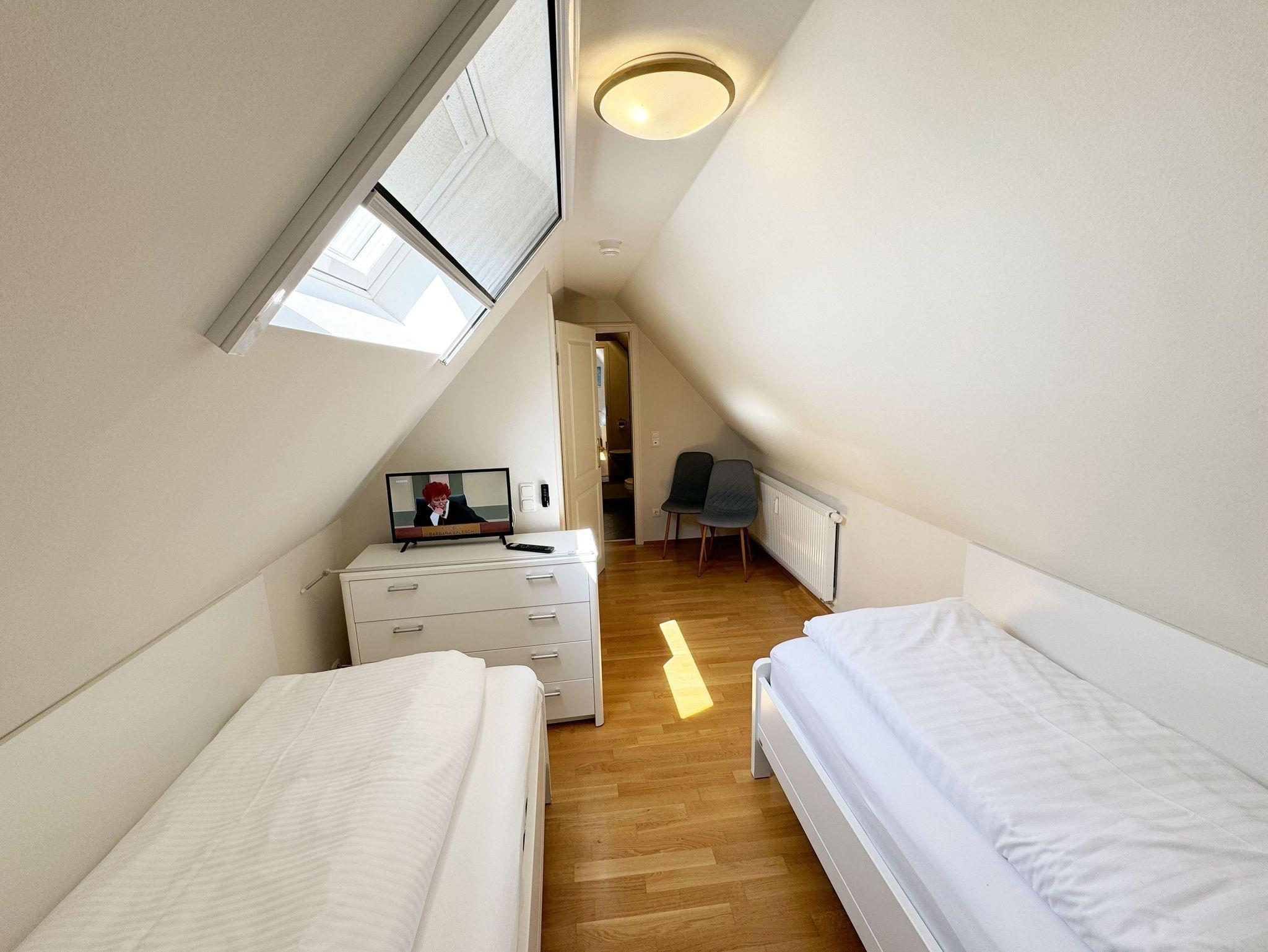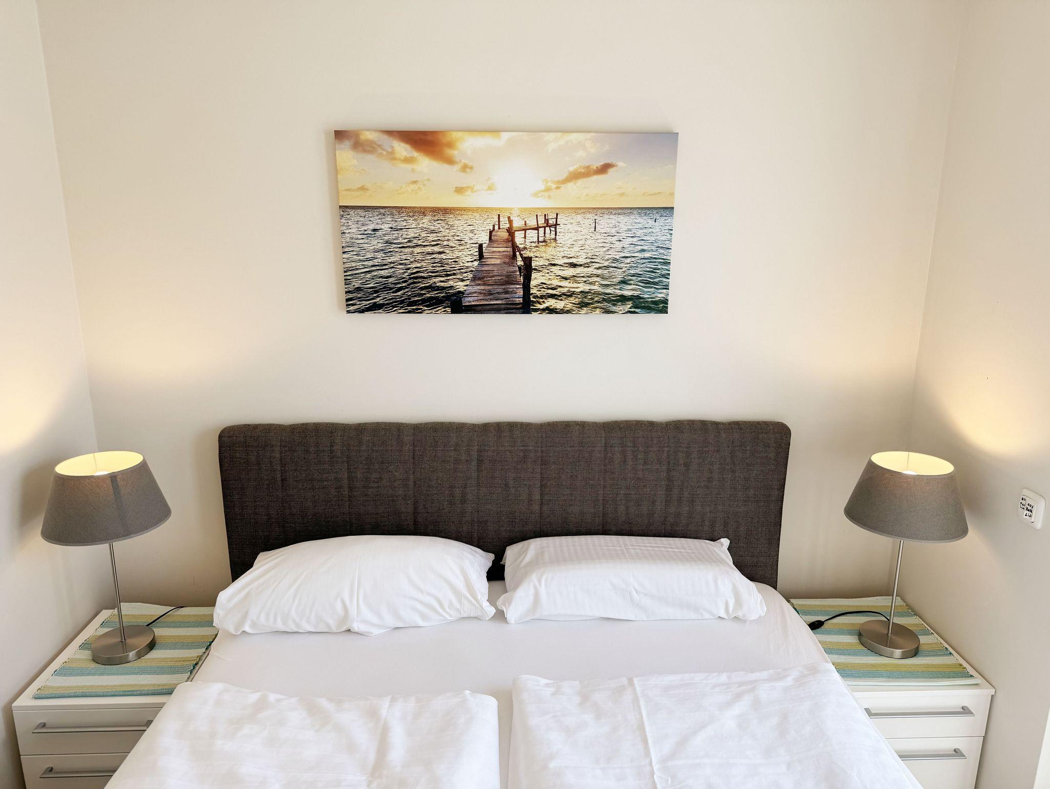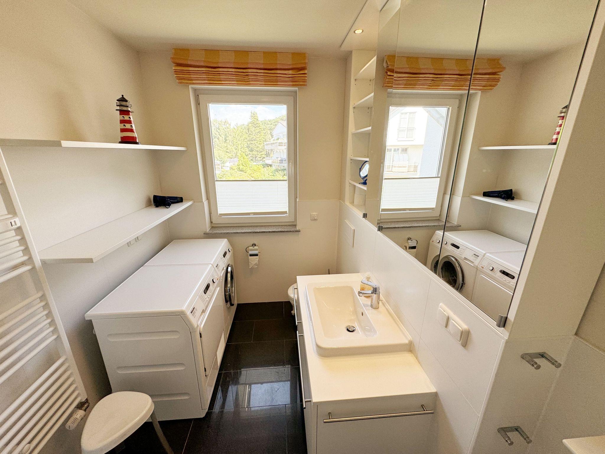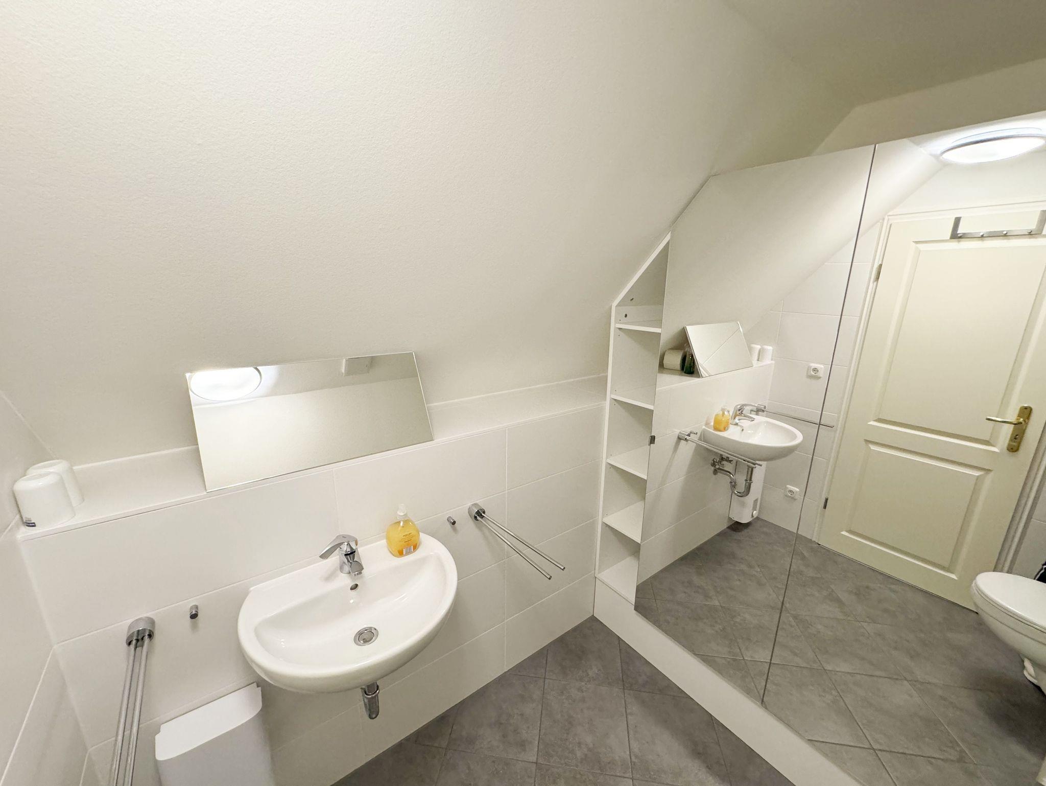 Die Nichtraucherferienwohnung Nr. 06 befindet sich im Obergeschoss im Haus Sanddorn. Sie bietet Ihnen mit Ihren ca. 70qm ausreichend Platz für 2 ? 4 Personen und ist der ideale Rückzugsort für Ihren Urlaub auf der Halbinsel Mönchgut. Treten Sie ein und lassen sich von der abgestimmten Einrichtung verzaubern. Der kleine Flurbereich ist mit einer Garderobe, einem Ganzkörperspiegel und einem Wandschrank versehen. Von hier aus gelangen Sie in den offenen Wohnbereich mit angrenzendem Essbereich sowie der offenen Küchenzeile. Der helle Wohnbereich wurde mit Vollholzmöbeln, einer Ledercouch, zwei bequeme Sessel, einem Couchtisch, zwei Leselampen, einem Smart-TV, einem DAB-Radio, einer kleinen Auswahl an Urlaubslektüre und WLAN ausgestattet. An kühlen Tagen sorgt ein Kaminofen für eine zusätzliche Gemütlichkeit. Von hier gelangen Sie auch auf den bestuhlten Südbalkon mit elektrischer Markise und Windsensor, welche Ihnen an sonnigen Tagen Schatten spendet. Angrenzend zum Wohnbereich befindet sich die vollausgestattet Küchenzeile. Die hochwertige Ausstattung umfasst ein 4 Zonen Cerankochfeld, einen Kühlschrank mit Eisfach, eine Spülmaschine, einen Backofen, eine Mikrowelle, eine Kaffeemaschine mit Thermoskanne, eine Nespresso Maschine, einen Toaster, einen Wasserkocher sowie diverse Küchenutensilien, die Sie zum Kochen benötigen. Ein Essplatz rundet den Bereich ab. Das Schlafzimmer, welches sich auf der gleichen Ebene befindet, wurde mit einem Boxspringbett (1,60m x 2,00m) mit durchgehenden Topper, Nachttischablagen und einem großen Kleiderschrank ausgestattet. Auch von hier gelangen Sie auf den Südbalkon. Das Tageslicht-Bad sorgt mit seinem beheizbaren Handtuchheizkörper, einem WC, einer ebenerdigen Dusche, einem Waschplatz, einem Fön, einem Kosmetikspiegel, einer Waschmaschine und einem Wäschetrockner für Komfort und Bequemlichkeit. Das zweite Schlafzimmer erreichen Sie durch eine Links-/Rechts Treppe vom Wohnbereich. Hier können Sie mit 2 Einzelbetten (á 0,90m x 2,00m), verstellbare Lattenroste, einer Kommode, einen Kleiderschrank und einen Smart-TV zufrieden in den Schlaf kommen. Abgerundet wird der Schlafkomfort in diesem Raum mit einem elektrisch gesteuerten Dachfenster mit Insektenschutzgitter und Verdunklungsrollo. Von hier aus gelangen Sie in das zusätzliche Gäste-WC mit Waschplatz und Einbauschrank. Alle Räumlichkeiten sind zusätzlich mit Insektenschutzgitter, elektrischen Außenrollo´s und einer Fußbodenheizung ausgestattet. Haustiere sind nicht erlaubt. Ein PKW-Stellplatz (Nr.06) befindet sich direkt am Haus. Im Schuppen (Nr.06) können Sie Ihre mitgebrachten oder geliehenen Fahrräder unterstellen. Die Erstausstattung eines Wäschepaketes (komplette Bettwäsche, 1 Duschhandtuch, 2 kleine Handtücher) können Sie bis 14 Tage vor Anreise gegen einen Aufpreis dazu buchen oder durch eigenes Ergänzen. Ab 2 gebuchten Paketen erhalten Sie einmalig 1 Geschirrhandtuch und 1 Duschvorleger hinzu.