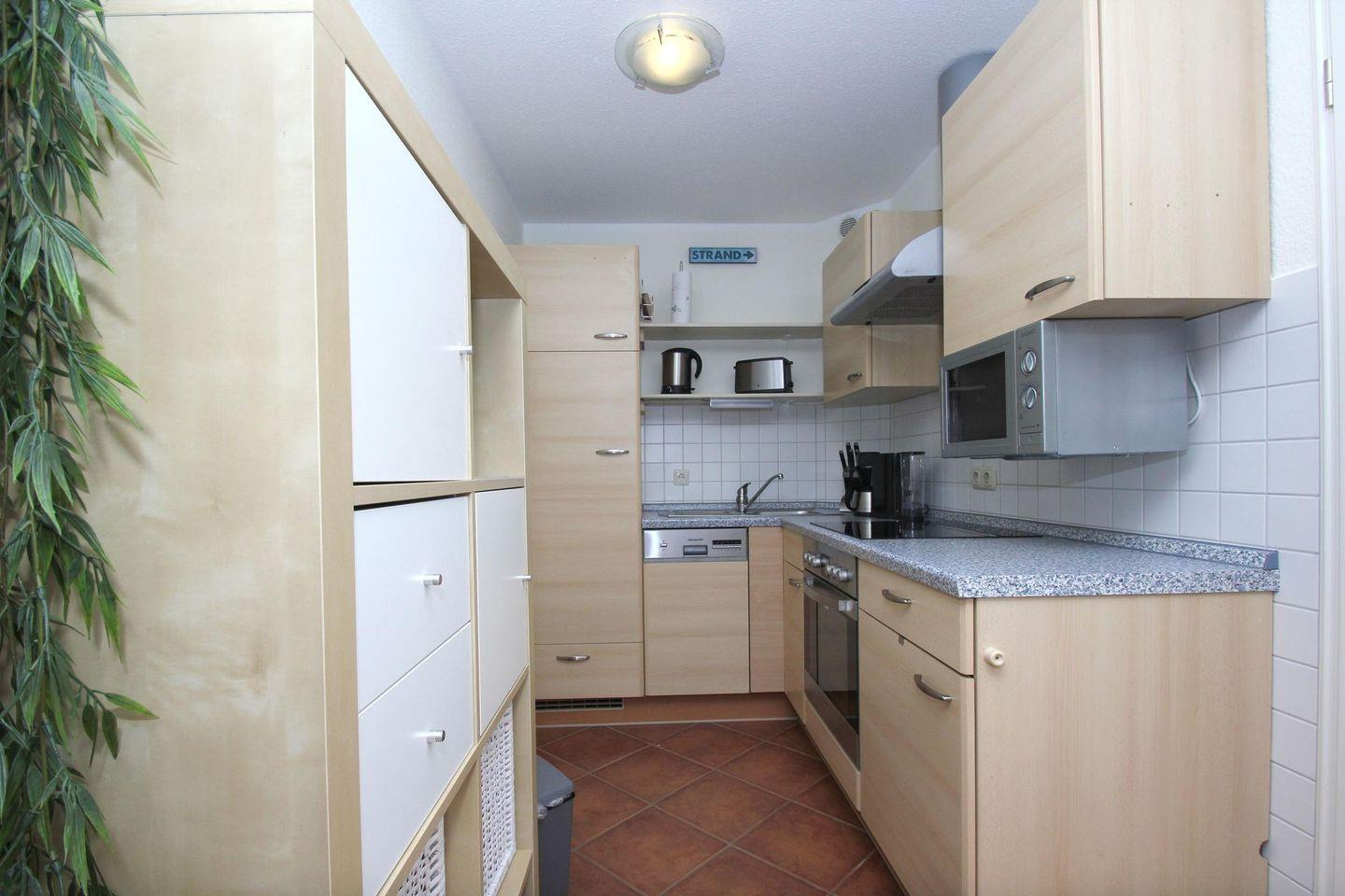 KÜCHE // offene Küche, 4-Felder Ceranherd, Kühlschrank mit Gefrierfach, Spülmaschine, Backofen, Toaster, Wasserkocher, Kaffeemaschine, reichlich Besteck, Geschirr und Küchenutensilien ++