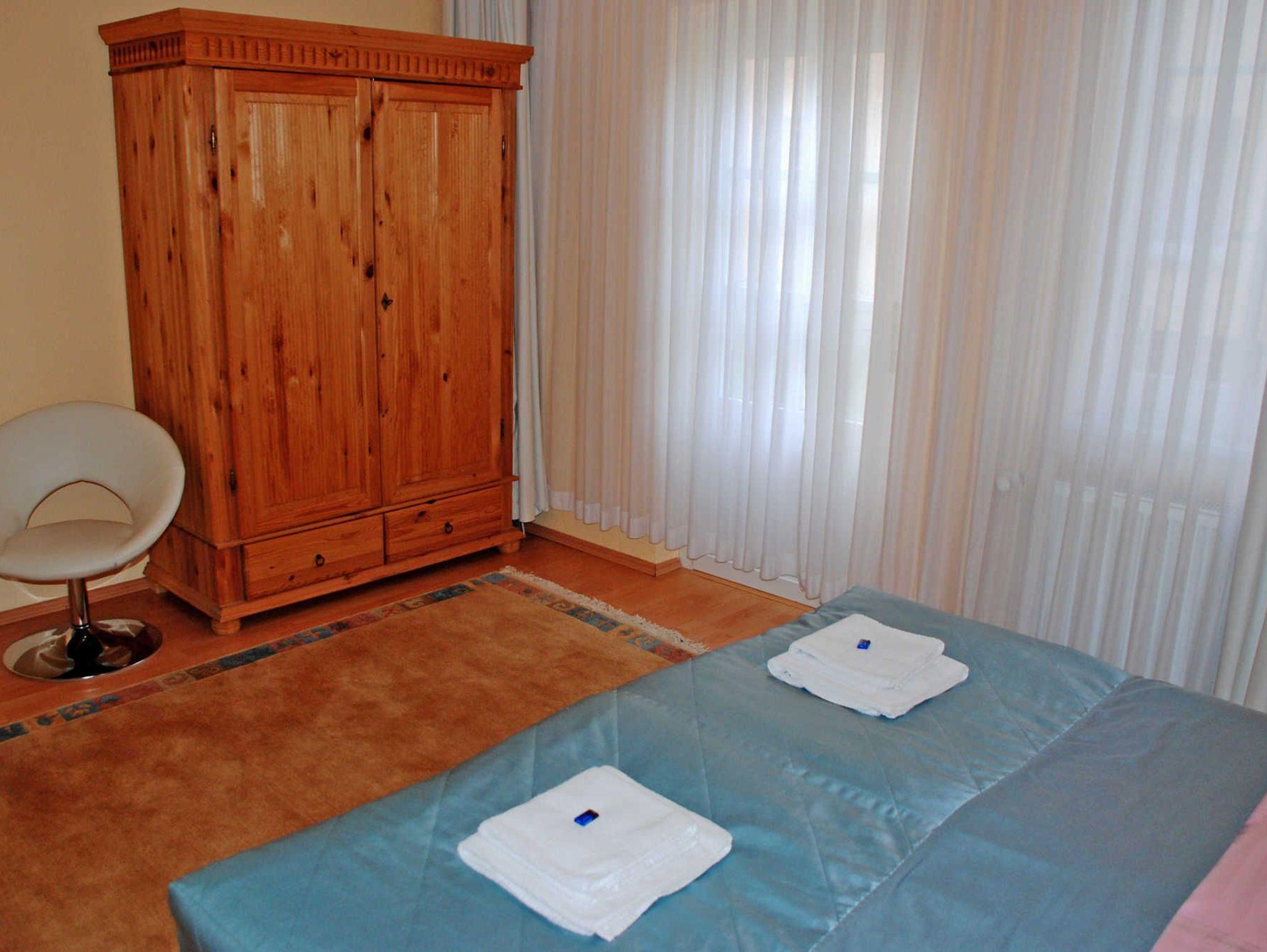 Die Ferienwohnung liegt im Hotelgebäude und verfügt über einen separaten Eingang. Sie ist ca. 36 qm groß, hat Platz für maximal 3 Erwachsene und wurde modern und hochwertig eingerichtet. Im Wohnraum befinden sich eine bequeme Sitzcouch mit Tisch und ein modernes Flachbild-TV-Gerät. Hier steht auch ein Esstisch mit Stühlen. Die moderne Küchenzeile ist mit einem Herd, Mikrowelle, Wasserkocher, Kaffeemaschine, Toaster und Kühlschrank komplett ausgestattet. Das großzügige Schlafzimmer ist mit einem bequemen Doppelbett mit Nachttischen und Leselampen sowie einem Kleiderschrank ausgestattet.