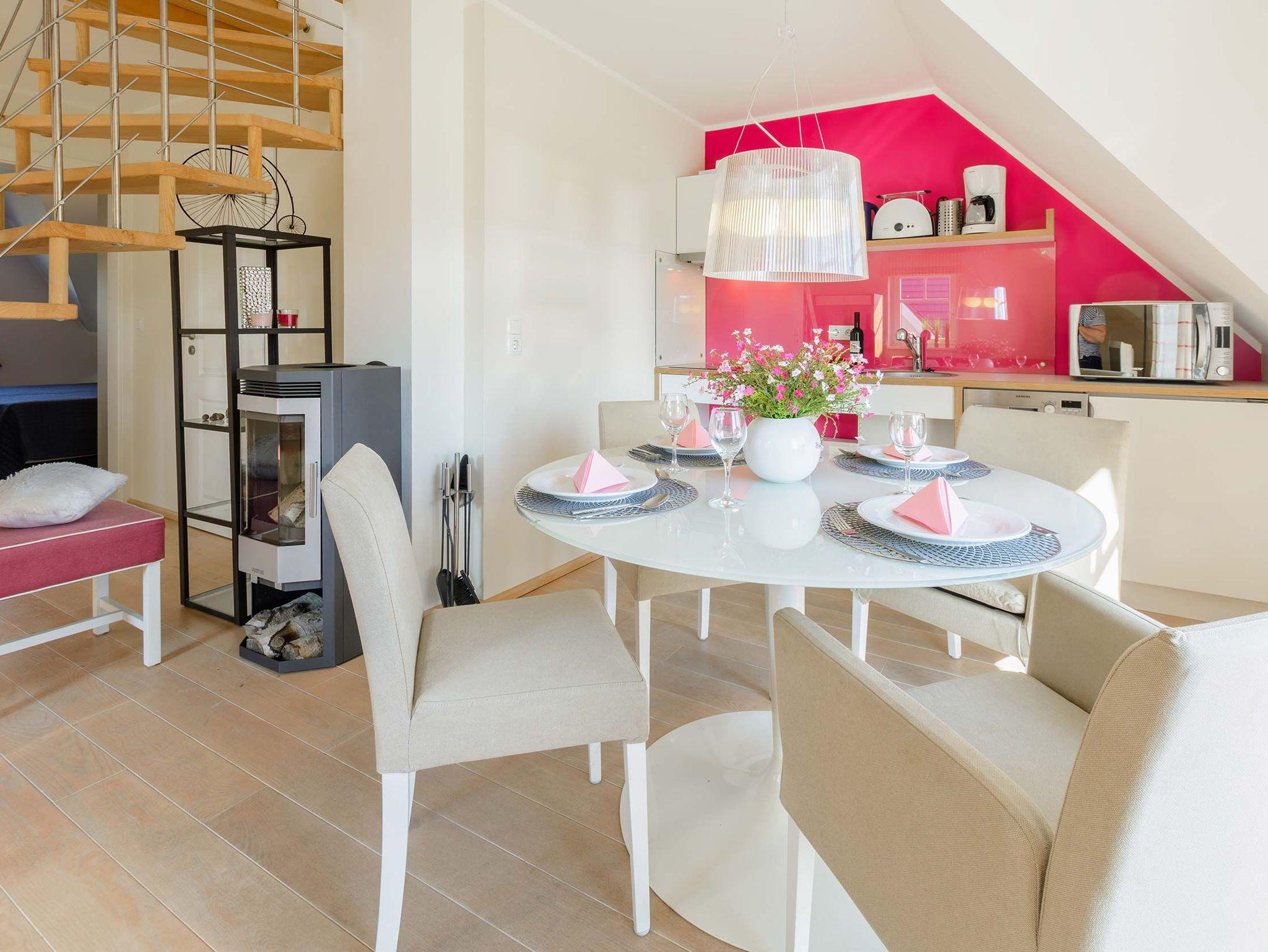 Das 4-Zimmer-Apartment für bis zu 5 Personen ist hell und sehr freundlich mit modernen Möbeln ausgestattet.