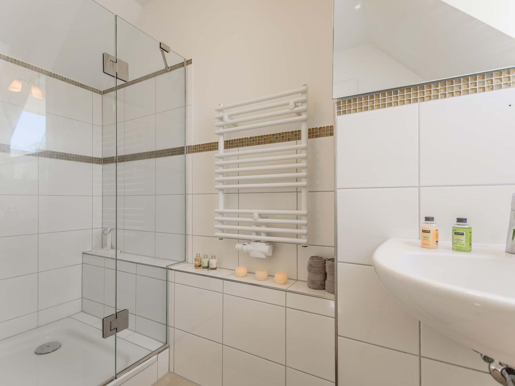 Auf dieser Ebene, im Obergeschoss, befinden sich zwei separate Schlafzimmer. Ein Schlafzimmer ist mit einem Doppelbett und zusätzlichen Fernseher und das andere mit einem Tandembett und einen weiteren Fernseher ausgestattet. Das dritte Schlafzimmer mit Doppelbett befindet sich im Dachgeschoss. Ein Wannenbad und das Duschbad im Spitzboden sind grosszügig ausgestattet.
