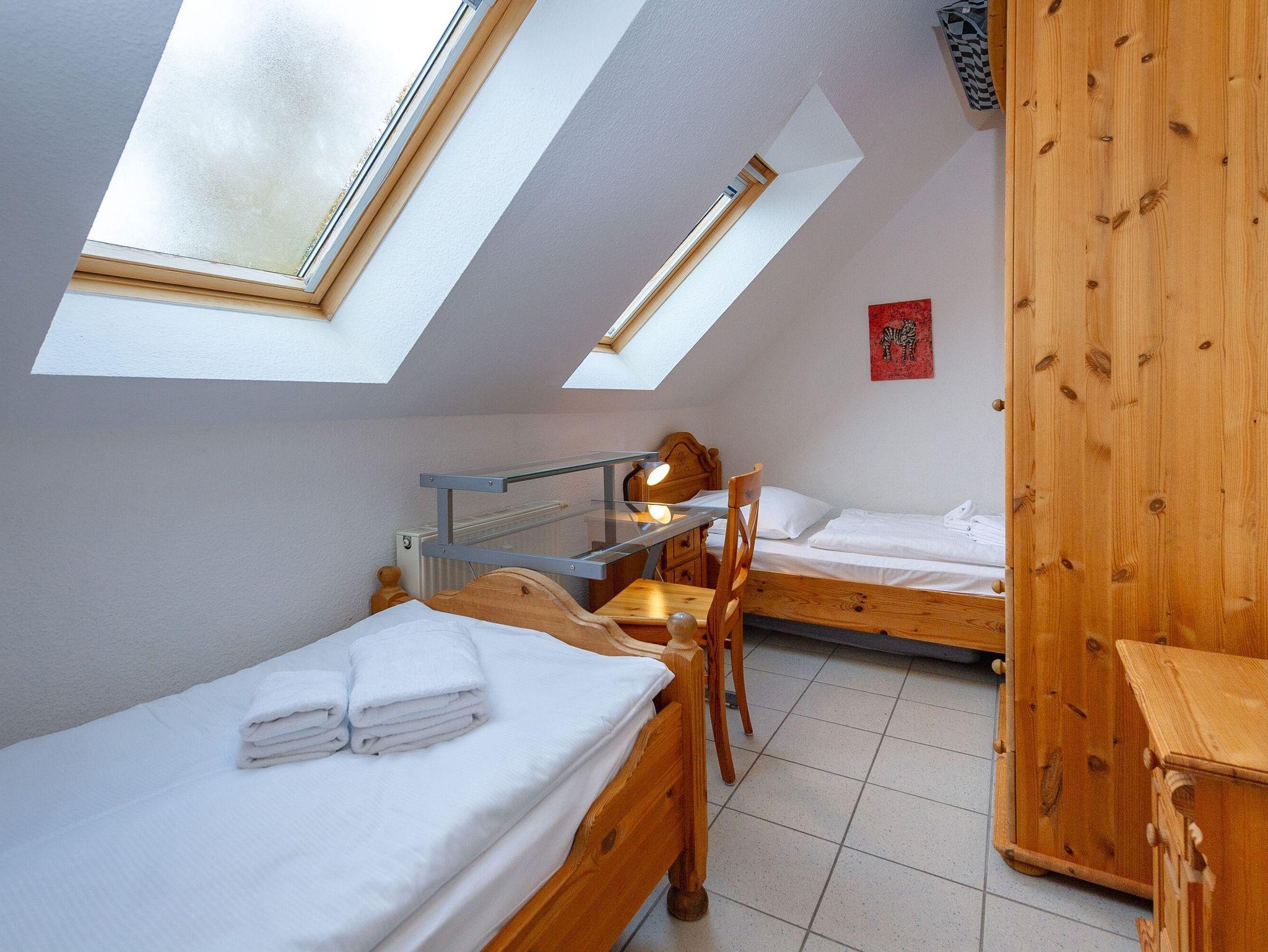 Im größeren der beiden Schlafzimmer finden Sie ein komfortables Doppelbett (1,80 x 2,00 m), das kleinere Schlafzimmer verfügt über zwei Einzelbetten. Die Fenster lassen sich natürlich verdunkeln, damit auch alle Langschläfer voll auf ihre Kosten kommen.