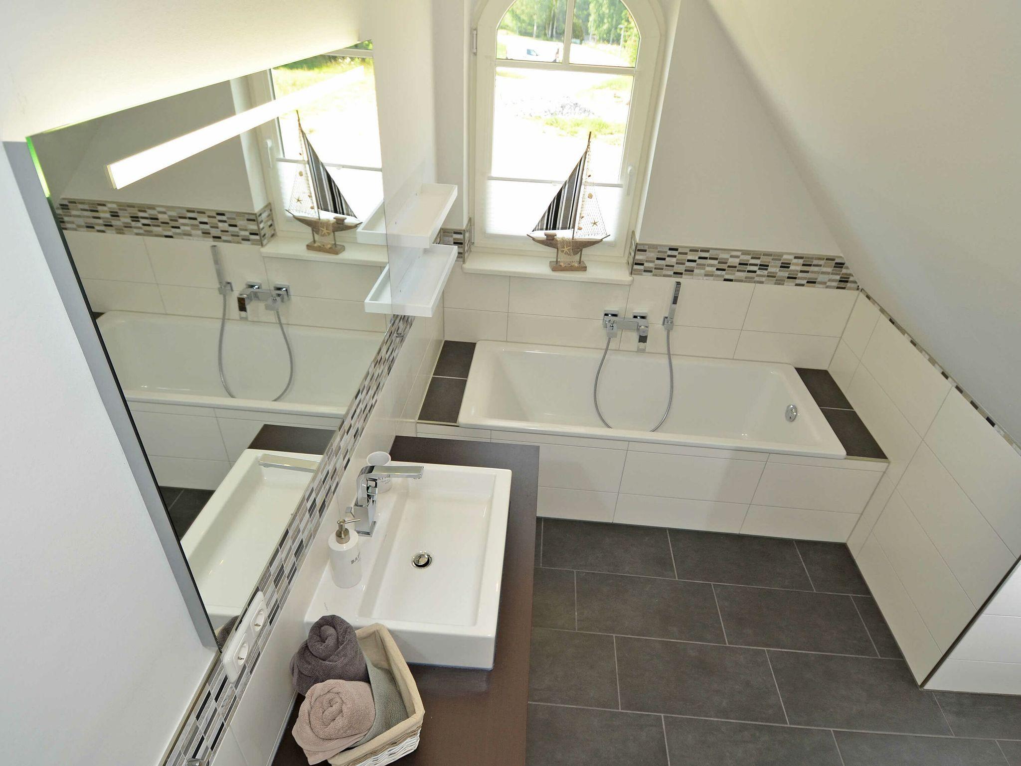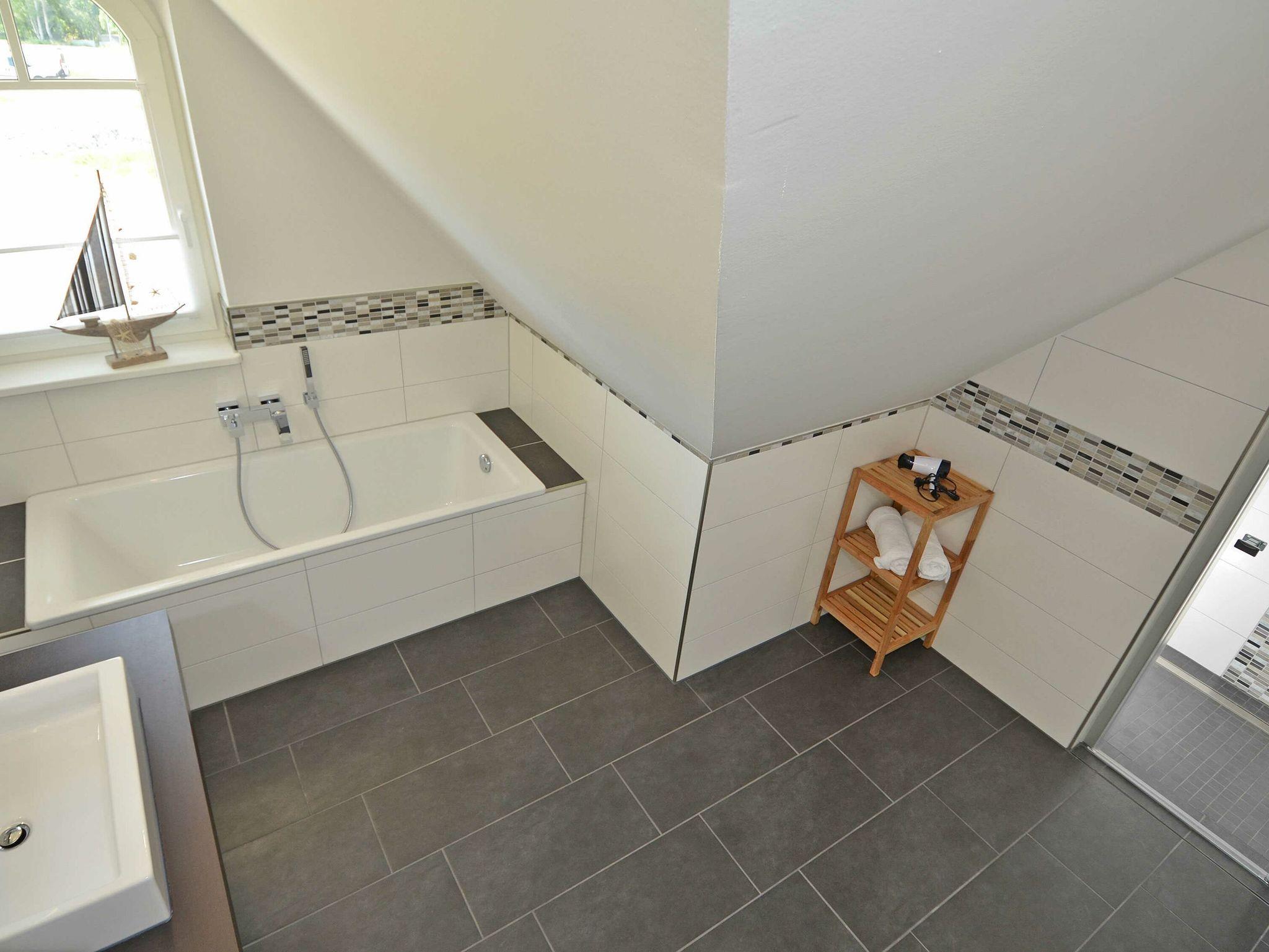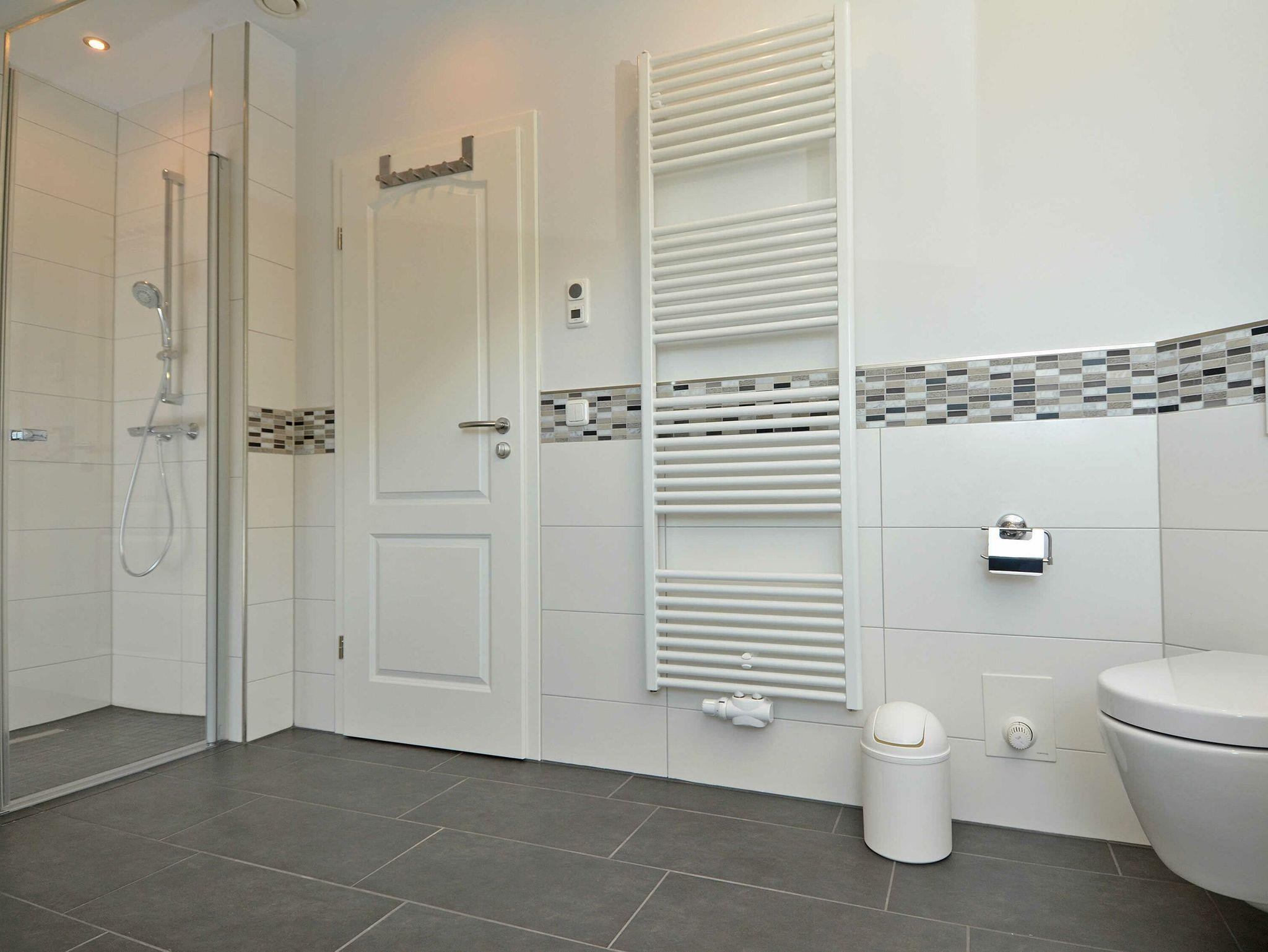 Auf dieser Ebene befindet sich auch das zweite Badezimmer mit Dusche/WC, Handtuchtrockner und Fön. Das Bad verfügt zusätzlich über eine Badewanne, damit auch im Urlaub das Wellnessgefühl nicht zu kurz kommt.