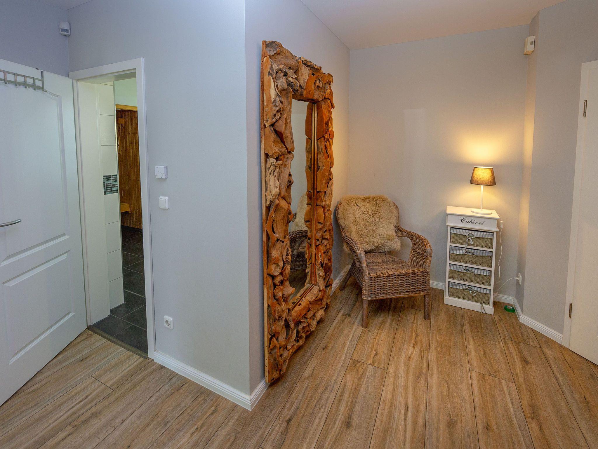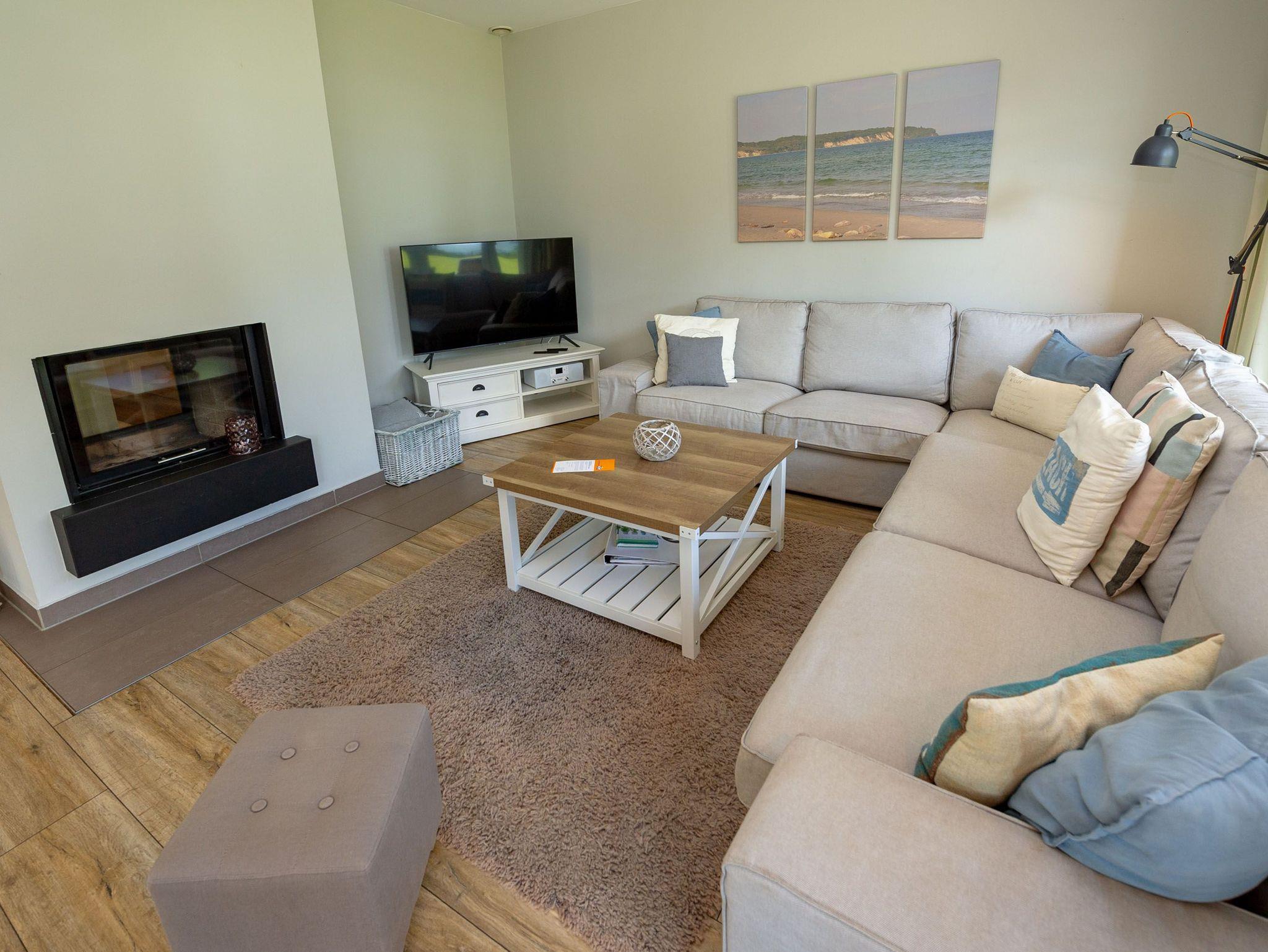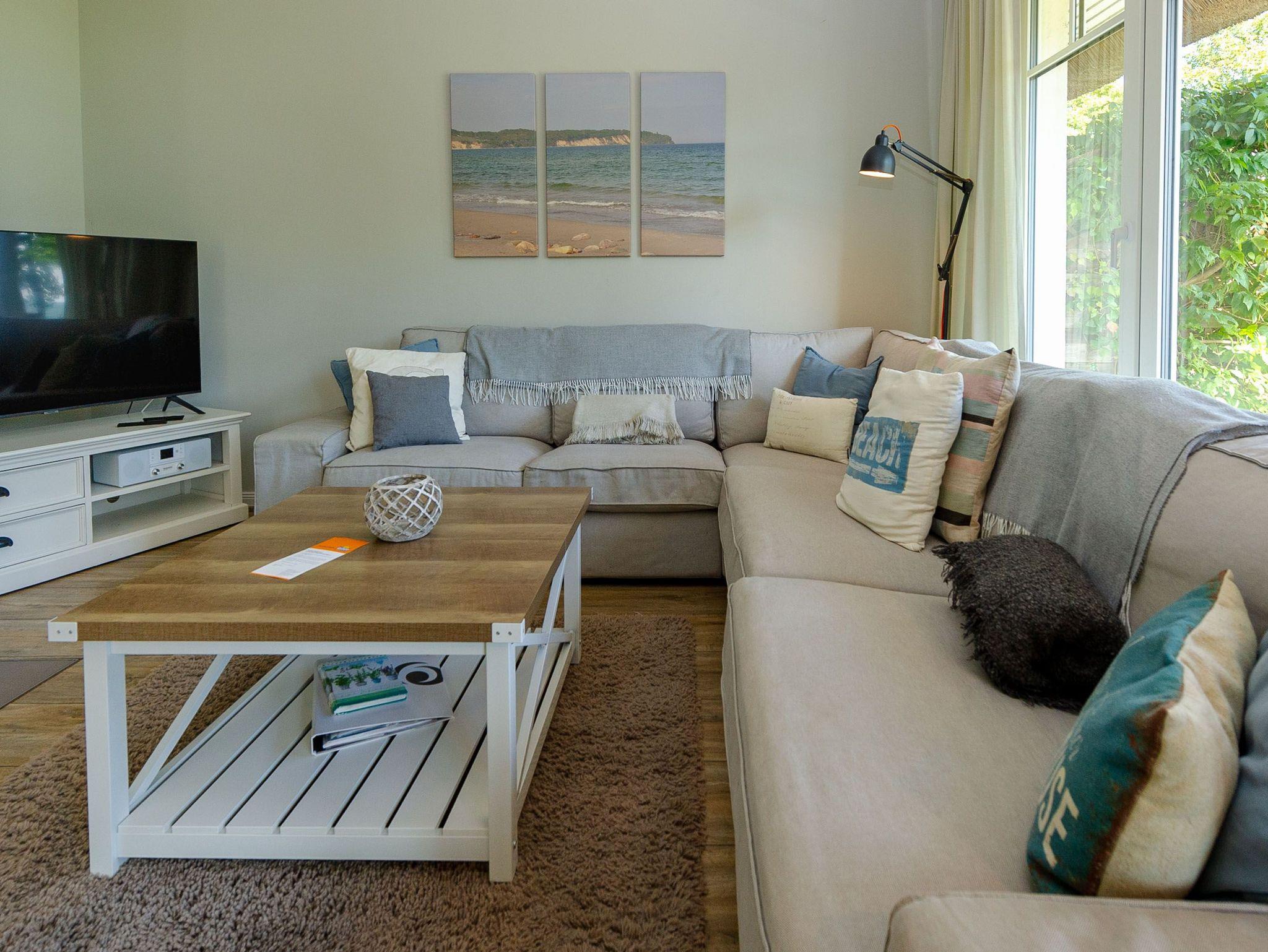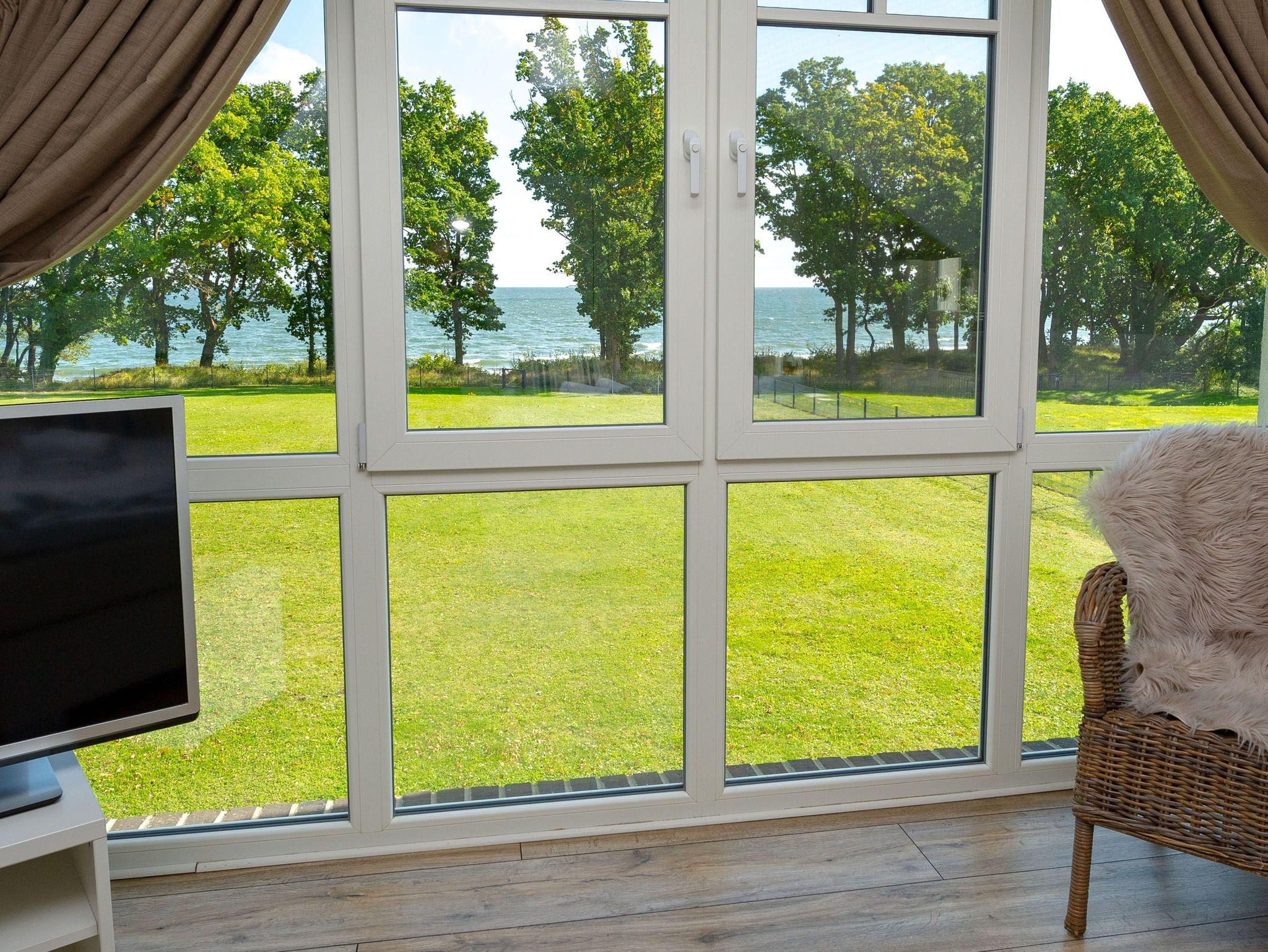 Das großzügige Wohnzimmer mit direktem Meerblick befindet sich jeweils im Erdgeschoss und ist komfortabel ausgestattet mit einer gemütlichen Sitzecke, einem Flachbild-TV mit DVD-Player, einer Stereoanlage mit CD-Player/Radio/I-pod-Dockingstation. Der zweiseitig verglaste Kamin verspricht kuschelige Stunden vor dem prasselnden Kaminfeuer. Die großen Glasfronten durchfluten den Raum mit Licht und eröffnen den ungehinderten Blick auf die endlose Weite der Ostsee.
