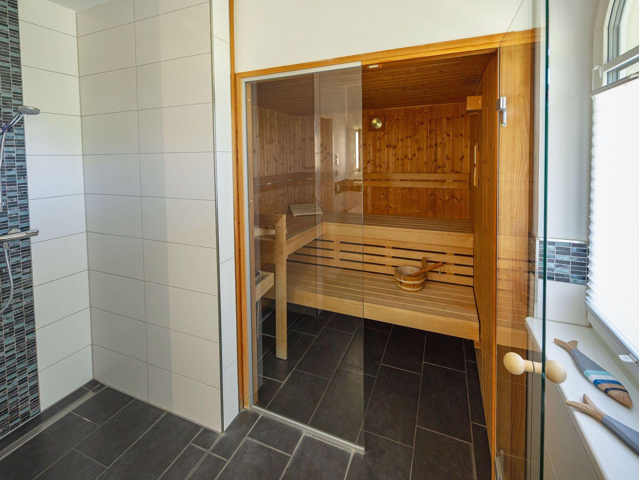 Im Erdgeschoss befinden sich ebenfalls je ein modernes Duschbad mit einer eigenen Sauna sowie der Hauswirtschaftsraum mit einer Waschmaschine, einem Trockner und Bügelutensilien. Im gesamten Erdgeschoss sorgt eine Fußbodenheizung für angenehme Raumtemperaturen.