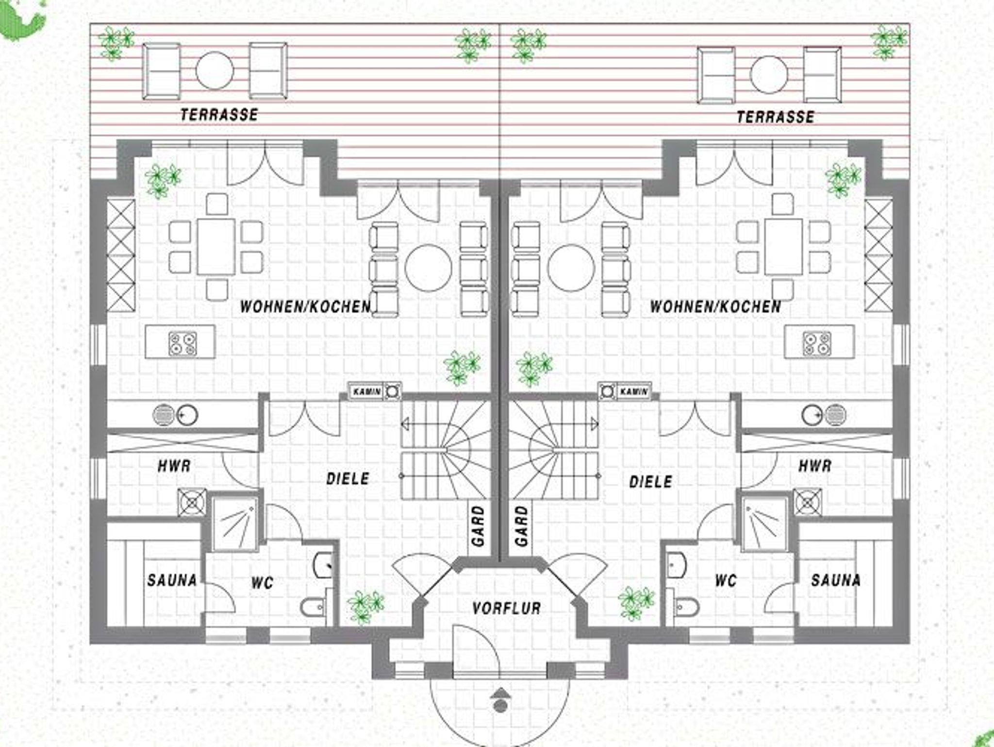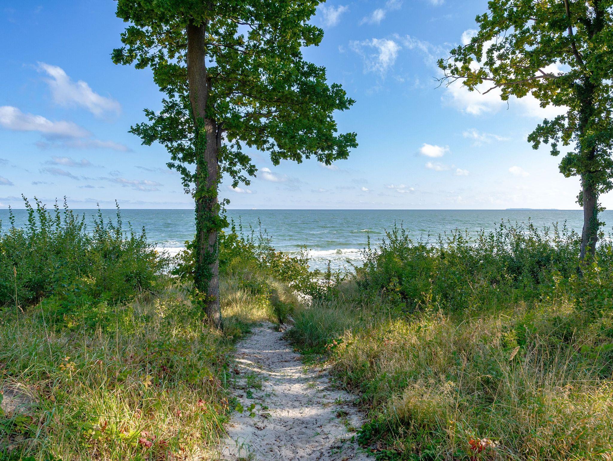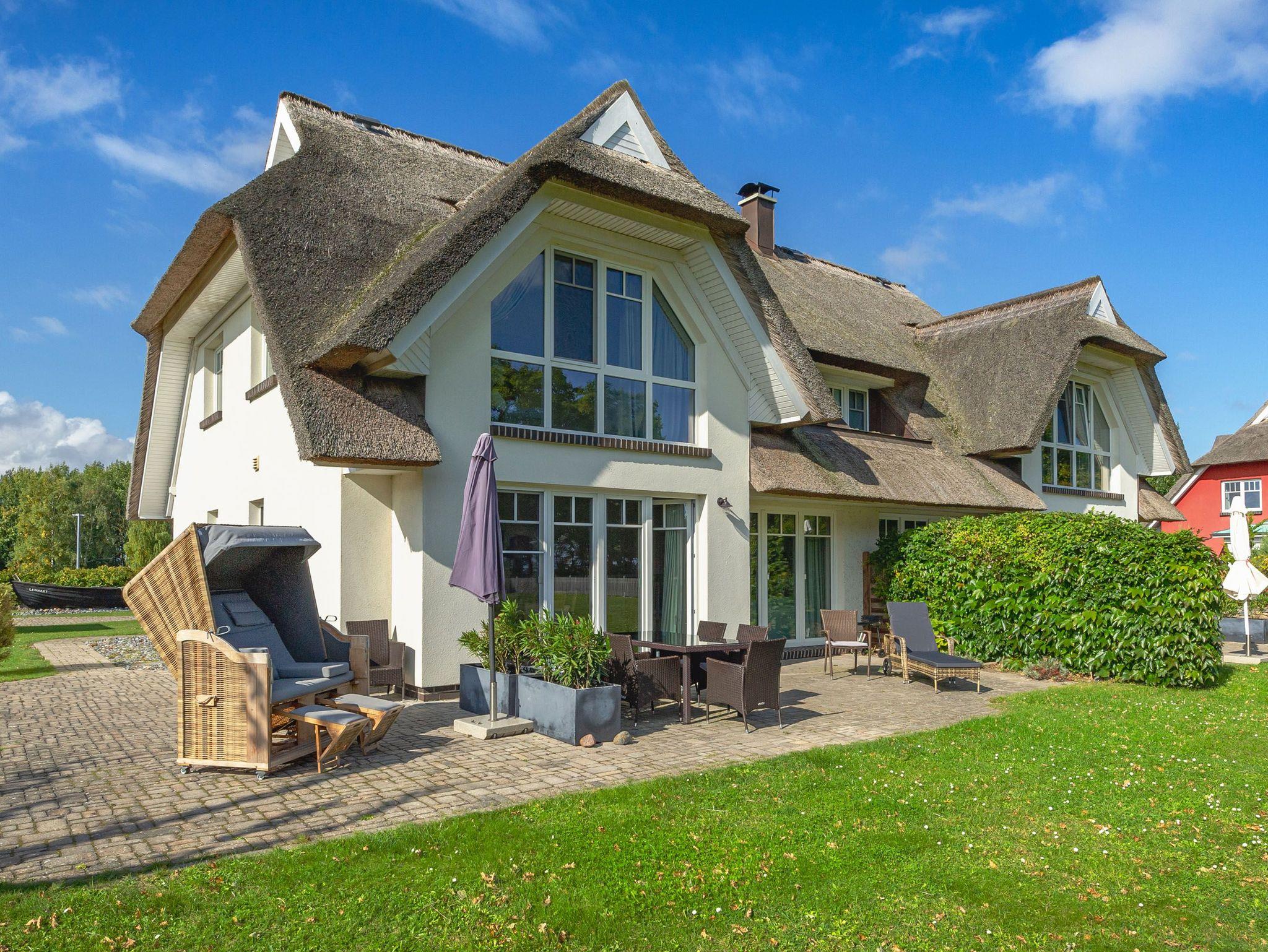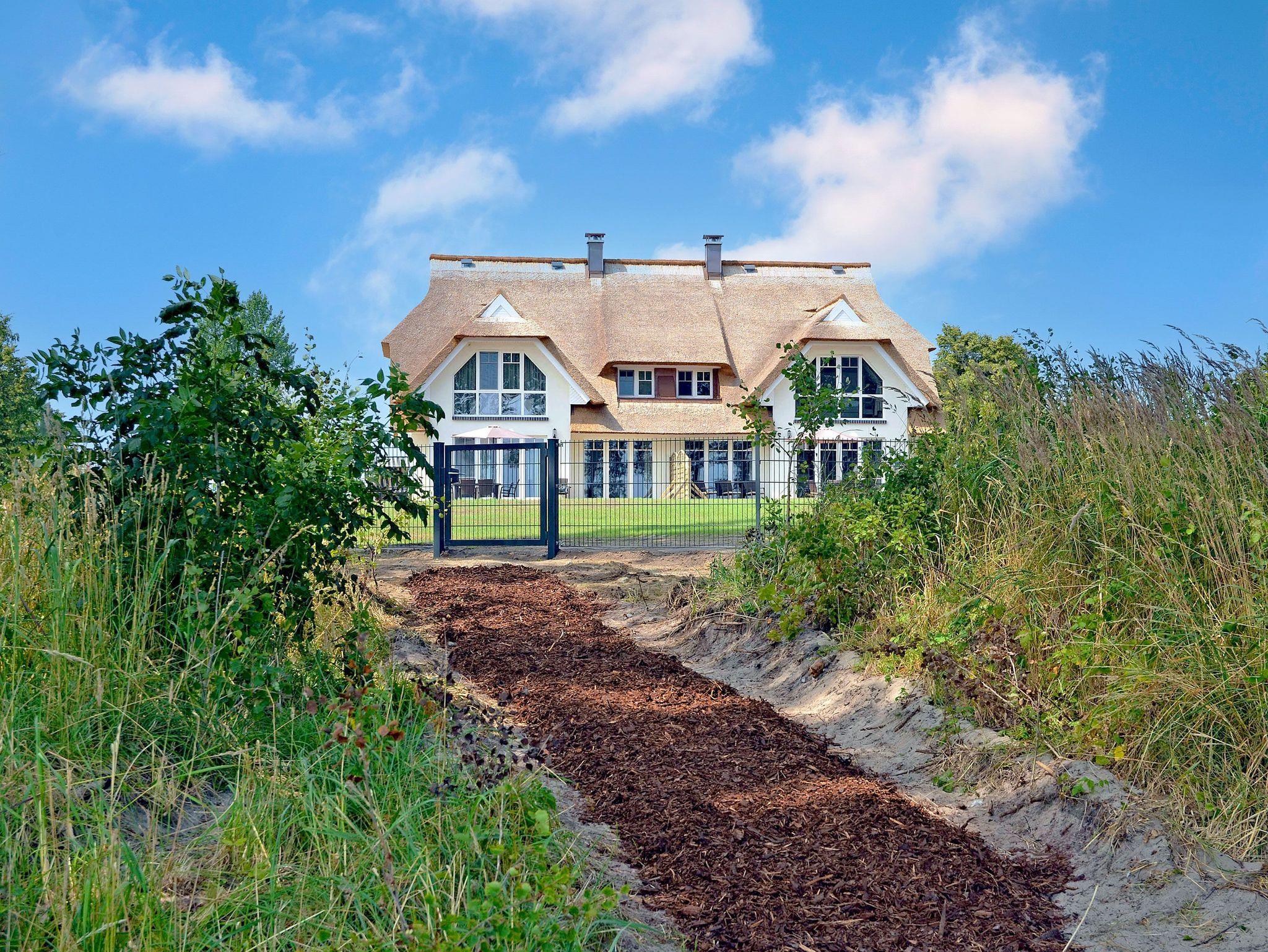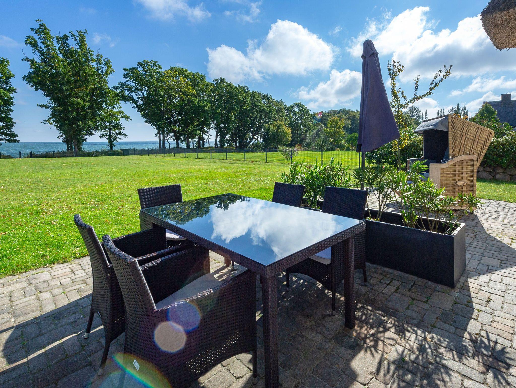 Jede Haushälfte hat eine eigene, großzügige Terrasse mit traumhaftem Meerblick und Meeresrauschen. Komfortable Terrassenmöbel, Sonnenliegen und ein Strandkorb vervollständigen den hervorragenden Gesamteindruck. Daran schließt sich der große, gemeinschaftlich nutzbare Garten mit direktem Strandzugang an! Die Balkon- bzw. Terrassenmöbel stehen saisonal - in der Regel von Mai bis Ende September - zur Verfügung.