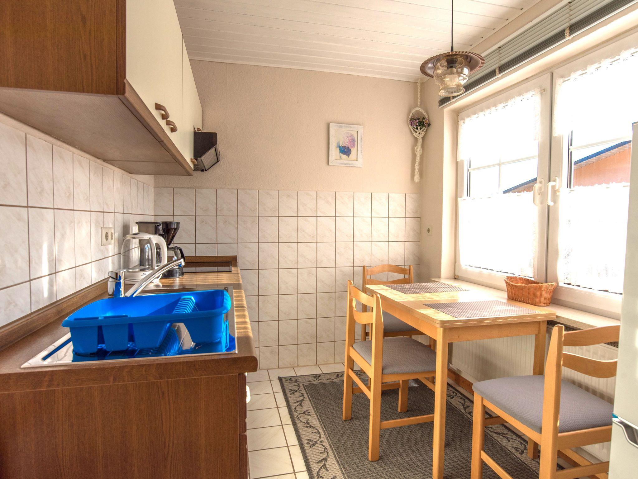 2 Schlafräume mit jeweils einem Doppelbett (1,80 x 2,00) , 1 Wohnzimmer, Dusche/WC, Küche mit Kühlschrank, Herd mit Ceranfeld und Backofen, Kaffeemaschine, Toaster, Mikrowelle