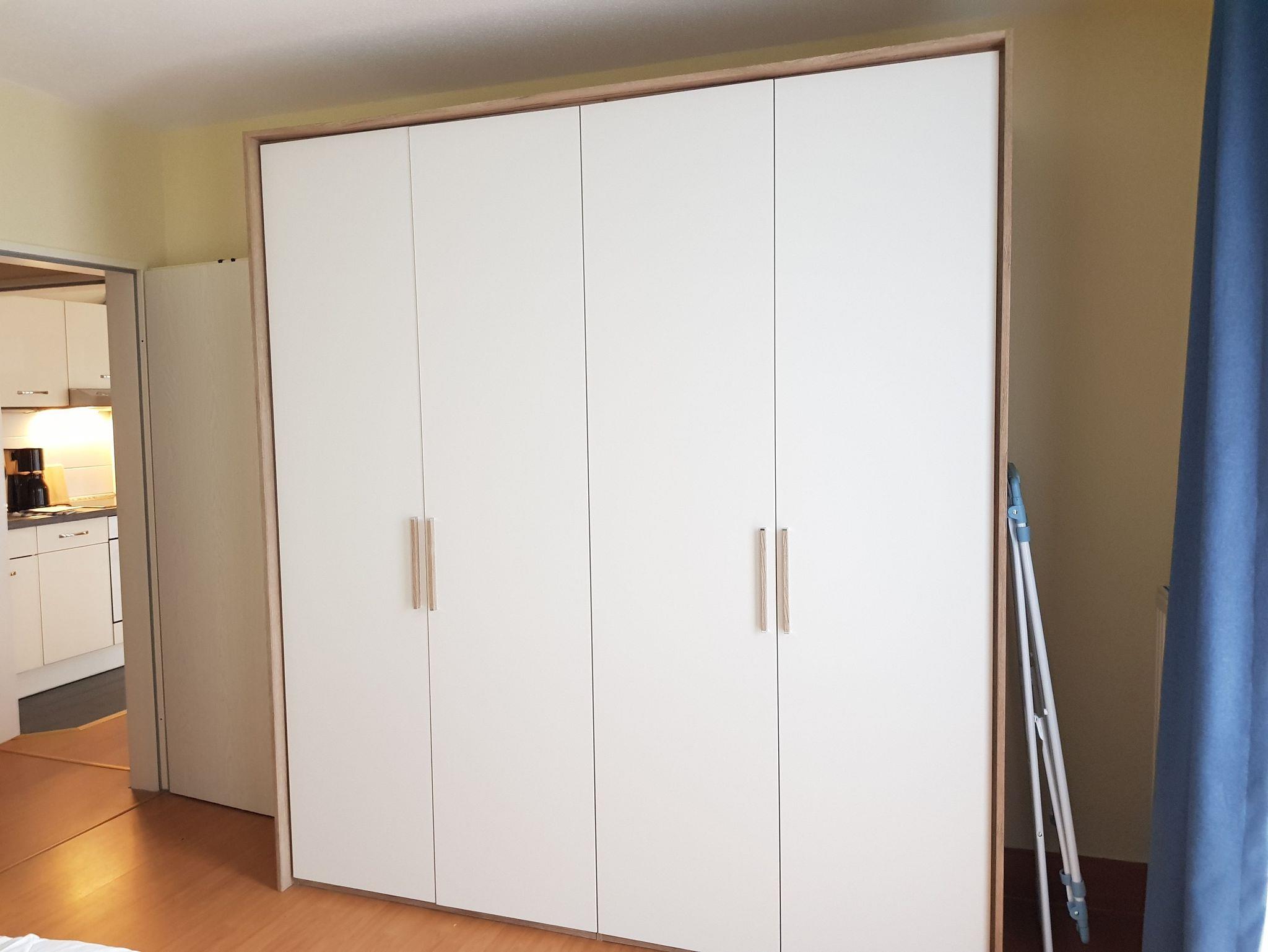 • Schlafzimmer mit Doppelbett und Kleiderschrank.