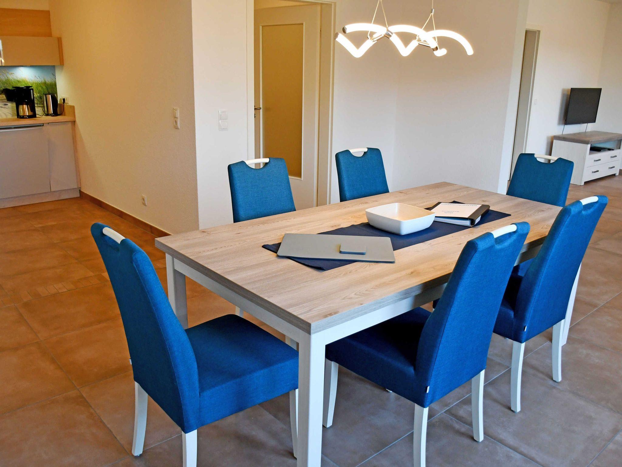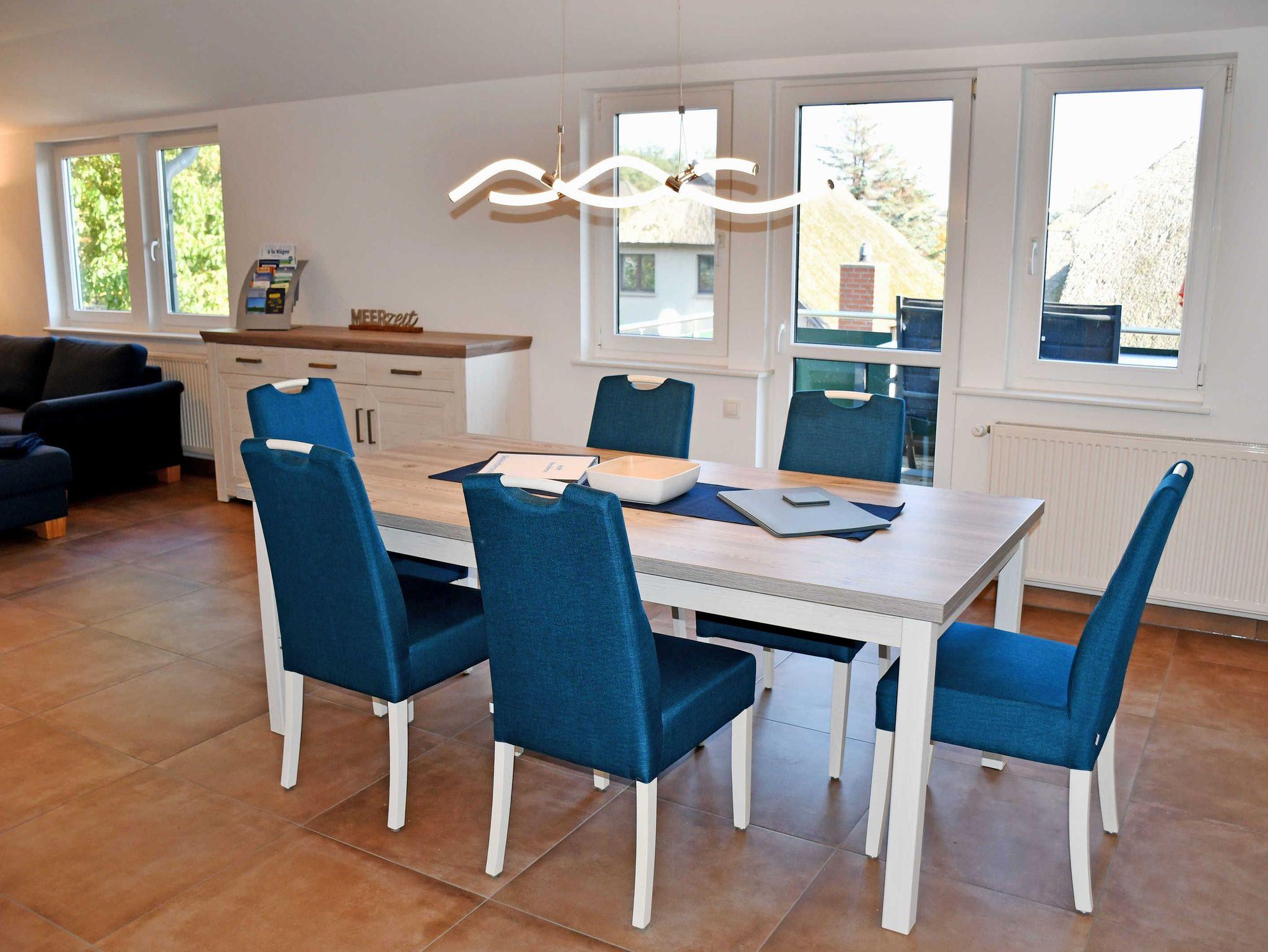 Die großzügige Ferienwohnung Boddentraum bietet auf 86 qm Platz für bis zu 3 Erwachsene und ein Kleinkind bis 3 Jahre im Kinderreisebett. Die in 2021 hochwertig modernisierte Wohnung liegt im 1. Obergeschoss der Höft Residenz.