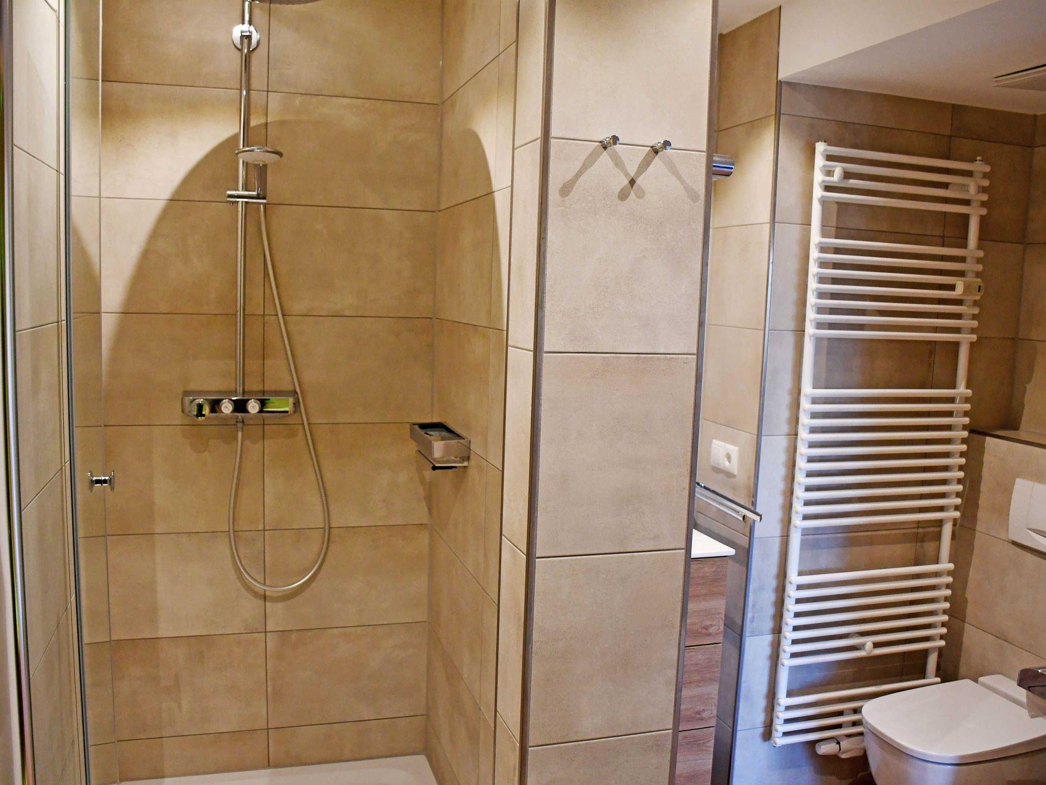Das hochwertig renovierte Bad mit Regenwalddusche und als absolutem Highlight einer Luxus-Infrarotkabine von Physiotherm, bietet allen Komfort und erfüllt alle Wellnesswünsche, insbesondere in der kalten Jahreszeit. Vorher können Sie kostenlos den Fitnessraum nutzen, um schon einmal vorab so richtig ins Schwitzen zu kommen.