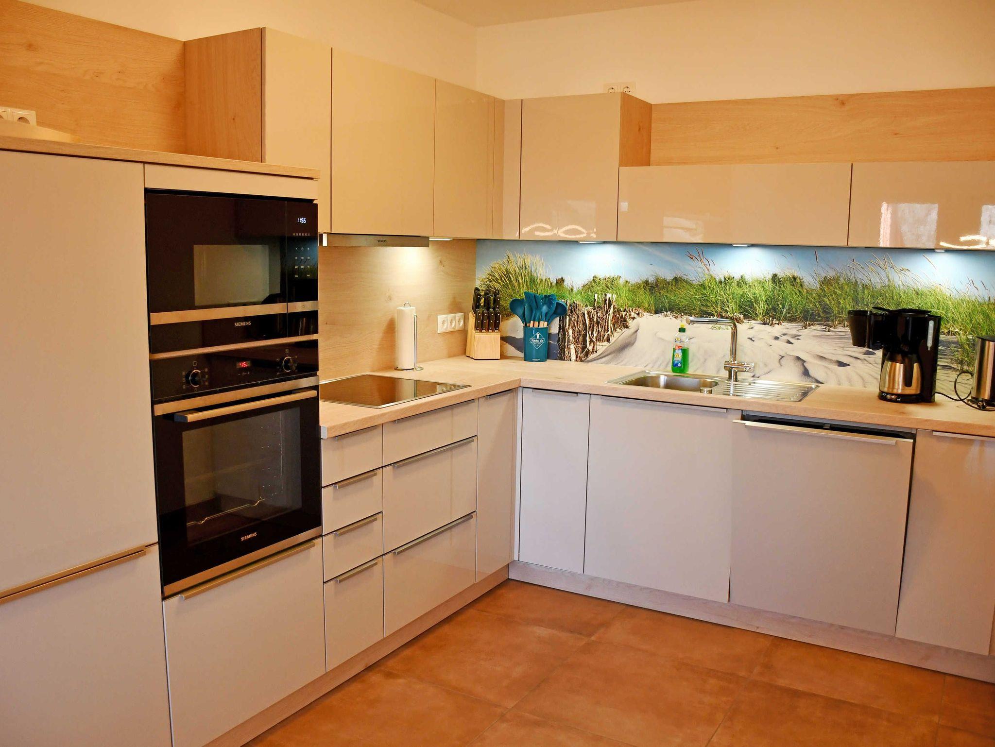 Im kombinierten Wohn- und Esszimmer wartet die gemütliche Sofalandschaft mit Couchtisch und ein modernes Flachbild-TV-Gerät auf Sie zum Relaxen. Hier steht auch ein großer Esstisch mit sechs Stühlen. Kochfreunde werden in der neuen, hellen und modernen offenen Küche mit hochwertigen Markengeräten wie Backofen, Cerankochfeld mit Abzugshaube, Mikrowelle, Kühlschrank mit Gefrierfach und Geschirrspüler voll auf Ihre Kosten kommen.