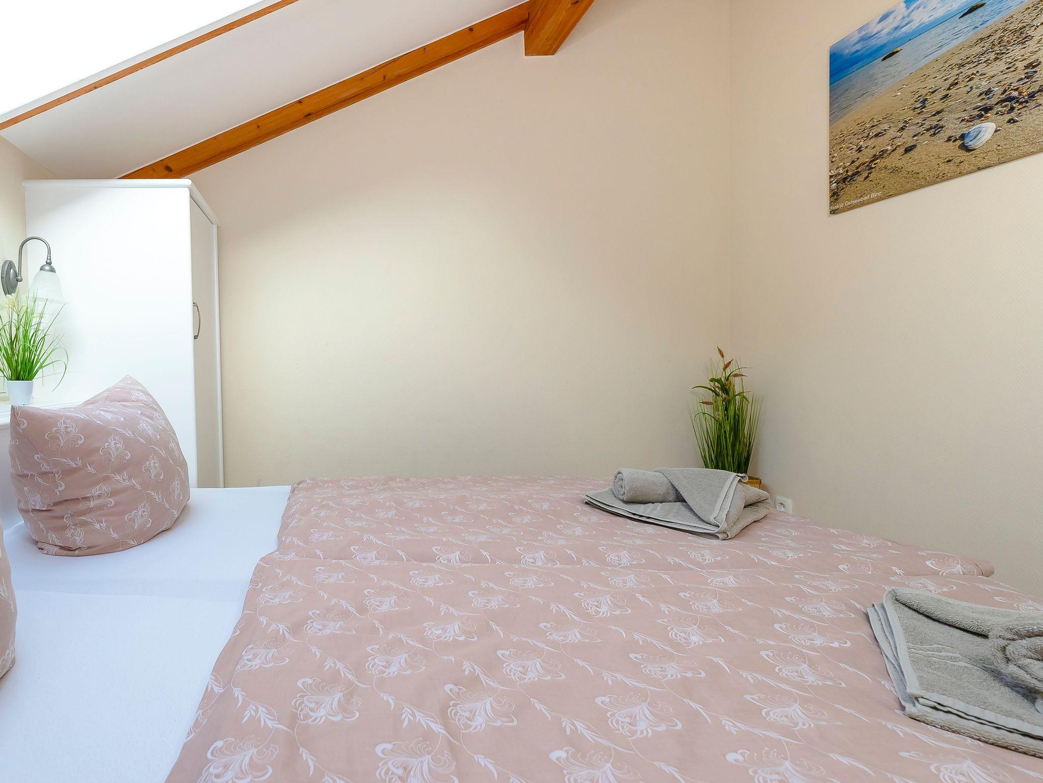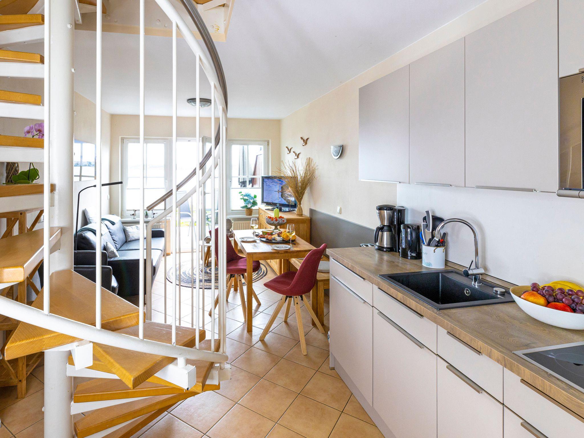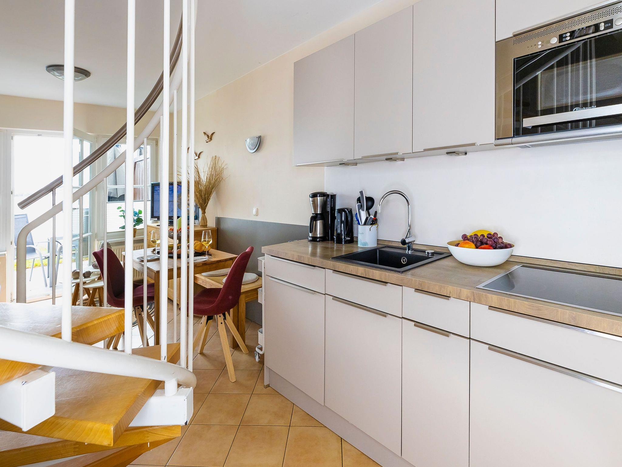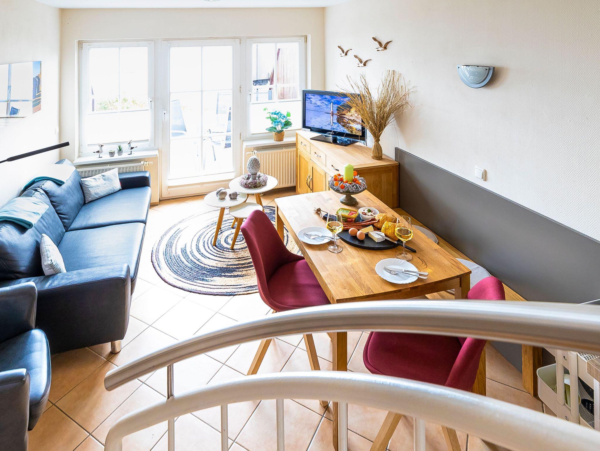 Die modern und liebevoll eingerichtete Wohnung 2 im Haus Seeblick im Maisonette-Stil verfügt über eine sonnige Terrasse mit offenem Seeblick, zwei separate Schlafbereichen im Obergeschoss, sowie einem hellen Wohnbereich mit offener Küchenzeile. Sie umfasst ca. 42qm. Genießen Sie einen unverwechselbaren Seeblick ? direkt beim Aufstehen! Der komfortable Wohnbereich mit Couch + Couchtisch, einen Sessel, einer Stehlampe, eine Kommode mit Flachbild-TV sowie ein Regal bietet Ihnen einen gemütlichen Ort zum Ausklingen der erlebnisreichen Tage auf der Halbinsel Mönchgut. Von hier aus gelangen Sie auf die sonnige und bestuhlte Terrasse (Süden) mit Sonnenschirm und einem einzigartigen Seeblick. Angrenzend befindet sich eine offene und voll ausgestattete Küchenzeile mit Spülmaschine, Kühlschrank mit Eisfach, Dunstabzugshaube, Wasserkocher, Kaffeemaschine, Nespresso Maschine, Toaster, Induktionsfeld und Mikrowelle und ein Essplatz. Im Obergeschoss befinden sich die beiden Schlafräume, die jeweils mit einem komfortablen Doppelbett (1,80m x 2,00m) und Kleiderschrank ausgestattet sind. Auf der unteren Ebene befindet sich das freundliche Tageslicht-Bad mit einer ebenerdigen Dusche, ein WC, ein Fön sowie ein Waschplatz mit dazugehörigem Spiegel. Für unsere kleinen Gäste steht ein Hochstuhl sowie ein Kinderreisebett (ohne Bett Inlett/inkl. Matratze) zur Verfügung. Auch ein 4-Beiner ist mit seinem eigenen Schlafplatz gegen eine Gebühr ein gern gesehener Gast. Eine Fahrrad-Unterstellmöglichkeit steht Ihnen und allen Gästen des Hauses zur gemeinschaftlichen Nutzung kostenfrei zur Verfügung. Ihr PKW-Stellplatz befindet sich knapp 100m vom Haus entfernt und ist für Sie inklusive. Die Erstausstattung eines Wäschepaketes (komplette Bettwäsche, 1 Duschhandtuch, 2 kleine Handtücher) können Sie bis 14 Tage vor Anreise gegen einen Aufpreis dazu buchen oder durch eigene ergänzen. Ab 2 gebuchten Paketen erhalten Sie einmalig 1 Geschirrhandtuch und 1 Duschvorleger hinzu.