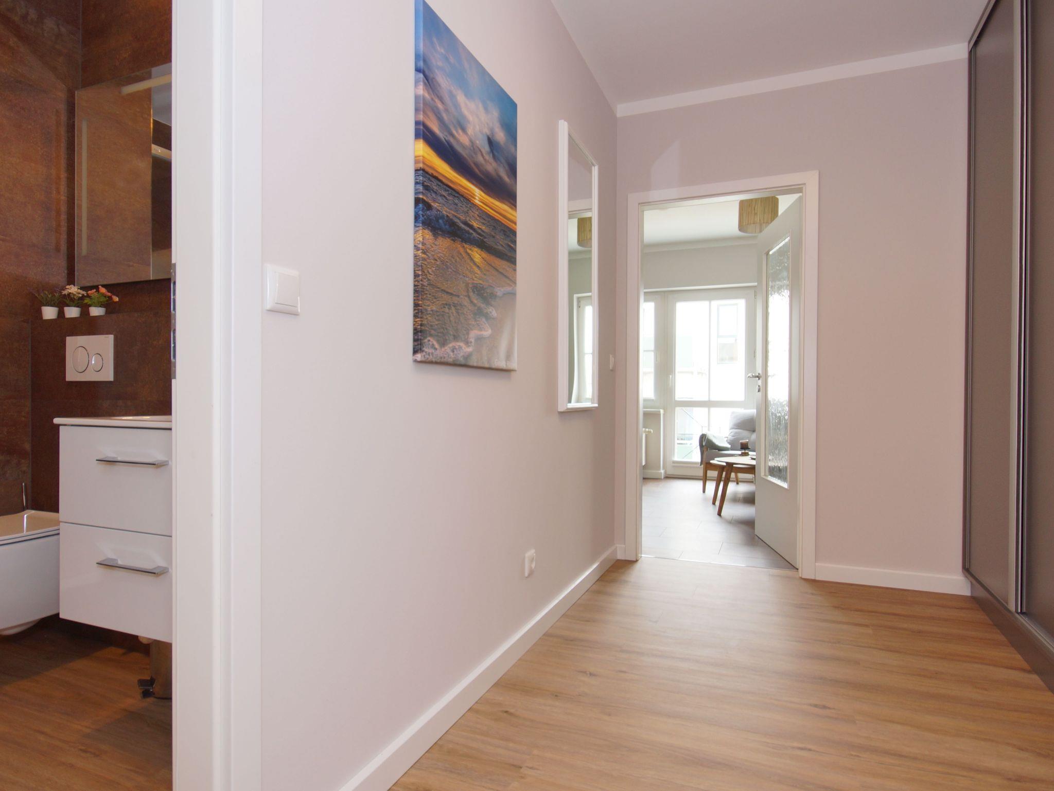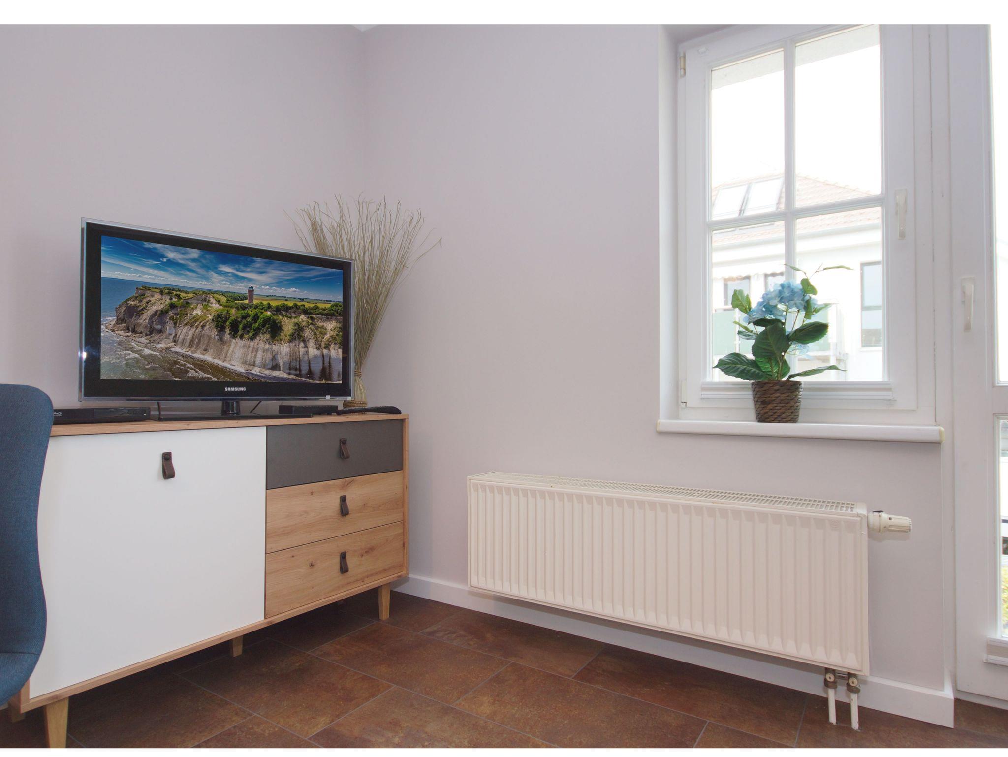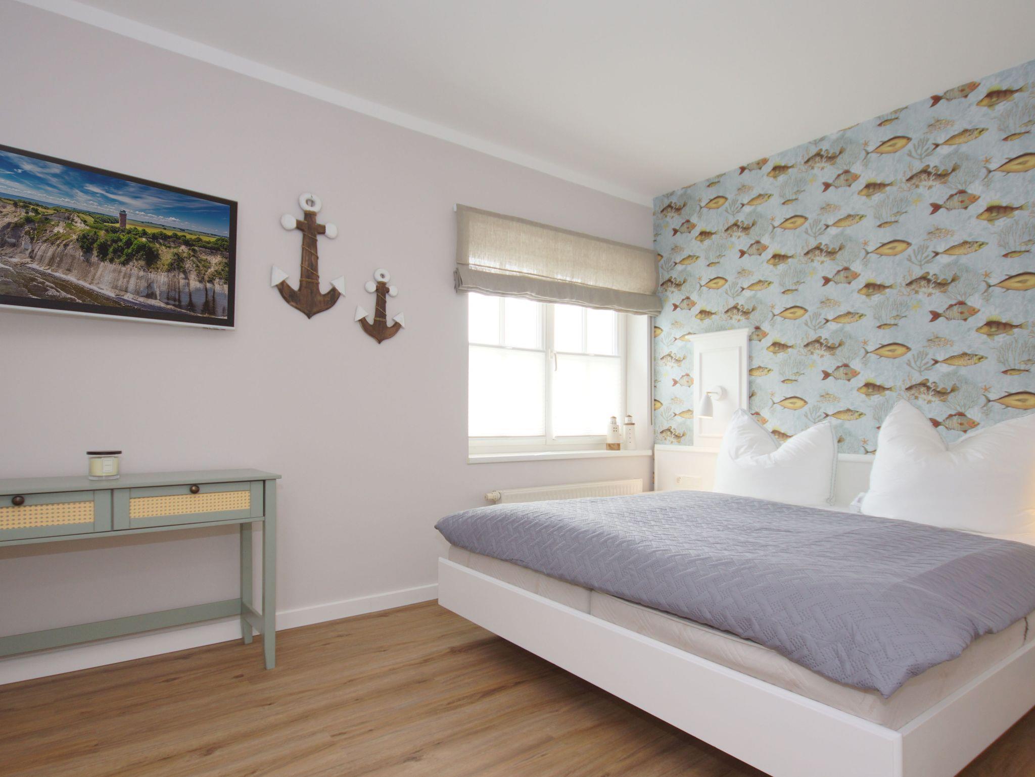 Die modern und liebevoll eingerichtete Wohnung 8 im Haus Seeblick verfügt über einen separaten Schlafbereich, einen hellen Wohnbereich mit offener Küchenzeile, sowie ein Badezimmer mit Dusche und WC. Sie umfasst ca. 48qm. Der komfortable Wohnbereich mit einer Couch (Aufbettungsmöglichkeit 1,40m x 1,90m) + Couchtisch, einen Sessel, eine Stehlampe sowie eine Kommode mit Flachbild-TV bietet Ihnen einen gemütlichen Ort zum Ausklingen der erlebnisreichen Tage auf der Halbinsel Mönchgut. Angrenzend befindet sich eine offene, voll ausgestattete Küchenzeile mit Spülmaschine, Kühlschrank mit Eisfach, Dunstabzugshaube, Wasserkocher, Kaffeemaschine, Nespresso Maschine, Toaster, Induktionsfeld, Mikrowelle und ein Essplatz. Direkt nebenan befindet sich das gemütliche Schlafzimmer, das mit einem Kleiderschrank und einem Doppelbett (1,80m x 2,00m) ausgestattet ist. Ein weiterer Flachbild-TV rundet den Raum ab. Das innenliegende und freundliche Badezimmer bietet Ihnen eine Dusche, ein WC, ein Fön, ein Kosmetikspiegel und ein Waschplatz mit dazugehörigem Spiegel. Für unsere kleinen Gäste steht ein Hochstuhl sowie ein Kinderreisebett (ohne Bett Inlett/inkl. Matratze) zur Verfügung. Auch ein 4-Beiner ist mit seinem eigenen Schlafplatz gegen eine Gebühr ein gern gesehener Gast. Ein eigener Strandkorb (01.April - 31.Oktober) steht zum Entspannen im Freien direkt am Bodden zur Verfügung. Eine Fahrrad-Unterstellmöglichkeit steht Ihnen und allen Gästen des Hauses zur gemeinschaftlichen Nutzung kostenfrei zur Verfügung. Ihr PKW-Stellplatz befindet sich knapp 100m vom Haus entfernt und ist für Sie inklusive. Die Erstausstattung eines Wäschepaketes (komplette Bettwäsche, 1 Duschhandtuch, 2 kleine Handtücher) können Sie bis 14 Tage vor Anreise gegen einen Aufpreis dazu buchen oder durch eigene ergänzen. Ab 2 gebuchten Paketen erhalten Sie einmalig 1 Geschirrhandtuch und 1 Duschvorleger hinzu.