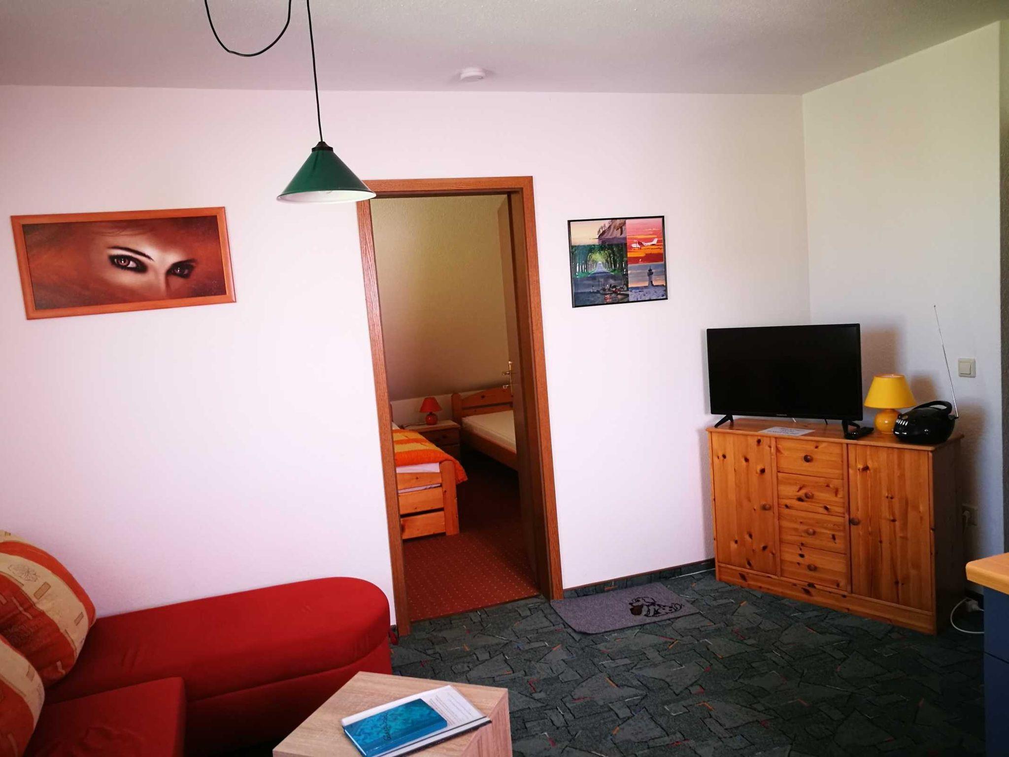Unsere Ferienwohnungen befinden sich im Obergeschoß unseres Hauses. Fewo De Lütte (klein) bietet Platz für bis zu 3 Personen. Sie besteht aus einem gemütlich eingerichteten Wohnzimmer mit der Sitzgruppe und dem Essbereich sowie dem Schlafzimmer mit Doppelbett und einem Einzelbett, Bad mit DU/WC. Eine Terrasse mit der Möglichkeit zum Grillen steht Ihnen auch zur Verfügung.