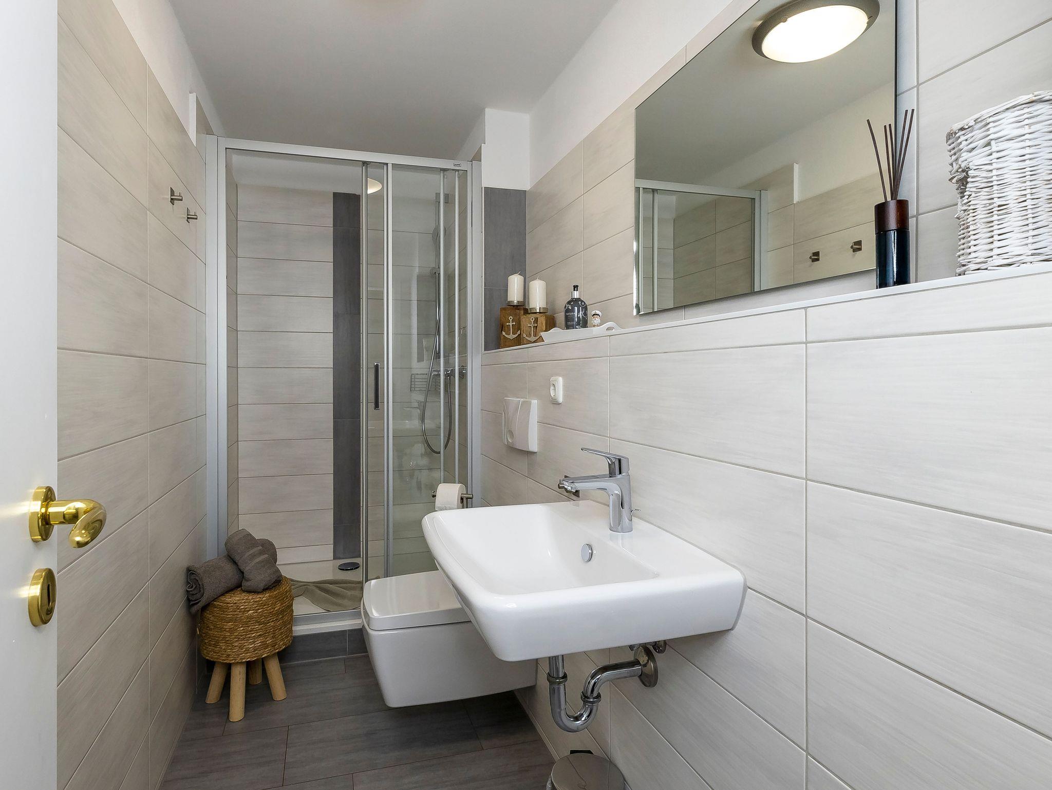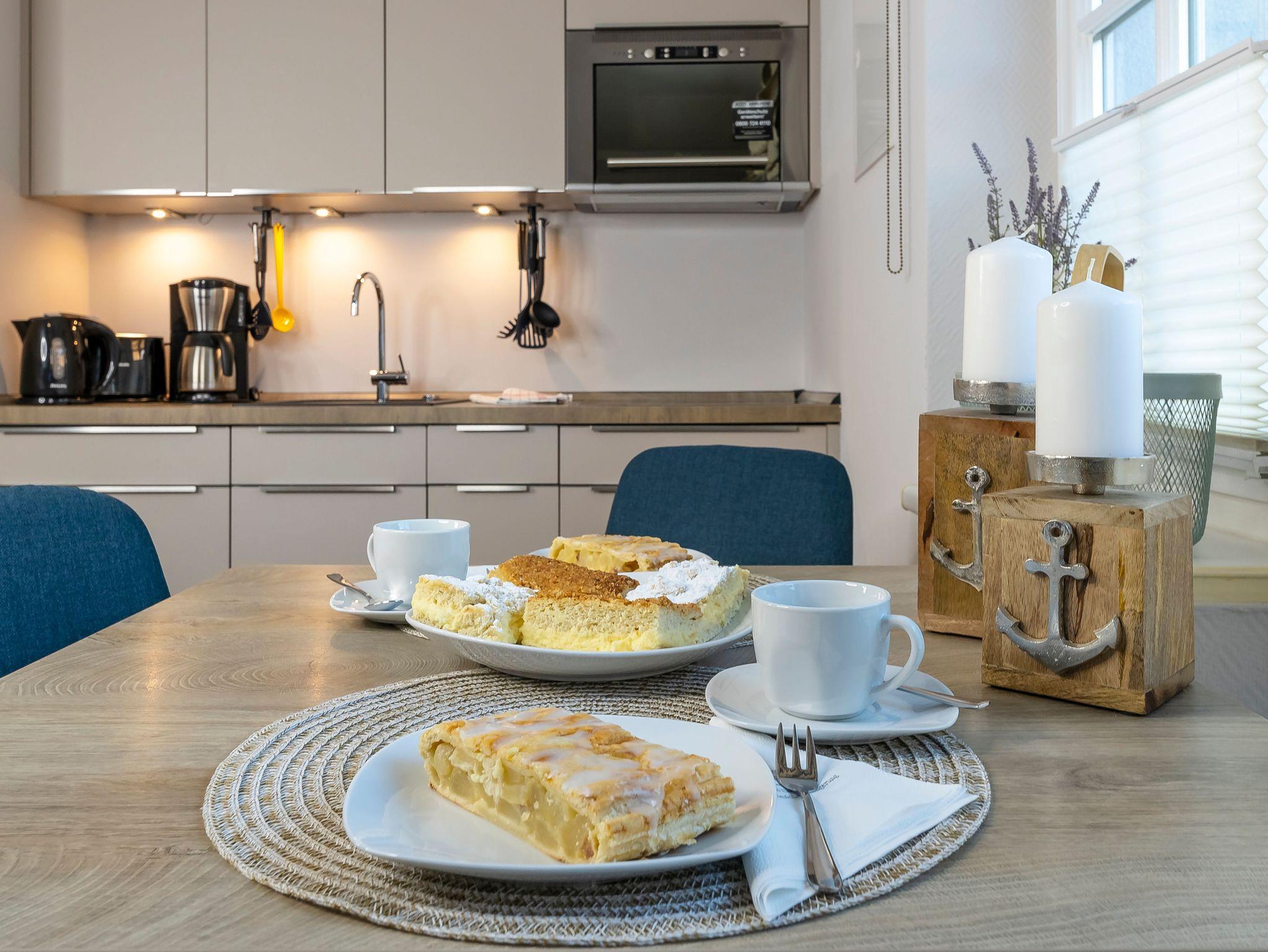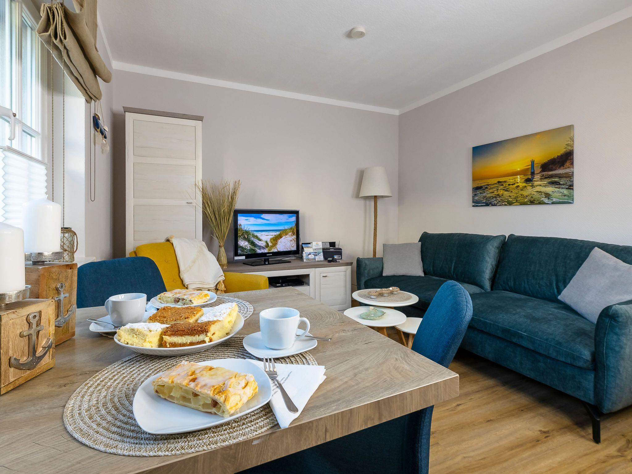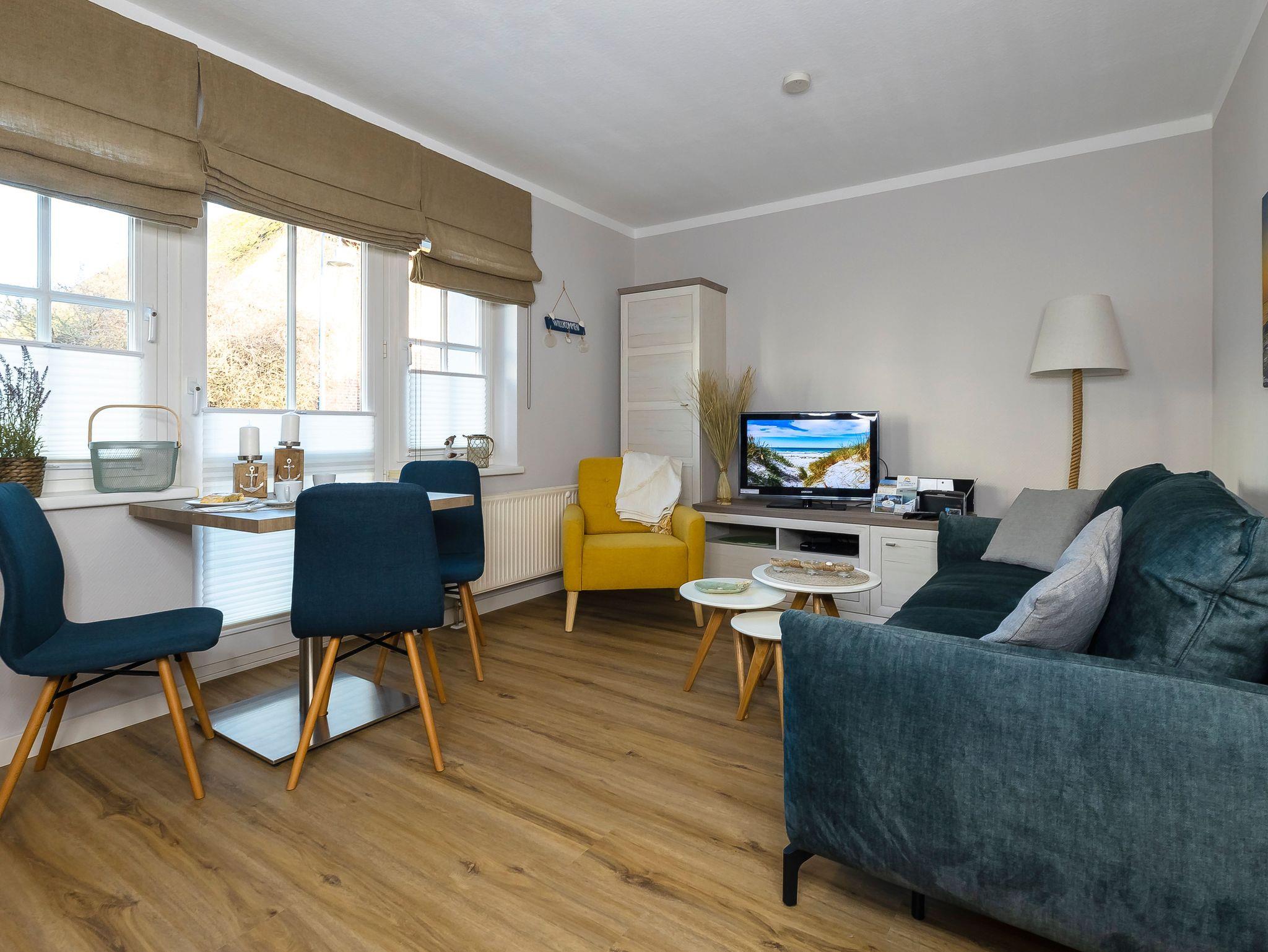 Die modern und liebevoll eingerichtete Wohnung 4 im Haus Seeblick verfügt über einen separaten Schlafbereich, einen hellen Wohnbereich mit offener Küchenzeile, sowie ein Badezimmer mit Dusche und WC. Sie umfasst ca. 33qm und bietet Ihnen Platz für max. 2 Erwachsene + 1 Kind bis 17 Jahre. Der komfortable Wohnbereich mit Schlafcouch (Aufbettungsmöglichkeit 1,40m x 1,90m) + Couchtisch, einem Sessel, einer Stehlampe sowie eine Kommode mit Flachbild-TV bietet einen gemütlichen Ort zum Ausklingen der erlebnisreichen Tage auf der Halbinsel Mönchgut. Angrenzend befindet sich eine offene, voll ausgestattete Küchenzeile mit Spülmaschine, Kühlschrank mit Eisfach, Dunstabzugshaube, Wasserkocher, Kaffeemaschine, Nespresso Maschine, Toaster, Induktionsfeld, Mikrowelle und ein Essplatz. Direkt nebenan befindet sich das geräumige Schlafzimmer mit Doppelbett (1,80m x 2,00m), Insektenschutzgitter und Kleiderschrank. Das freundliche und helle Badezimmer bietet Ihnen eine Dusche, ein WC, ein Fön, ein Kosmetikspiegel und ein Waschplatz mit dazugehörigem Spiegel. Für unsere kleinen Gäste steht ein Hochstuhl sowie ein Kinderreisebett (ohne Bett Inlett/inkl. Matratze) zur Verfügung. Auch ein 4-Beiner ist mit seinem eigenen Schlafplatz gegen eine Gebühr ein gern gesehener Gast. Ein eigener Strandkorb (01.April - 31.Oktober) steht zum Entspannen im Freien direkt am Bodden zur Verfügung. Eine Fahrrad-Unterstellmöglichkeit steht Ihnen und allen Gästen des Hauses zur gemeinschaftlichen Nutzung kostenfrei zur Verfügung. Ihr PKW-Stellplatz befindet sich knapp 100m vom Haus entfernt und ist für Sie inklusive. Die Erstausstattung eines Wäschepaketes (komplette Bettwäsche, 1 Duschhandtuch, 2 kleine Handtücher) können Sie bis 14 Tage vor Anreise gegen einen Aufpreis dazu buchen oder durch eigene ergänzen. Ab 2 gebuchten Paketen erhalten Sie einmalig 1 Geschirrhandtuch und 1 Duschvorleger hinzu.
