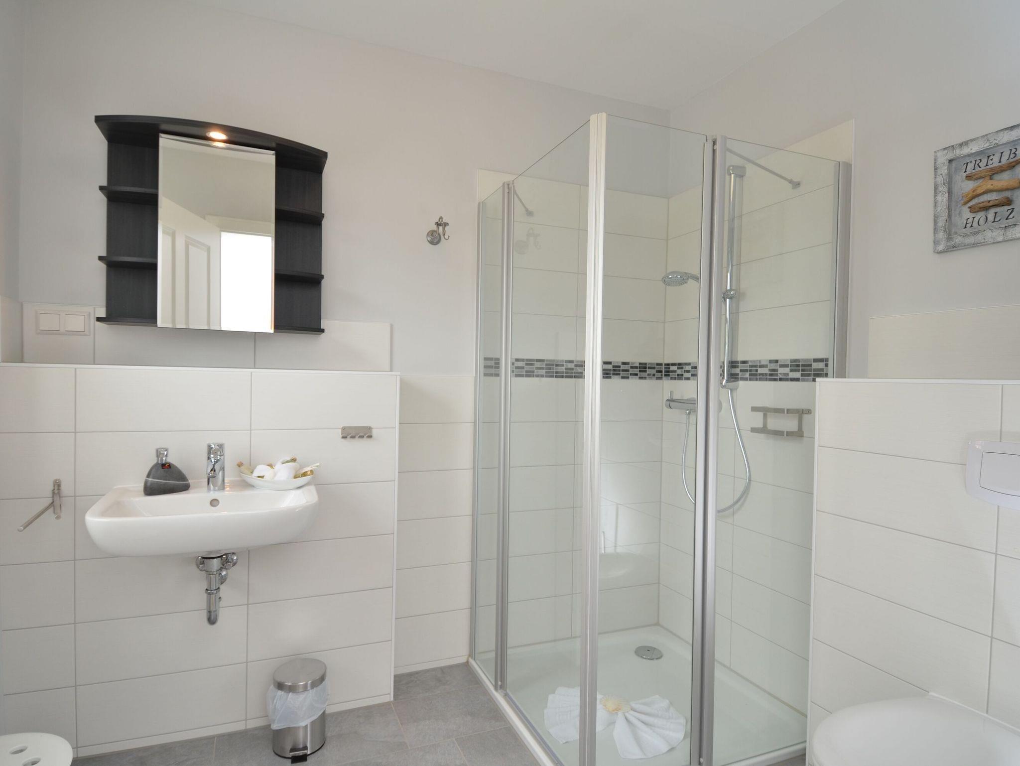 Eines der vier Schlafzimmer befindet sich im Erdgeschoss und ist mit einem Boxspringbett mit durchgehender Matratze (140cm x 200cm) ausgestattet. Das moderne Duschbad mit flacher Duschtasse und WC befindet sich ebenfalls im Erdgeschoss.
