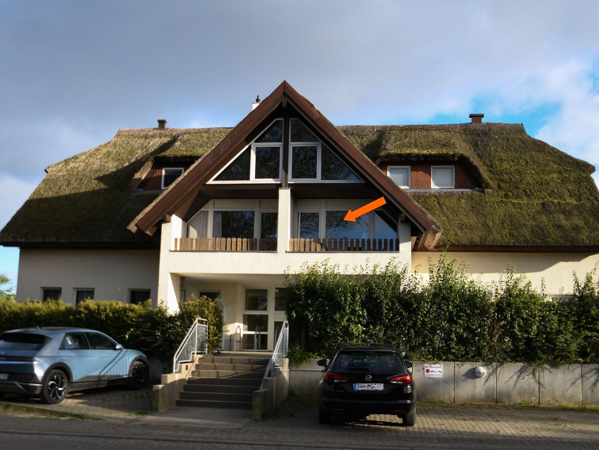 Die großzügige und komfortabel eingerichtete Ferienwohnung befindet sich in der ersten Etage im linken Haus der reetgedeckten Anlage „Strandhaus Mönchgut“ in Lobbe.