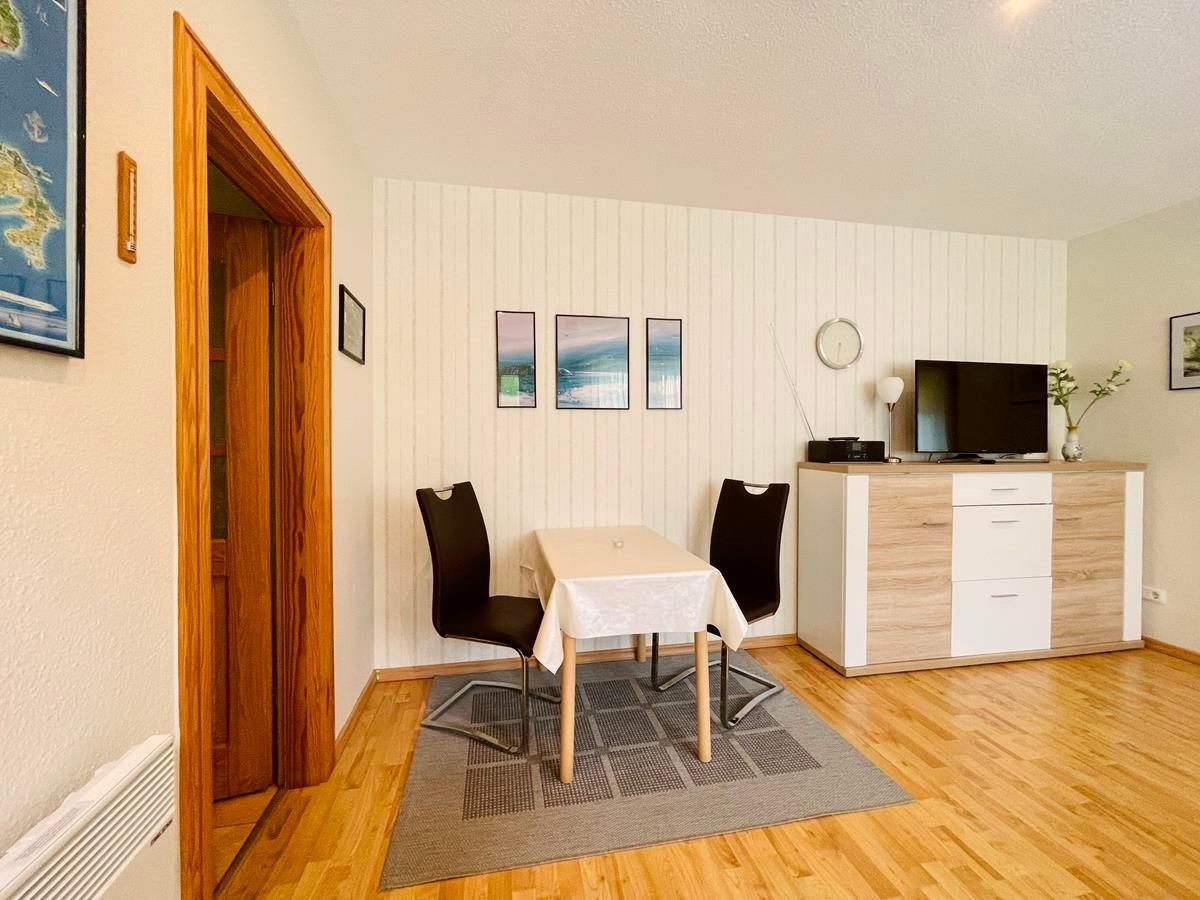 - Eine voll ausgestattete Küchenzeile mit Essbereich