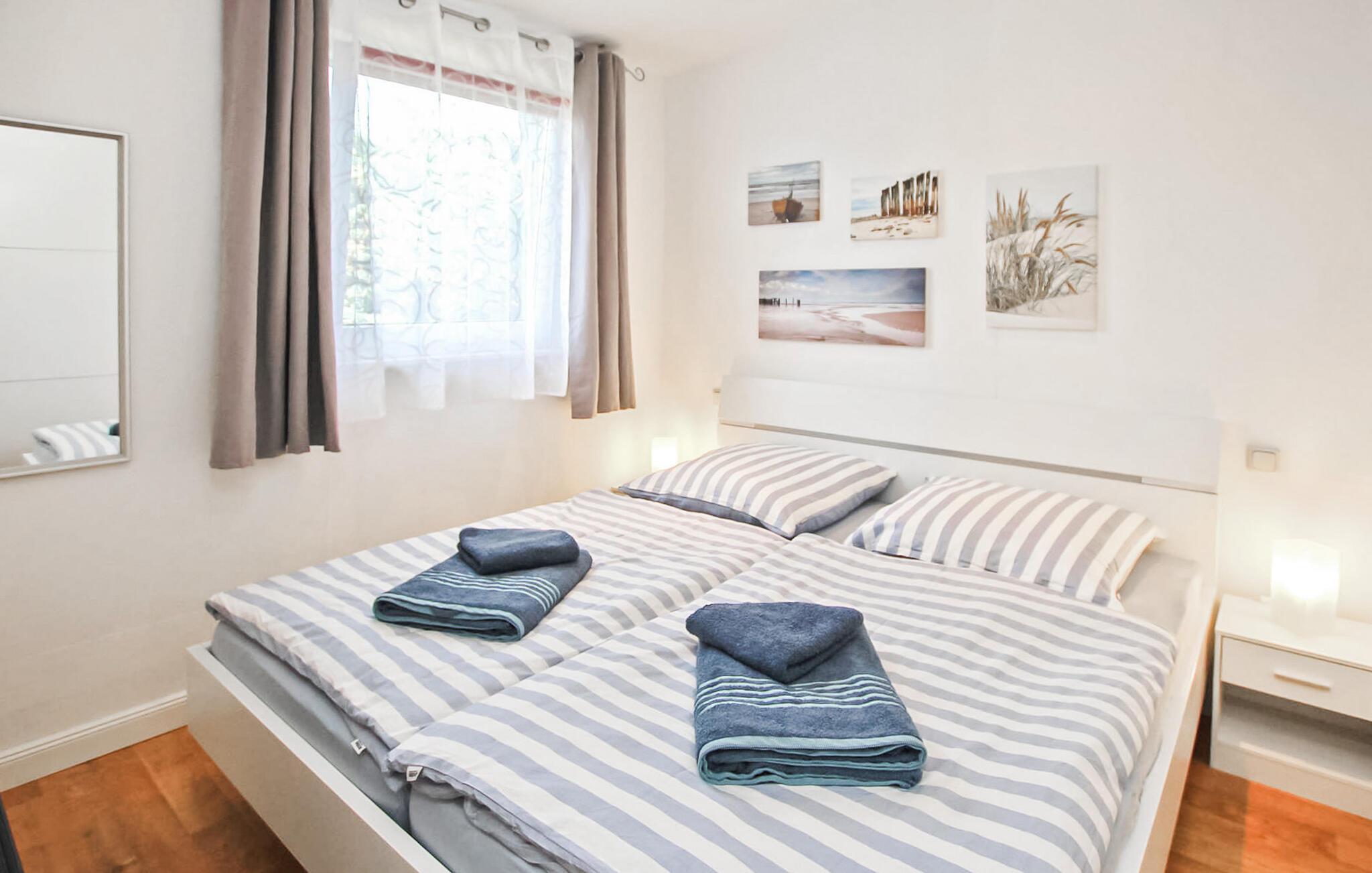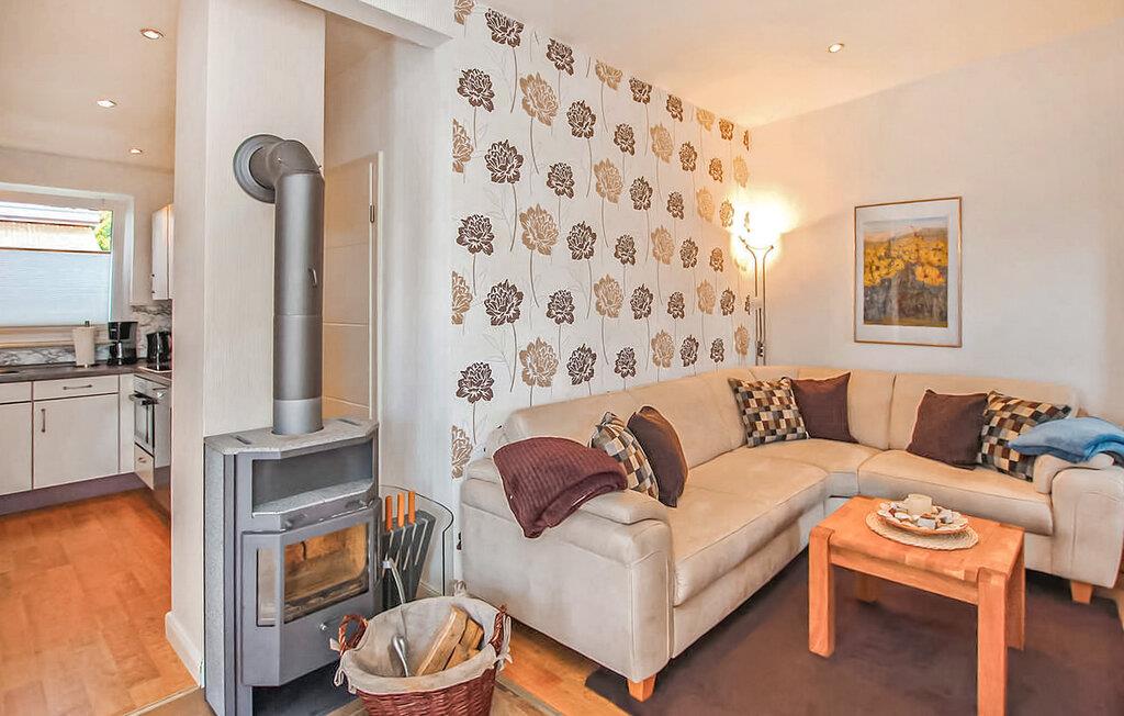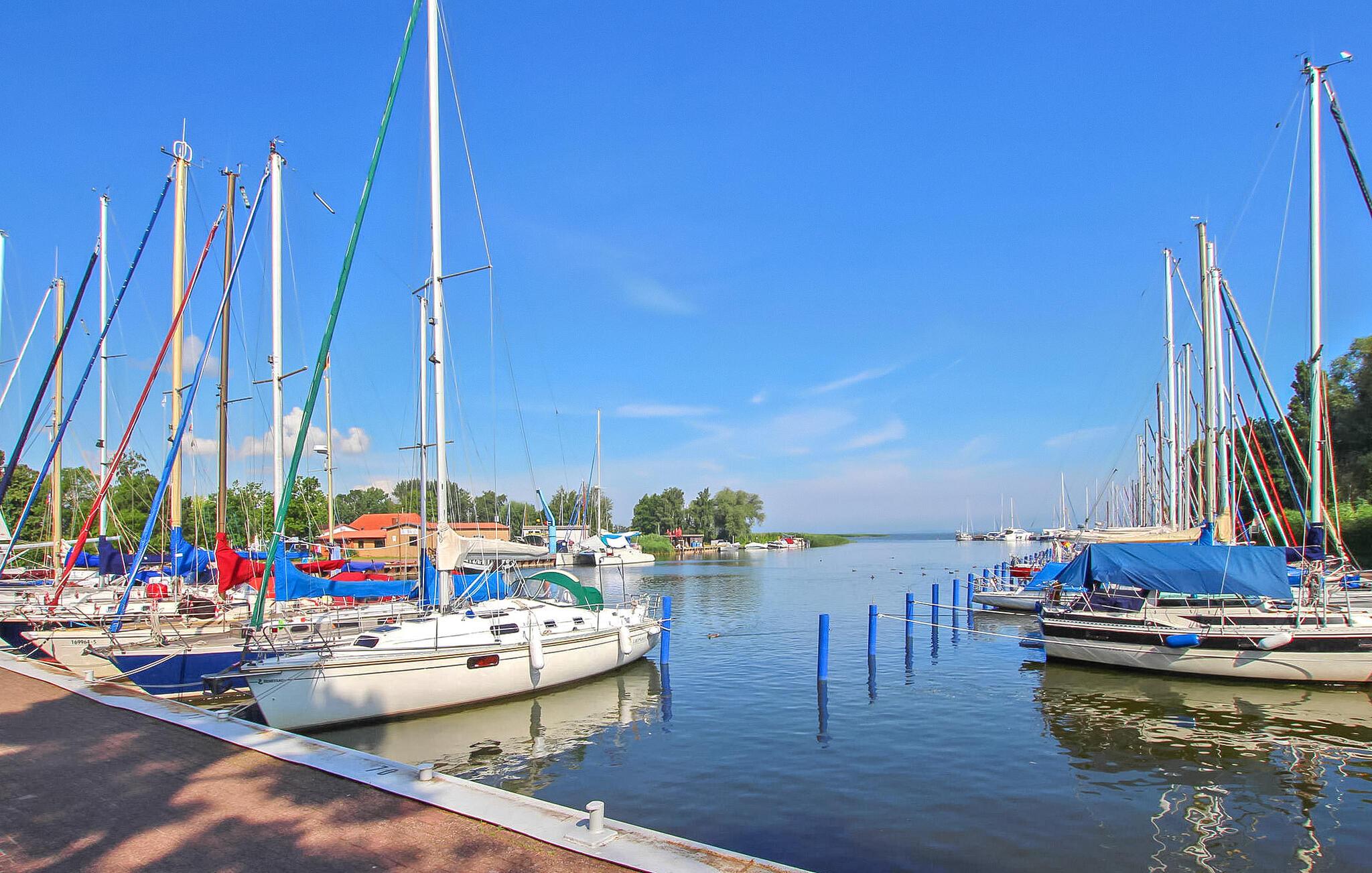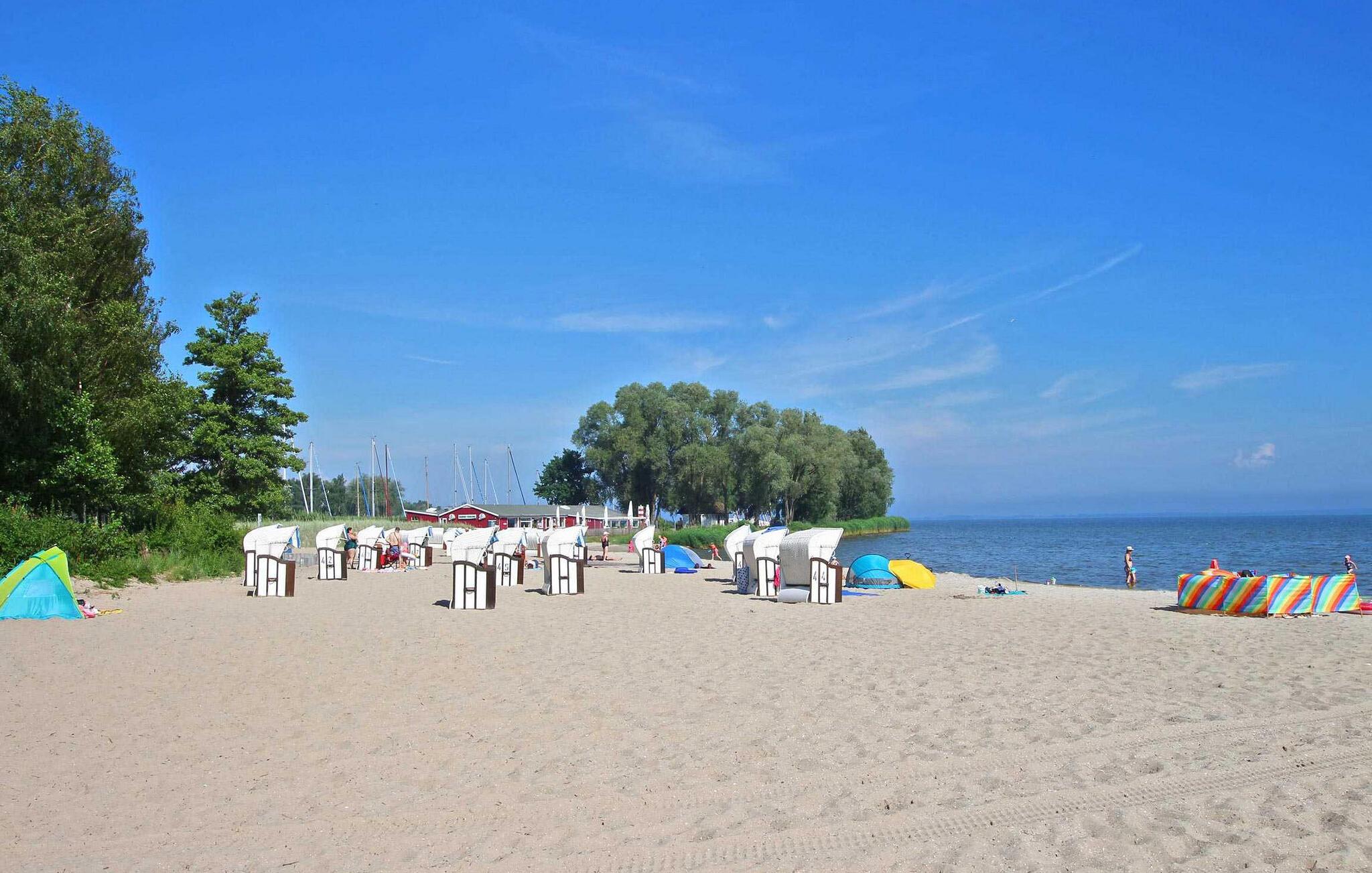 Kun cirka 200 m fra et badeområde og en lille havn ved Szczecin-lagunen ligger feriehuset for op til 3 personer, som blev totalrenoveret i 2018 og renoveret igen i 2021, i en feriebebyggelse på ca. kvadratmeter indhegnet fritidsejendom. Den fine sandstrand, lystbådehavnen og bymidten i Mönkebude med restauranter og indkøbsmuligheder kan nås på få minutter til fods via digestien. Det meget smagfuldt indrettede, cirka 43 kvm store ikke-ryger feriehus er udstyret med stue (sovesofa - mulighed for opredning, pejs, el-radiator, fladskærms-tv, musikanlæg, spiseplads, overdækket fryser), åben, fuldt udstyret udstyret køkken (elkomfur med ovn, køleskab, opvaskemaskine, mikroovn, diverse små køkkenmaskiner), soveværelse (dobbeltseng, el-radiator) og badeværelse (bruser, toilet, elektrisk håndklædevarmer, hårtørrer). Derudover er der en møbleret terrasse, liggestole, grill, et lille skur (mulighed for at parkere cykler), høj stol, barneseng inkl. madras, gratis WiFi og en parkeringsplads (centralt i komplekset, ca. 30 m væk). ).. Den samlede pris inkluderer slutrengøring, vand- og energiomkostninger, sengelinned, håndklæder og en første levering af brænde. Betales på stedet: turistskat, kæledyr (hvis relevant), ekstra brænde (trustfond). En mellemstor hund op til en højde på 40 cm er tilladt i denne ejendom. Alle andre dyr eller flere dyr kræver ejerens samtykke før reservation. Det er obligatorisk at holde i snor i feriekomplekset! Det rolige, statsanerkendte feriested Mönkebude ligger i den nordøstlige udkant af det cirka 125 km² store og skovklædte landskabsbeskyttelsesområde "Haff Coast" direkte ved Stettin-lagunen og kan lide at beskrive sig selv som lagunelandsbyernes perle. Ud over det fremragende udviklede netværk af cykel- og vandrestier med en række udflugtsmål i Ueckermünde Heide eller Anklamer-skoven, den smukke, let skrånende strand ved Stettiner-lagunen med en eventyrlegeplads, nudistområde og restauranter samt marina er populære attraktioner for gæster. I selve byen er der et minimarked, en iskiosk, restauranter og båd- og cykeludlejning Badebyen Ueckermünde med yderligere shoppingmuligheder, dens spændende gamle bydel, zoo og bådture til Polen eller øen Usedom er ca 7 km væk.