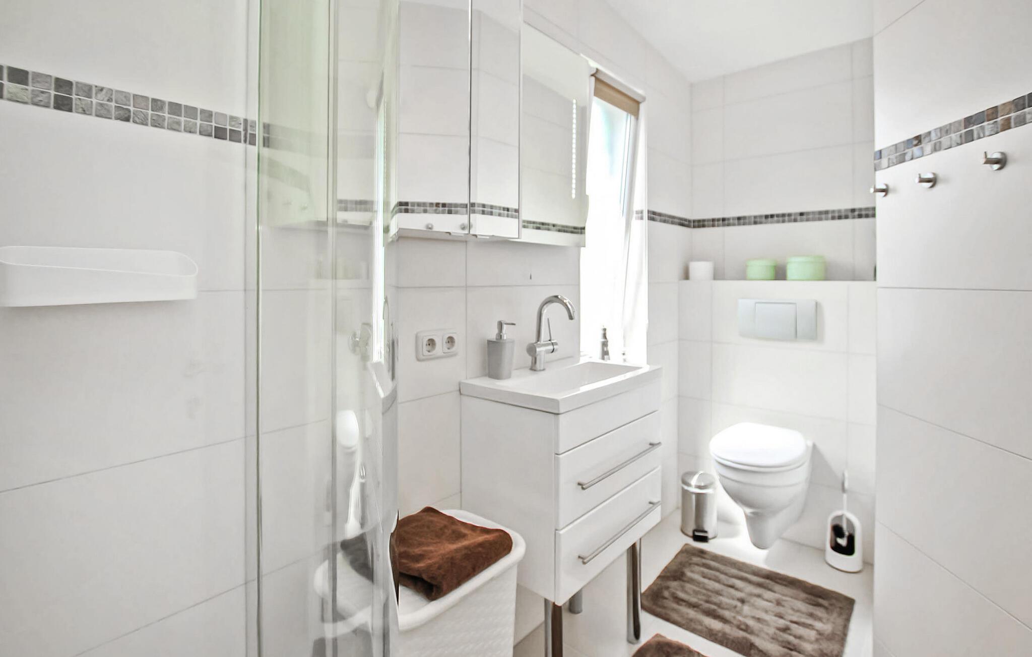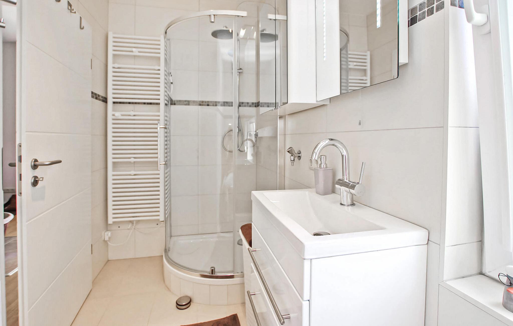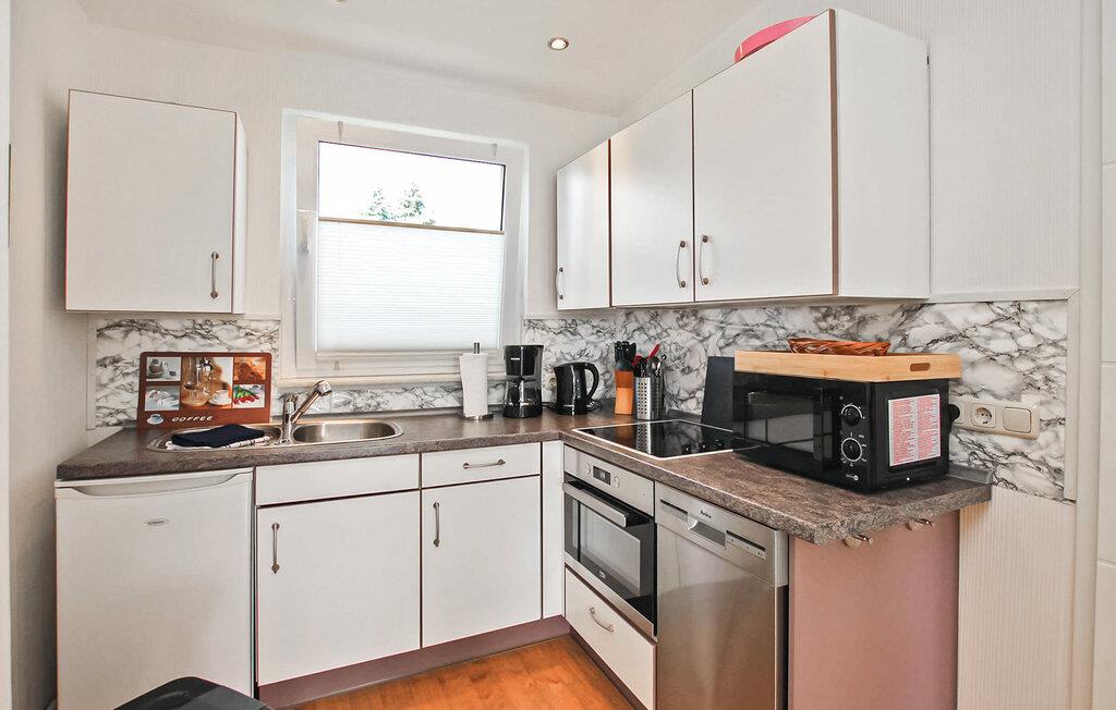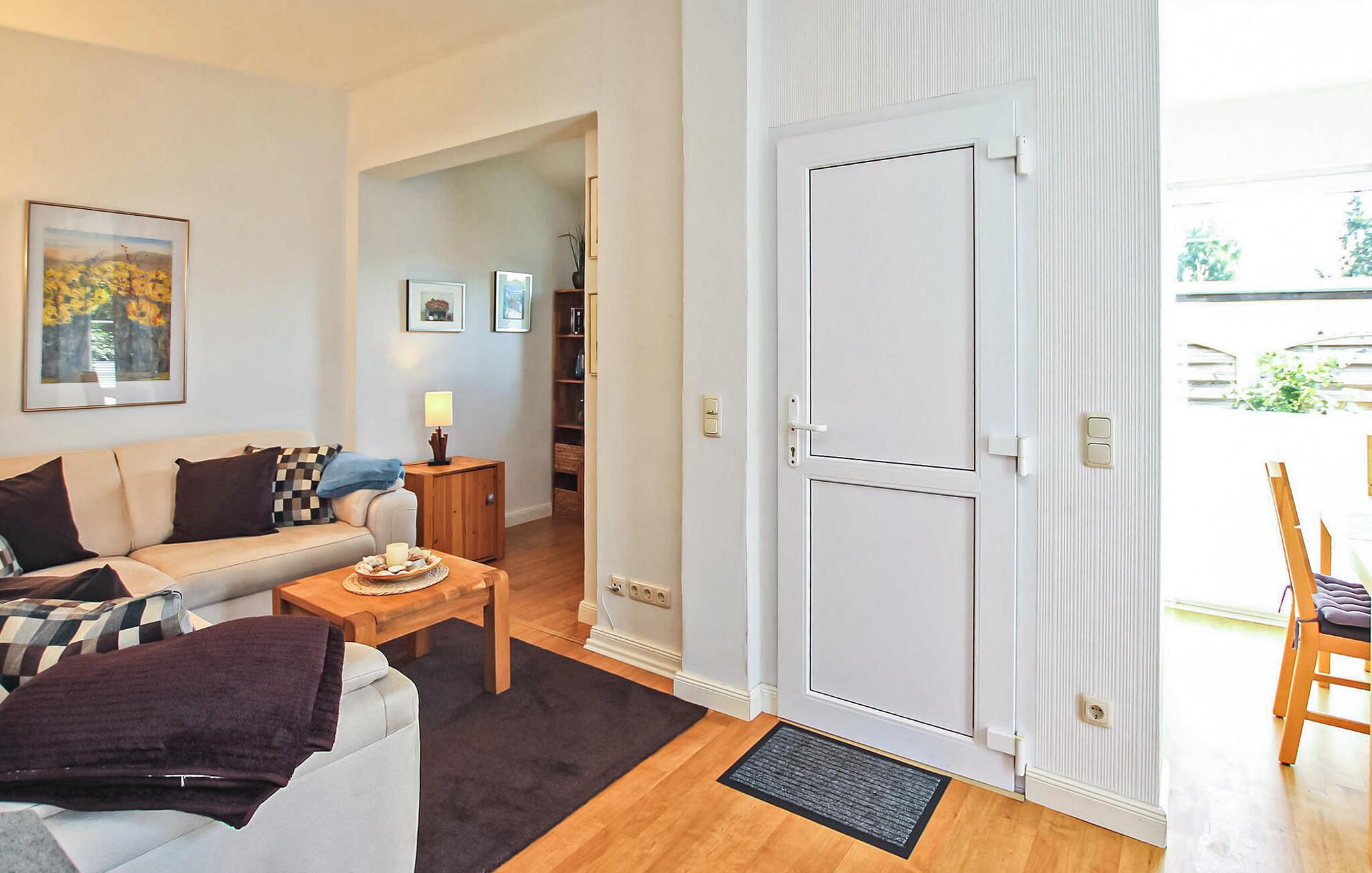 Kun cirka 200 m fra et badeområde og en lille havn ved Szczecin-lagunen ligger feriehuset for op til 3 personer, som blev totalrenoveret i 2018 og renoveret igen i 2021, i en feriebebyggelse på ca. kvadratmeter indhegnet fritidsejendom. Den fine sandstrand, lystbådehavnen og bymidten i Mönkebude med restauranter og indkøbsmuligheder kan nås på få minutter til fods via digestien. Det meget smagfuldt indrettede, cirka 43 kvm store ikke-ryger feriehus er udstyret med stue (sovesofa - mulighed for opredning, pejs, el-radiator, fladskærms-tv, musikanlæg, spiseplads, overdækket fryser), åben, fuldt udstyret udstyret køkken (elkomfur med ovn, køleskab, opvaskemaskine, mikroovn, diverse små køkkenmaskiner), soveværelse (dobbeltseng, el-radiator) og badeværelse (bruser, toilet, elektrisk håndklædevarmer, hårtørrer). Derudover er der en møbleret terrasse, liggestole, grill, et lille skur (mulighed for at parkere cykler), høj stol, barneseng inkl. madras, gratis WiFi og en parkeringsplads (centralt i komplekset, ca. 30 m væk). ).. Den samlede pris inkluderer slutrengøring, vand- og energiomkostninger, sengelinned, håndklæder og en første levering af brænde. Betales på stedet: turistskat, kæledyr (hvis relevant), ekstra brænde (trustfond). En mellemstor hund op til en højde på 40 cm er tilladt i denne ejendom. Alle andre dyr eller flere dyr kræver ejerens samtykke før reservation. Det er obligatorisk at holde i snor i feriekomplekset! Det rolige, statsanerkendte feriested Mönkebude ligger i den nordøstlige udkant af det cirka 125 km² store og skovklædte landskabsbeskyttelsesområde "Haff Coast" direkte ved Stettin-lagunen og kan lide at beskrive sig selv som lagunelandsbyernes perle. Ud over det fremragende udviklede netværk af cykel- og vandrestier med en række udflugtsmål i Ueckermünde Heide eller Anklamer-skoven, den smukke, let skrånende strand ved Stettiner-lagunen med en eventyrlegeplads, nudistområde og restauranter samt marina er populære attraktioner for gæster. I selve byen er der et minimarked, en iskiosk, restauranter og båd- og cykeludlejning Badebyen Ueckermünde med yderligere shoppingmuligheder, dens spændende gamle bydel, zoo og bådture til Polen eller øen Usedom er ca 7 km væk.