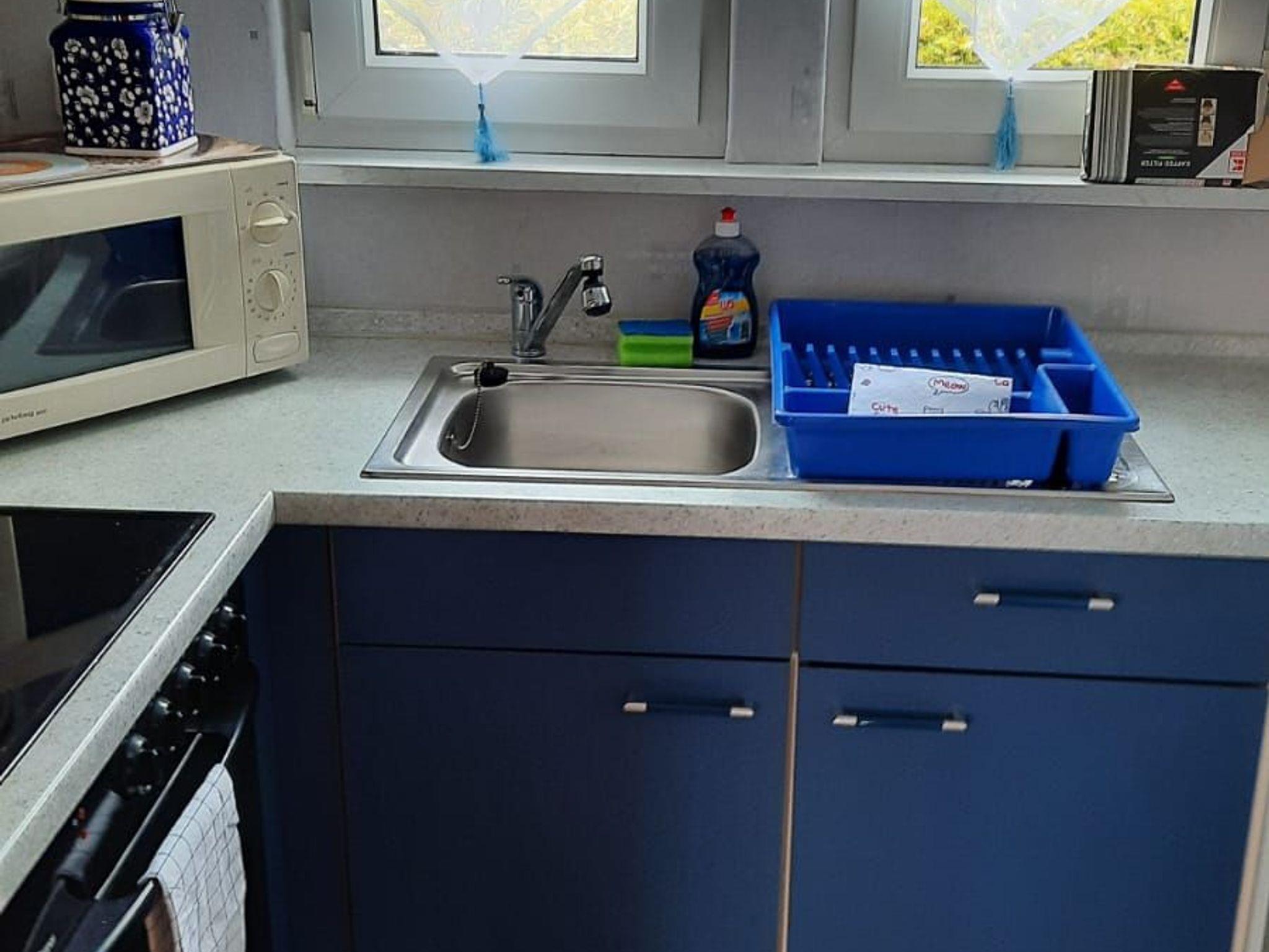 1 Wohnraum, 2 Schlafräume, DU/WC, Einbauküche mit E-Herd und Mikrowelle, Terrasse