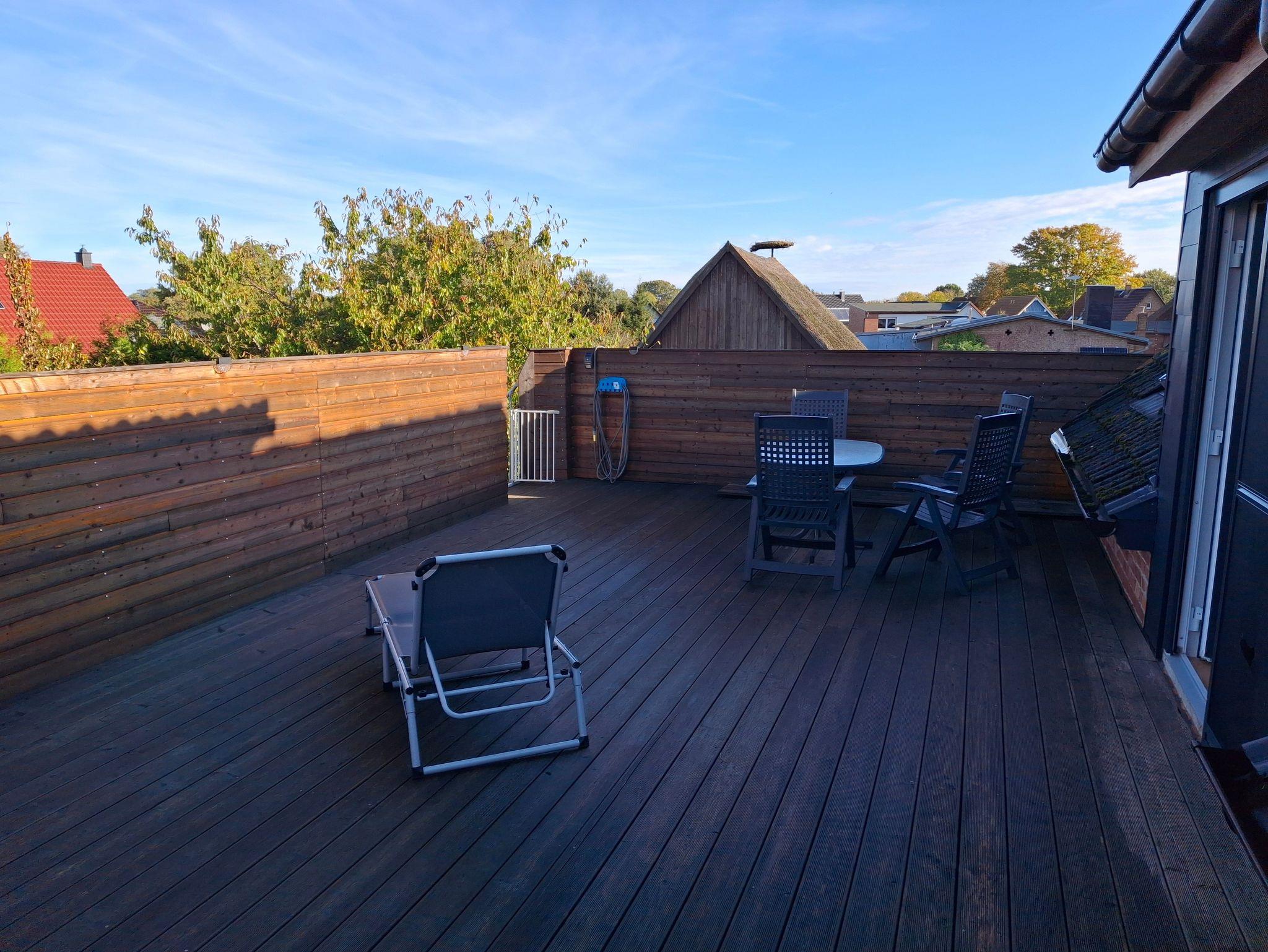 Die Wendetreppe führt zur große Dachterrasse ca. 40qm, mit Hängestuhl, Whirlpool der auf Anfrage auch genutzt werden kann (kostenpflichtig ) sowie Lounge Möbel zum Sitzen. Wir wünschen Ihnen einen angenehmen Aufenthalt.