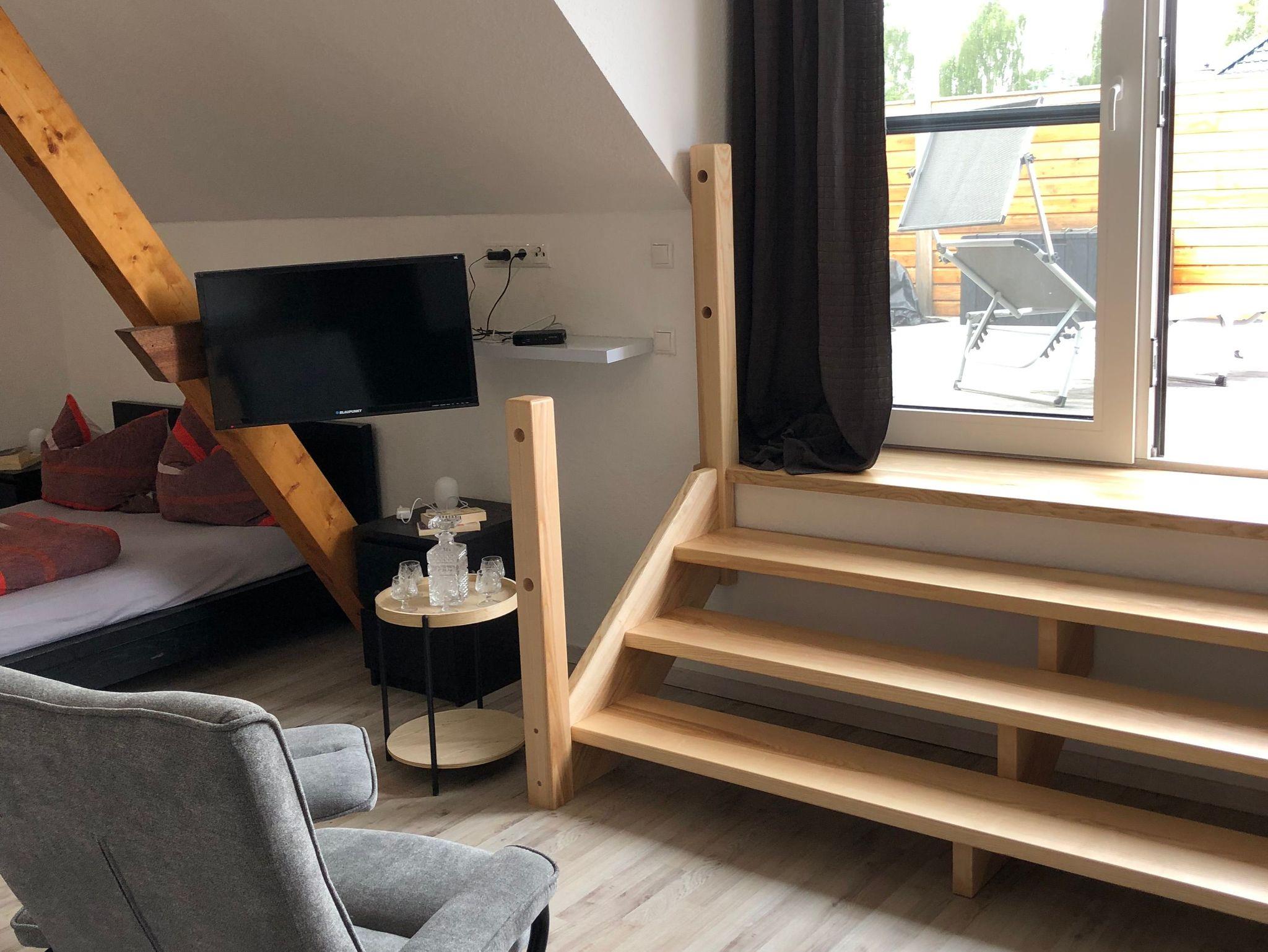 Dieses wunderschöne „ Apartment am Stettiner Haff „ befindet sich in der obersten Etage und ist nur über eine Wendetreppe zu erreichen für 2 bis max. 3 Personen. Genießen Sie einen erholsamen Urlaub in einem modern, rustikal eingerichteten Ferienhausapartment, die einen komfortablen Urlaub für 2Personen bedient (alle Punkte einer 3 Sterne Ferienwohnung werden erfüllt).