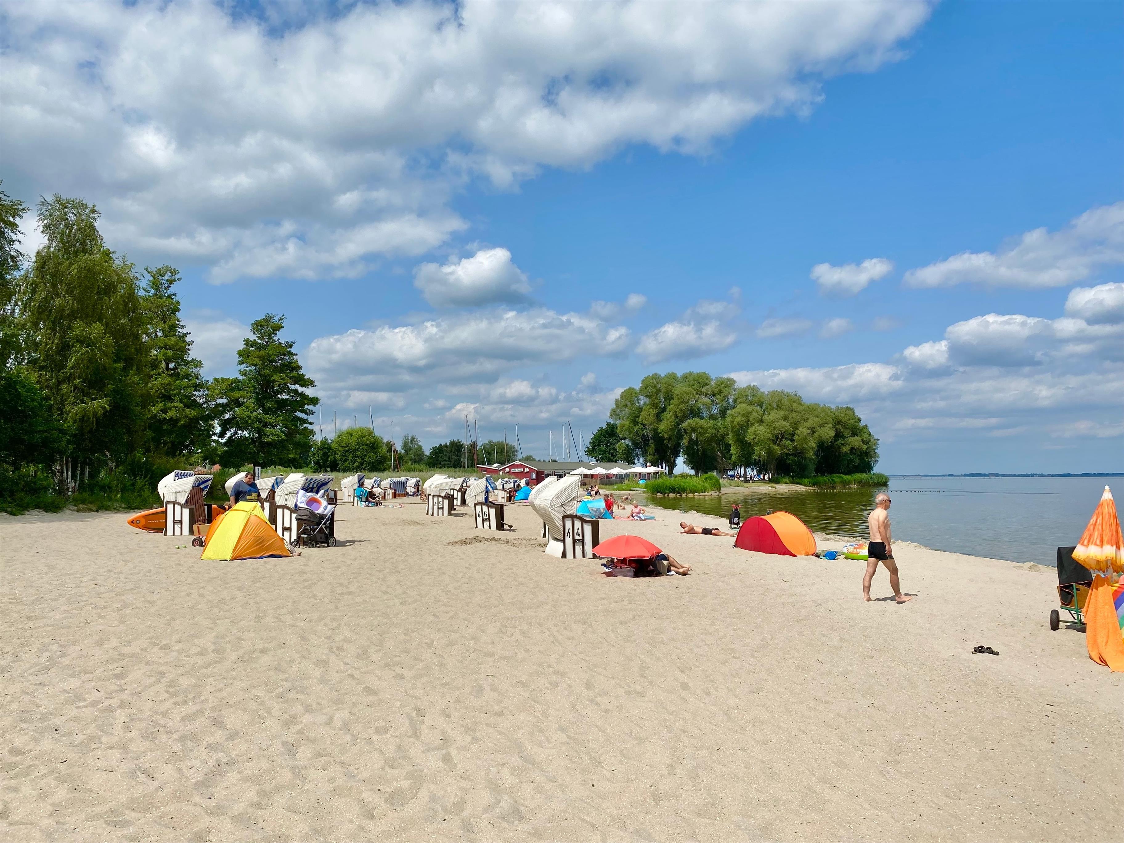 Der Strand hat eine Breite von knapp 500 Metern. Hier finden Sie Ihren Lieblingsplatz. Es gibt einen kleinen geschützten FKK-Bereich, Strandkörbe und Gastronomie. Auch für Ihre Strandmuschels und Ihren Sonnenschirm ist hier stets genügend Platz. Der flache Strand ist ein Paradies für Kinder. Nach dem Badespaß können Sie den herrlichen Abenteuerspielplatz erobern. Diese Erlebniswelt ganz aus Holz ist ein Highlight für kleine Entdecker.