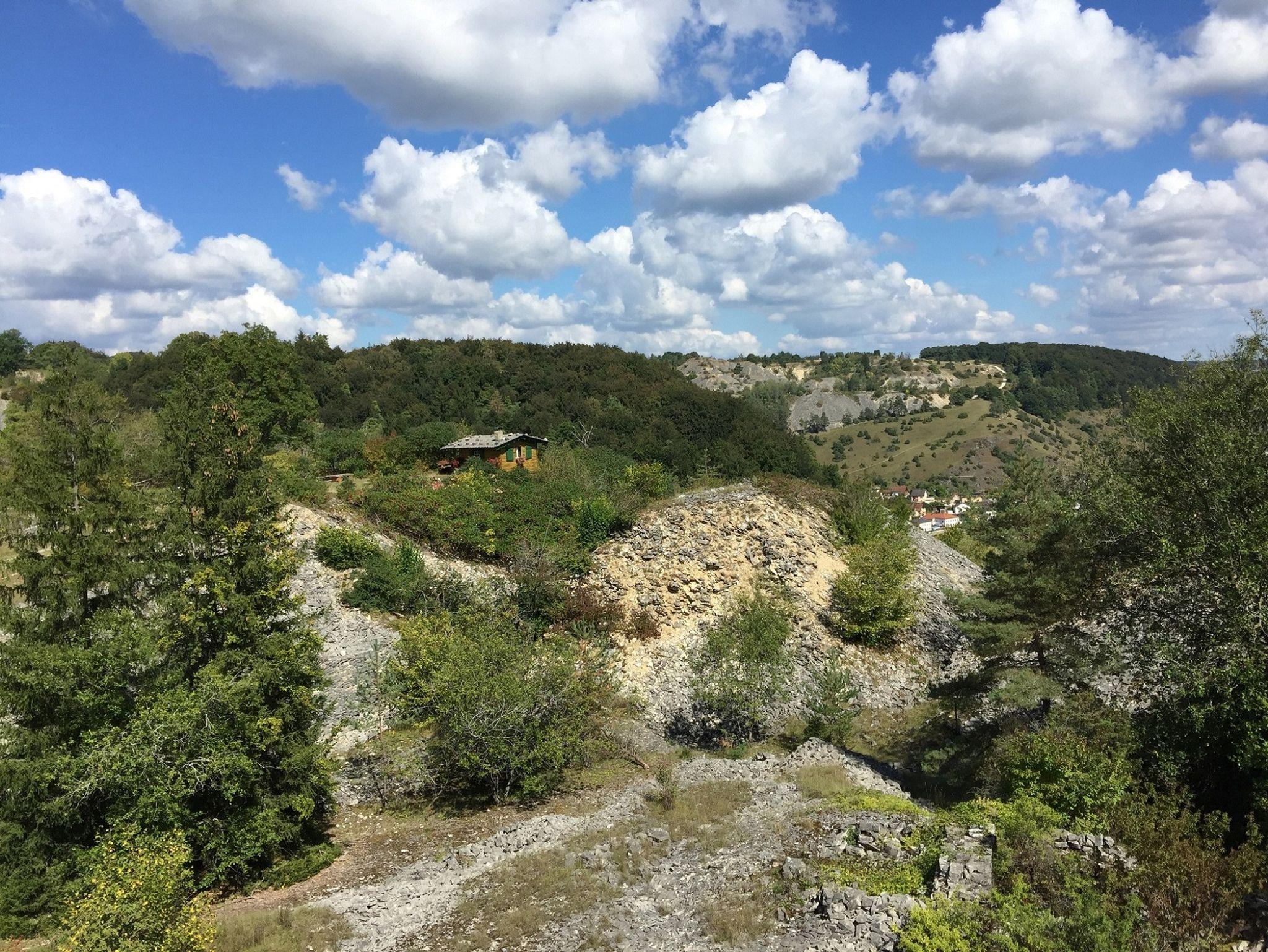Auf einem Berg, mitten im Naturpark Altmühltal, abgelegen und idyllisch, umgeben von stillgelegten Jurasteinbrüchen befindet sich die Ferienwohnung mit Hallenbad und Sauna (gegen Gebühr) zur Alleinnutzung, Wintergarten, offenem Kamin, Terrasse, Grill, Flachbildschirm, DVD-Player, Waschmaschine, Safe, Internet und Küche mit Vollausstattung. Der fossilienreiche Besuchersteinbruch liegt direkt am Ort.