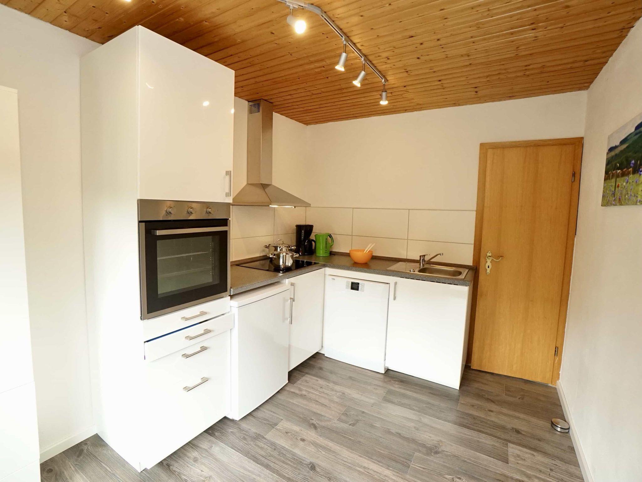 Die 50 qm große Ferienwohnung für zwei Personen verfügt über ein Schlafzimmer mit zwei Einzelbetten 90 x 200 cm. Die Unterkunft bietet einen freundlich eingerichteten Wohnraum mit gemütlicher Couch, Esstisch und TV-Gerät. Im Eingangsbereich befindet sich die voll ausgestattete Küche mit Kühlschrank, Induktionsherd und Backofen. Außerdem gibt es ein Badezimmer mit Dusche und WC. Im Außenbereich Terrasse mit Sonnen-Markise und Gartenmöbeln.