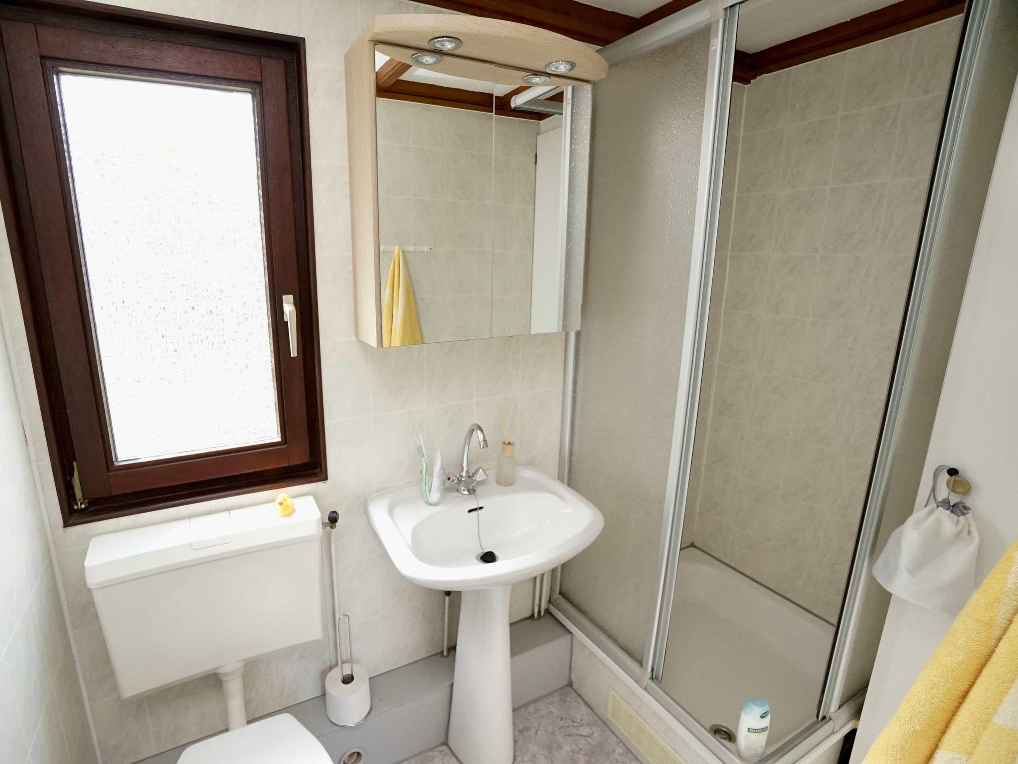 Das 23 qm große Chalet für zwei Personen verfügt über ein Schlafzimmer (Doppelbett 160 x 200 cm). Die Unterkunft bietet einen freundlich eingerichteten Wohnraum mit gemütlicher Couch, Esstisch und TV- Gerät. Im Flur befindet sich die voll ausgestattete Küche. Außerdem gibt es ein Badezimmer mit Dusche und WC. Im Außenbereich ist eine Terrasse mit Gartenmöbeln.