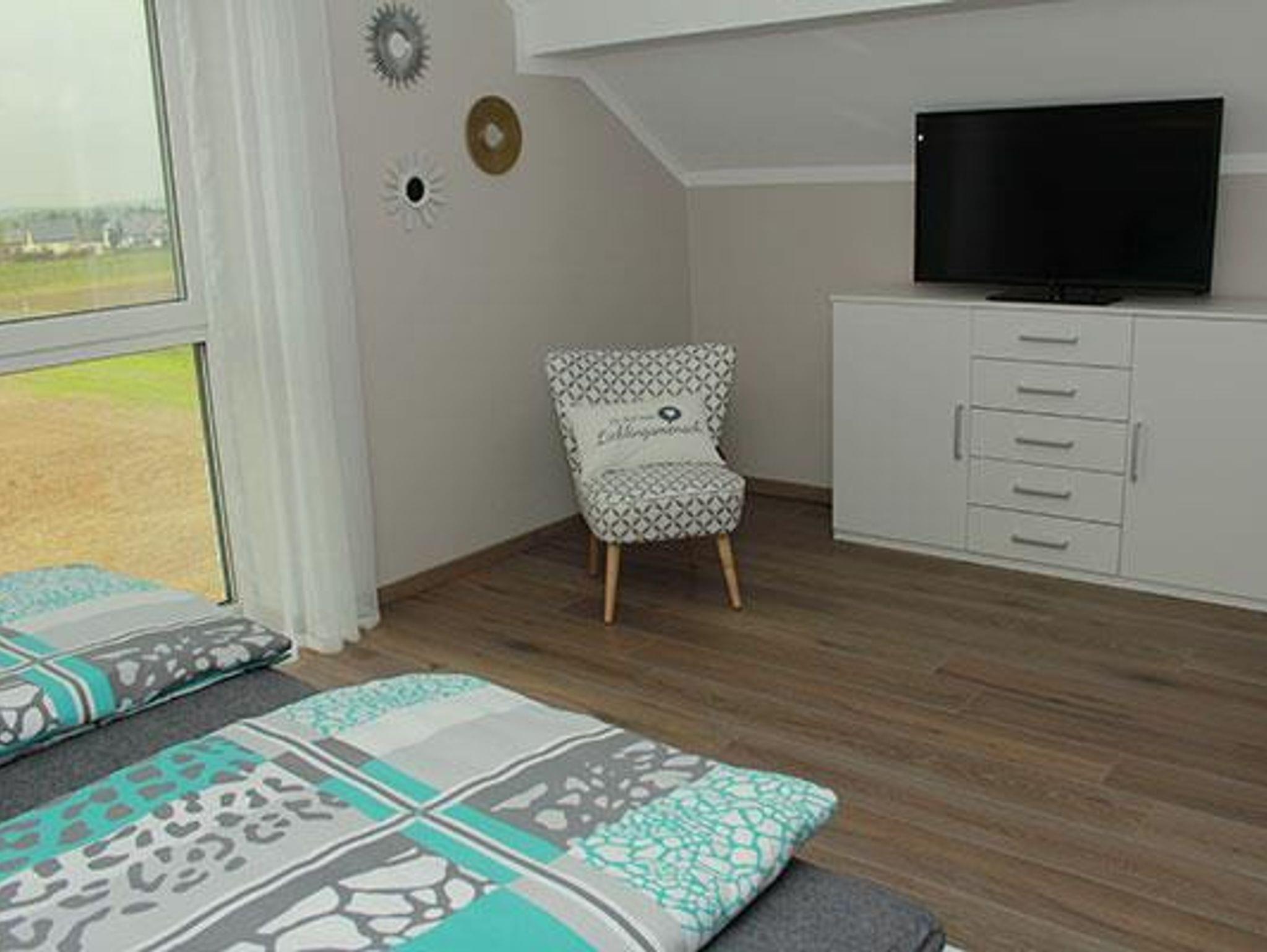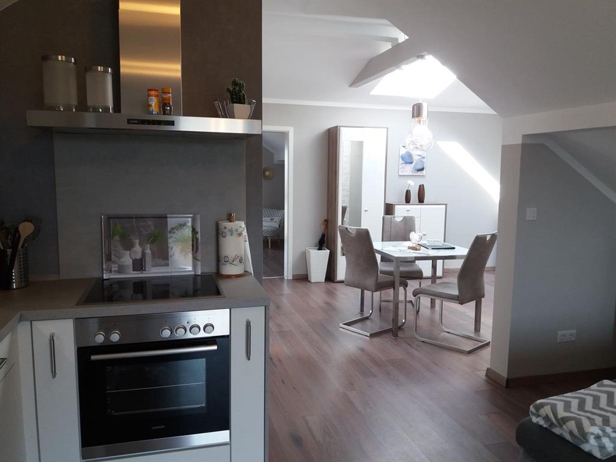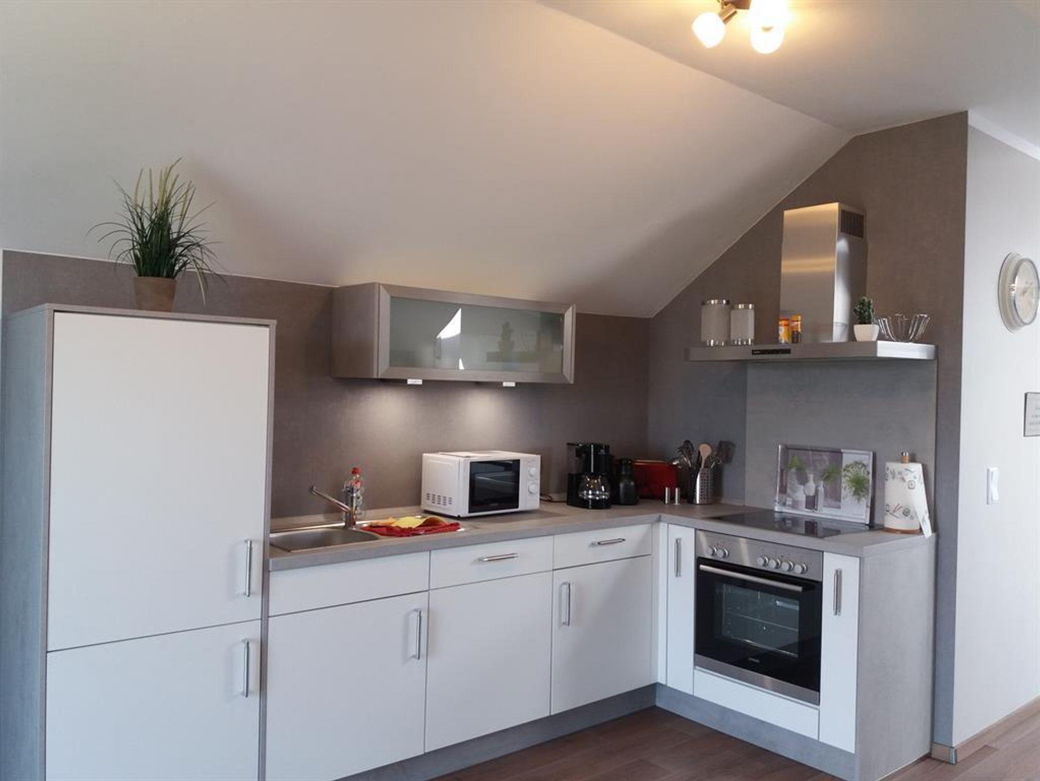 Ferienwohnung Schwalbennest 2. Etage für 2 Personen verfügt über: - 1 Doppelschlafzimmer mit SAT-TV - Badezimmer mit barrierefreier Dusche und Föhn - Waschmaschiene ist vorhanden - Moderne Einbauküche mit Backofen, Ceranfeld, Geschierrspüler, Kühlschrank mit Gefrierfach, Wasser- und Eierkocher, Toaster und Kaffeemaschiene. - Der sehr großzügige Wohn-, Essbereich ist mit einem großen Sat-TV (Internetfähig), mit einem DVD/Bluray Gerät sowie CD/Radio Musikanlage ausgestattet. - In allen Räumen ist W-LAN zu empfangen - Ein Babybett, Hochstuhl sowie ein Safe sind vorhanden - Handtücher und Bettwäsche sind inclusive